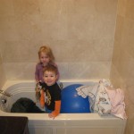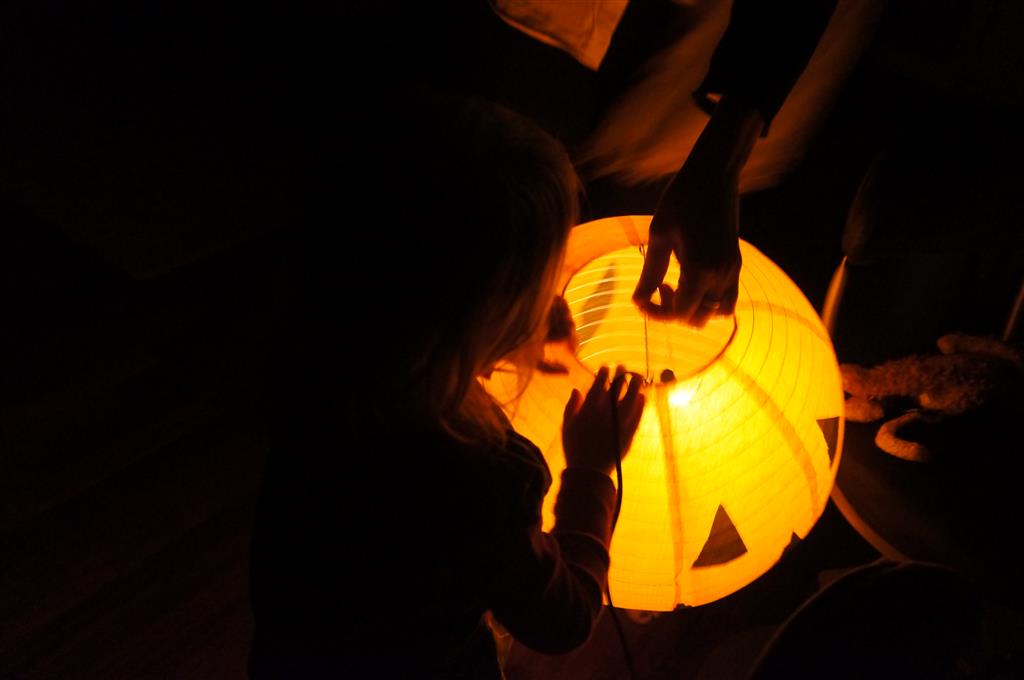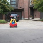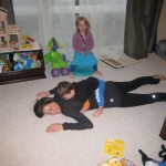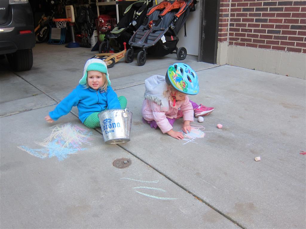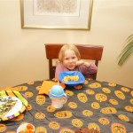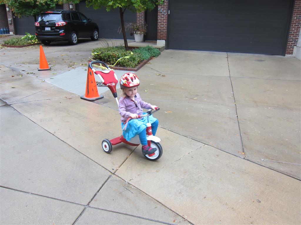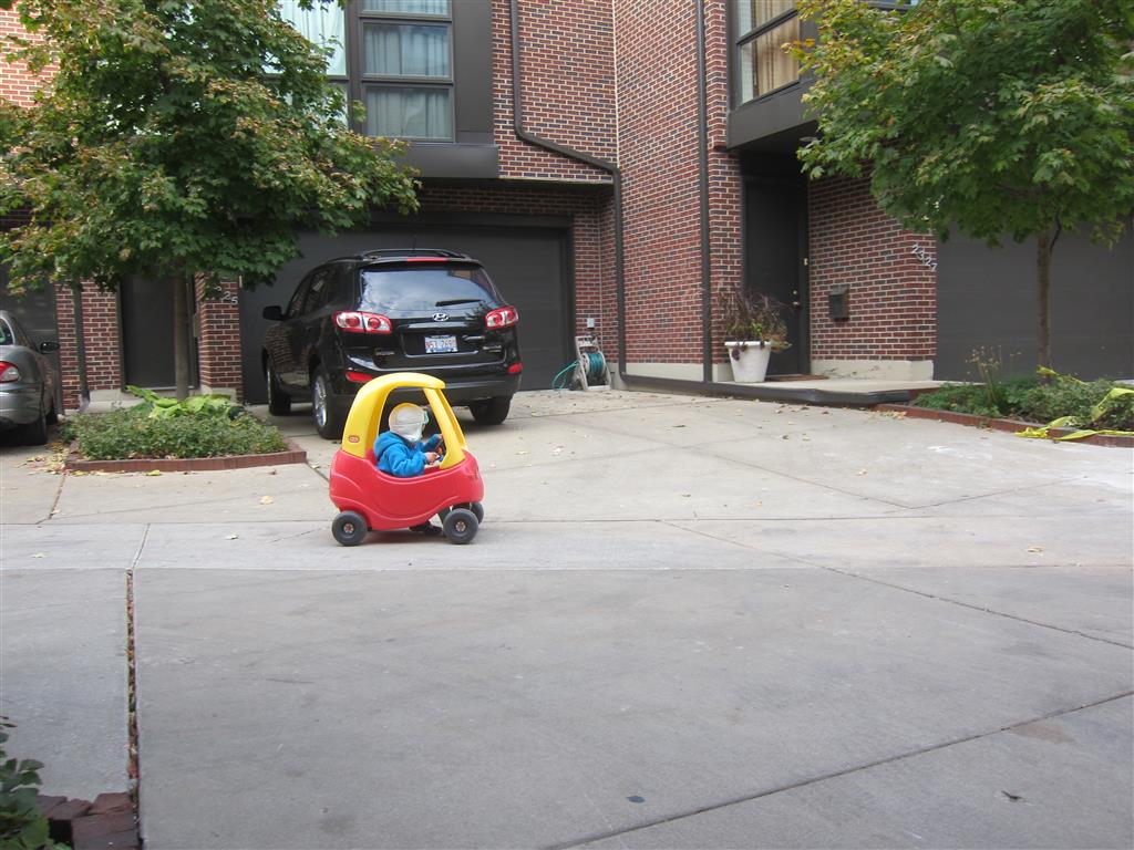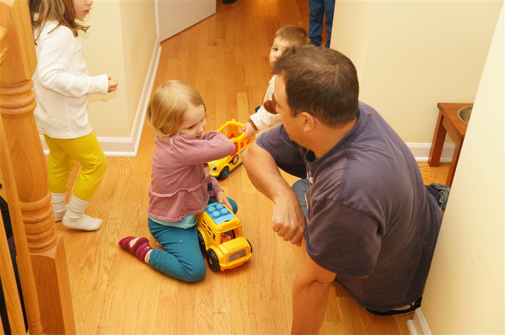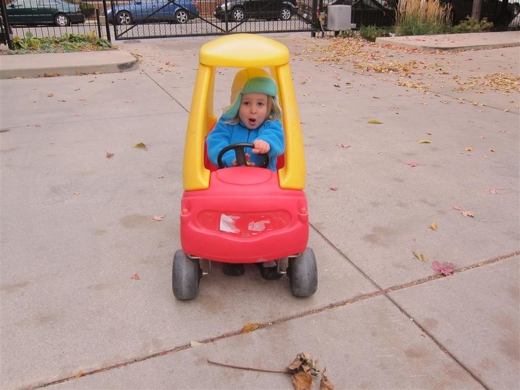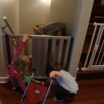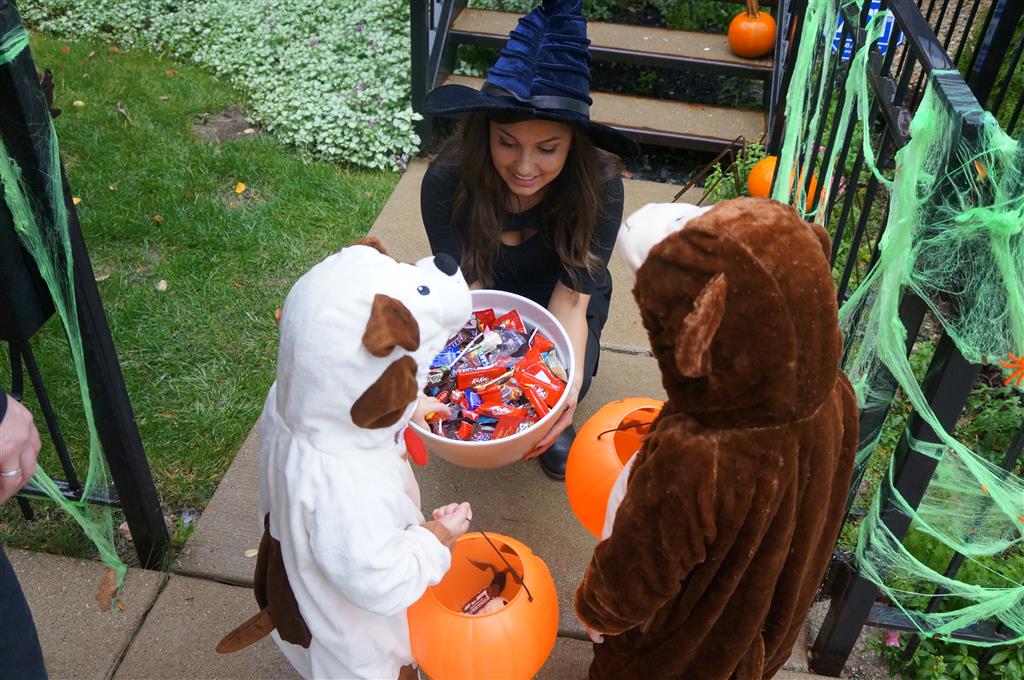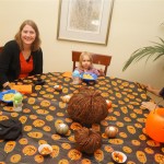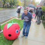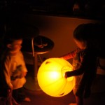 Eleanor and Henry had a great Halloween this week! They both dressed up to match their favorite stuffed friends – Eleanor a monkey and Henry a dog. Henry wasn’t sold on the whole costume at first, but the event grew on him. By the time we were actually trick or treating, he was having a blast walking in the rain and stomping in puddles. Going up to actual houses for candy was a side activity at best, and was eventually completely abandoned in favor of more puddle stomping. Eleanor had fun going up to houses for a little while, but the half flight of stairs up to each door eventually wore on her, and she lost interest as well. She did love Uncle B’s costume – and drew quite a crowd as she dragged it through the street. Who knew monkeys liked apples? Henry had quite the love hate relationship with the apple, he couldn’t stop looking at it while Uncle B was inside, but for every step that Uncle B took, Henry took one to maintain his distance, and much preferred to have Dad between the two.