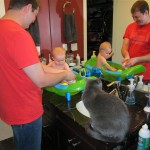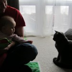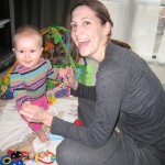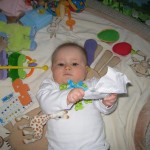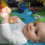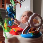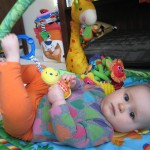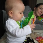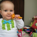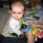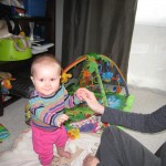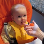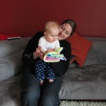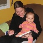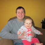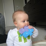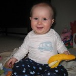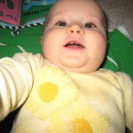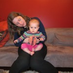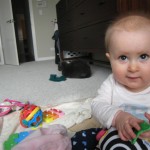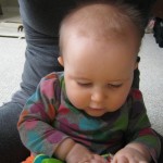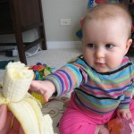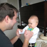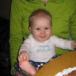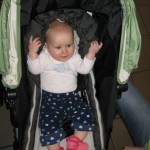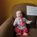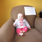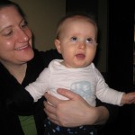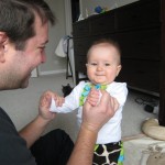 Eleanor turned seven months old this week, and celebrated with lots of smiles. Her two top teeth are really starting to show, and Amy has dubbed them her “hippo” teeth. With these new teeth, its really just a matter of time until the “Hi” pacifier becomes the ” ” pacifier. Eleanor got lots of Aunt Lary time with Dad out of town, and went on her first trip for a RFTB at Starbucks. She also had solid food for the first time, eating a banana and some cereal puffs.