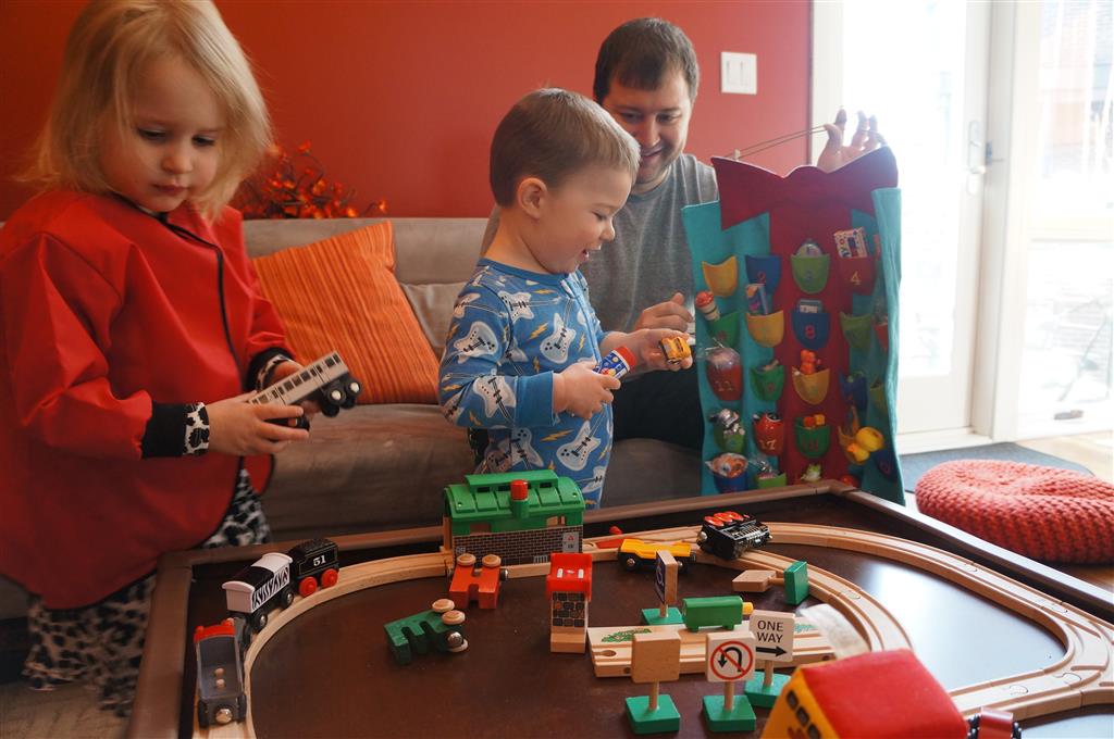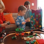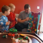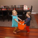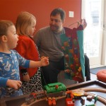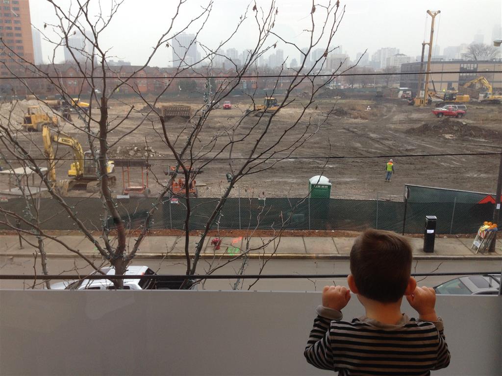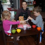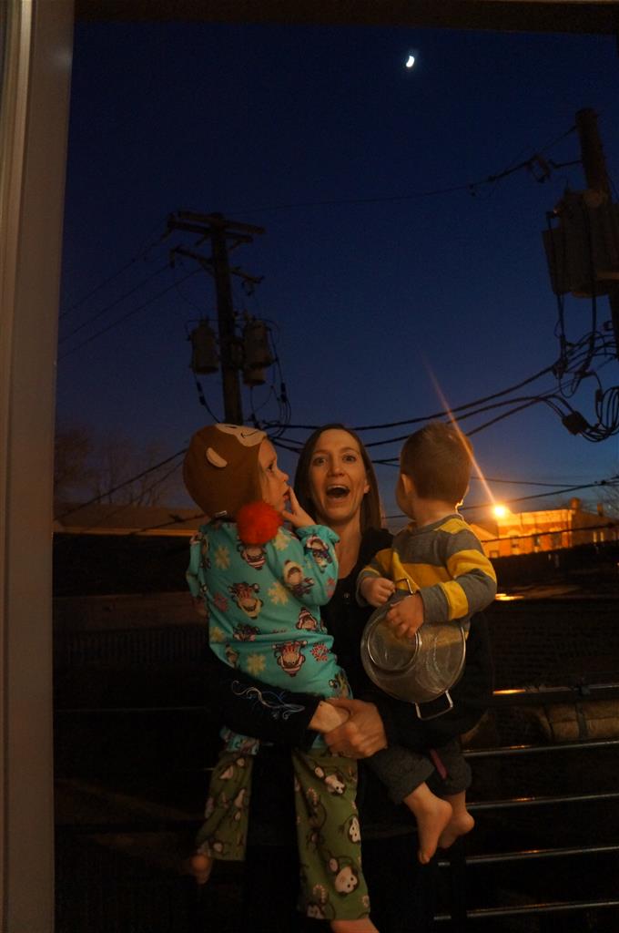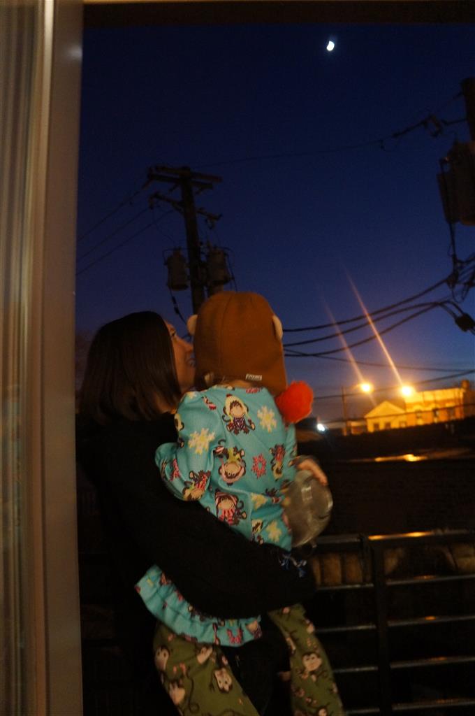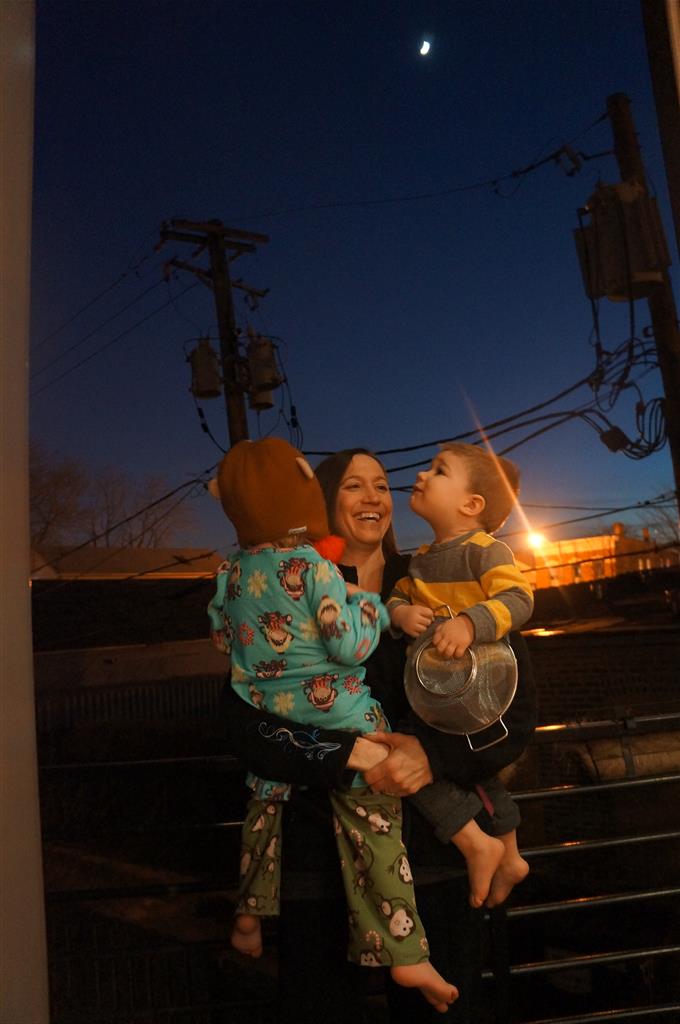Brrrrrrr – things sure got chilly fast up here in the Windy City! Poor Henry caught a bit of a bug early in the week – Tuesday morning he even snuggled with Dad in bed for a little while. He rebounded for a fun trip to the train exhibit at the botanical gardens, which both he and Eleanor enjoyed. We have had some great moon rises the past few days, and both kids love to point out the moon when they see it. They get so excited that they start howling like a couple of wolves :)