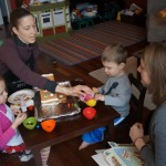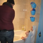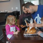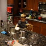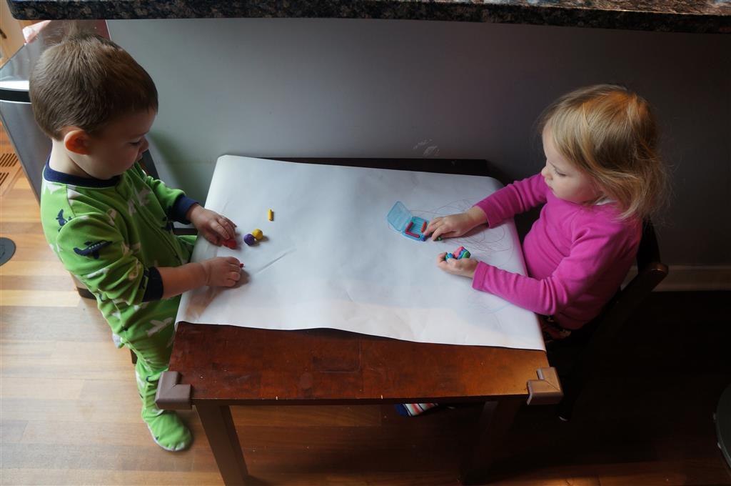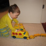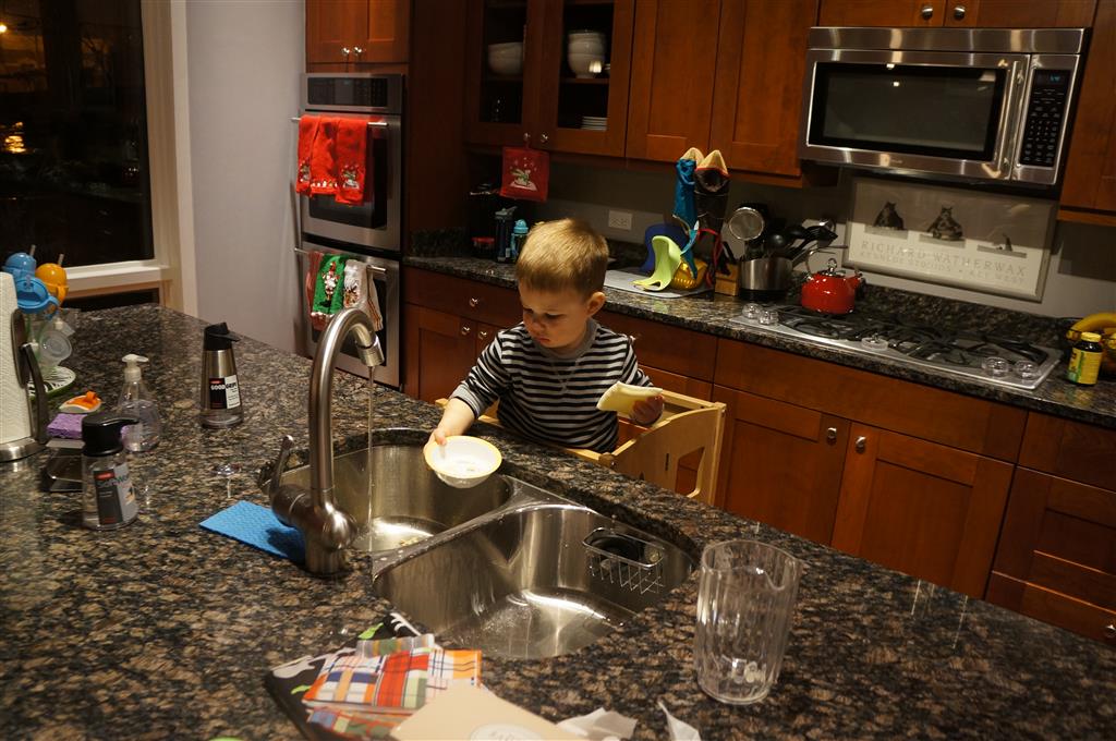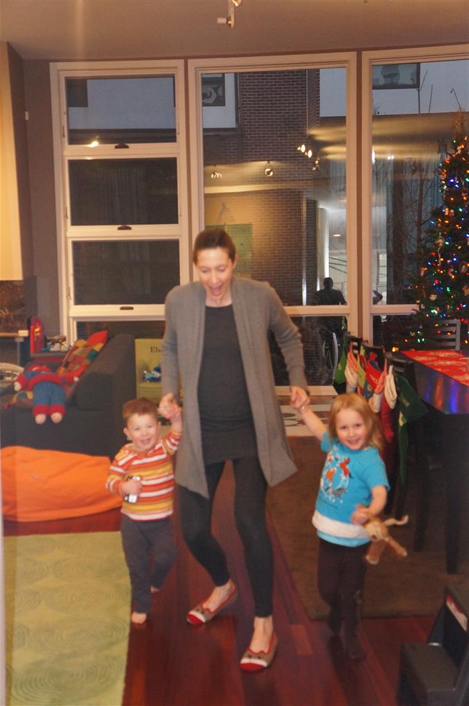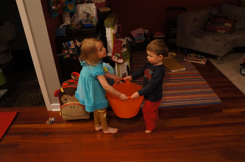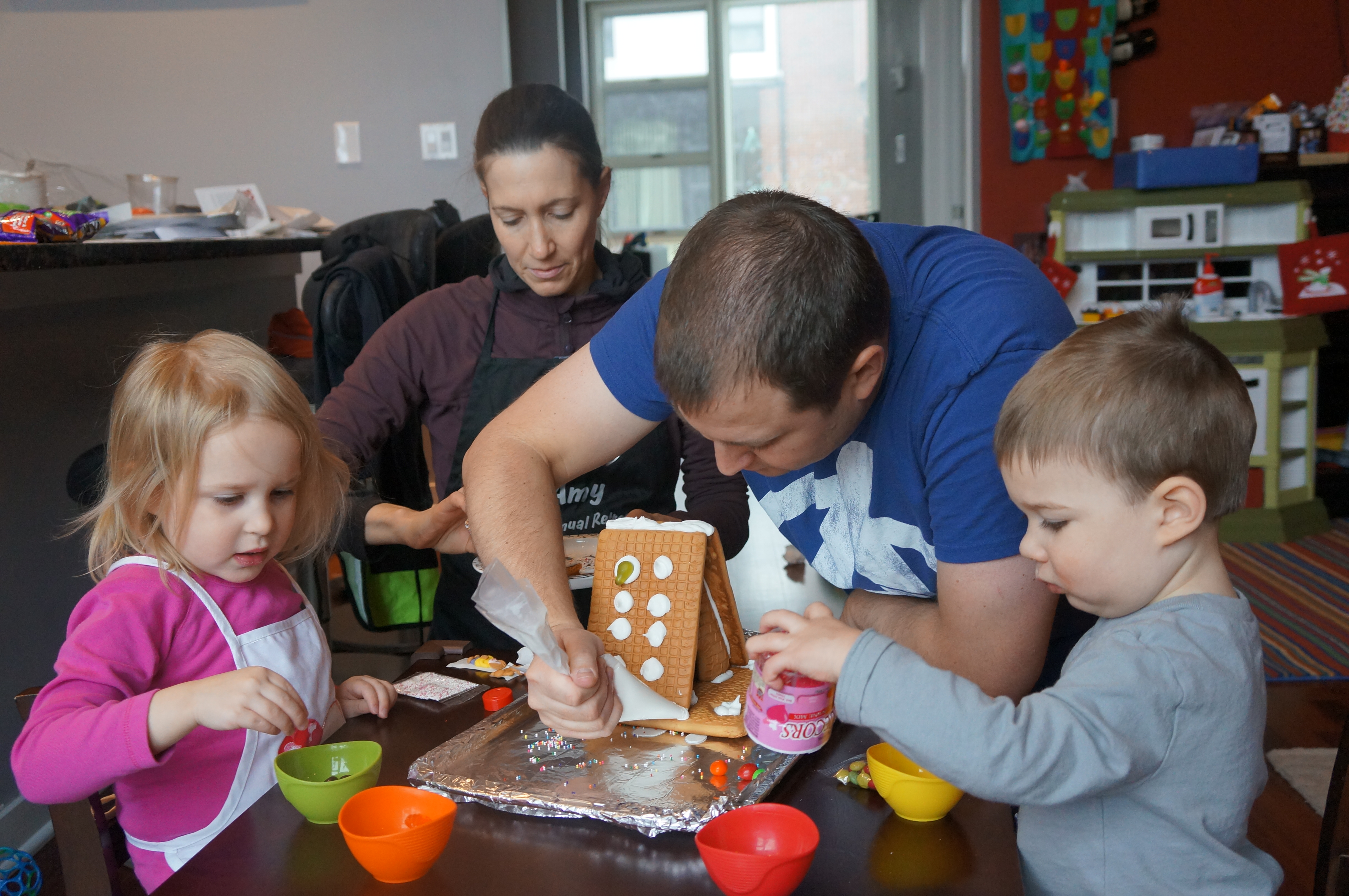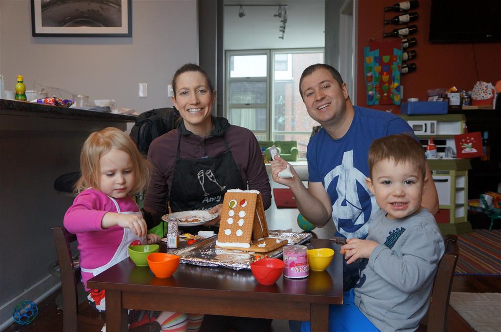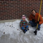 On Sunday Lala brought over a gingerbread house for us to build – and we were much more successful than last year! Mom got out some sprinkles left over from valentines day and Eleanor and Henry had a blast making a fantastic mess! We got some snow on Sunday afternoon, and Eleanor and Dad had fun recreating “Cat in the Hat Comes Back” on the driveway while Henry was napping.