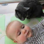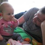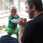 This week Eleanor celebrated St. Patrick’s Day (again) and the first day of Spring. St. Patrick’s Day festivities included getting all dressed up in green, and going out for a Shamrock Shake – and for spring we all went out on a nice walk (and stopped by the cupcake shop). Funny how holidays and tasty deserts are connected :) Ellie hosted her first march madness party – but had a bit of a cold so unfortunately wasn’t in top form for her visitors. Sorry for crying in your lap, Uncle B :(