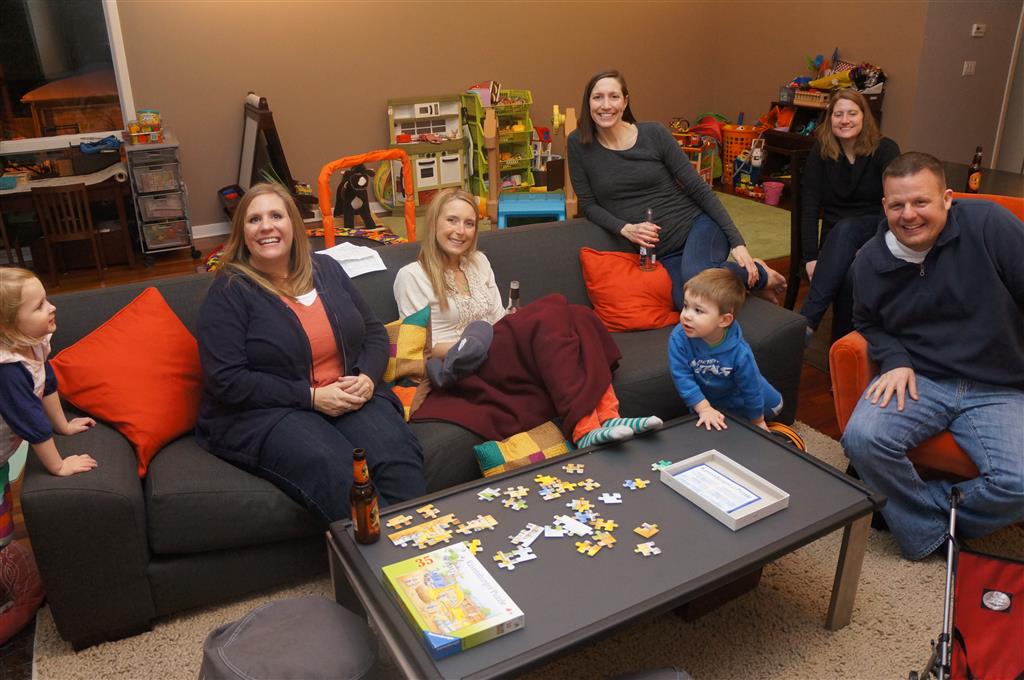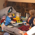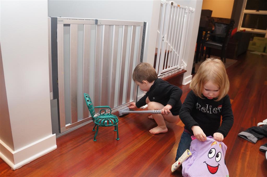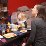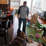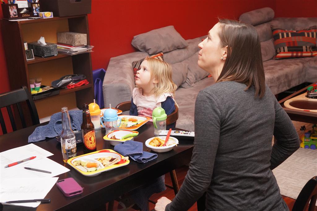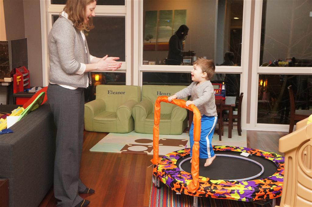 This week Eleanor and Henry hosted a Super Bowl party complete with three different kinds of chili. They were both very confused when we turned on the TVs and everyone started watching. Eleanor liked the fireworks during the team introductions but was confused as to why everyone was running. While watching the opening kickoff she shouted “Pushing…they are all pushing! We don’t do that.” Ha! I tried to explain that football was one exception to the pushing rule. During the first quarter she pronounced that she was “All done with football” and didn’t watch any more. While I was putting her to bed I told her that it was a once a year event, and she explained that she didn’t want to watch any more football ever. She did admit that she enjoyed all the fun food that went along with it. Henry was less interested in the game, and he mostly played with toys while stealing a quick glace at the game every now and again.