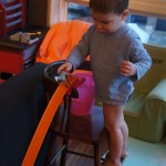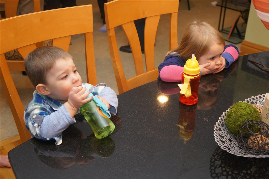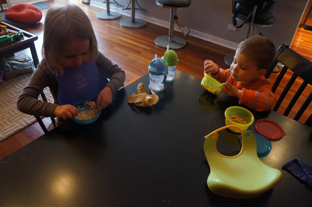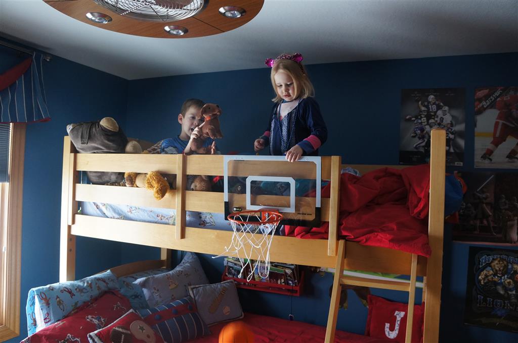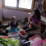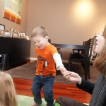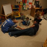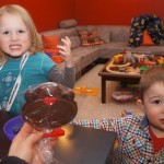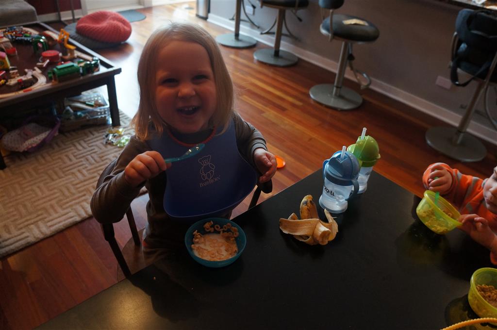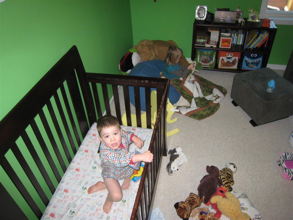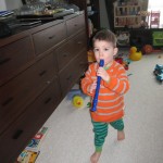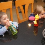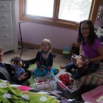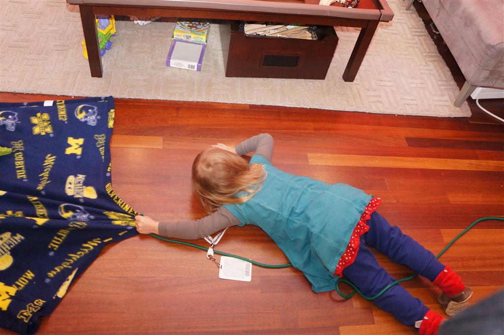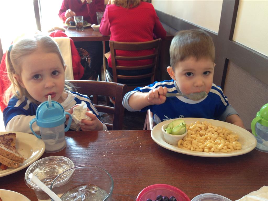 Eleanor and Henry took a trip this weekend to visit their cousins in Michigan. Both kids did great on the airplane – Eleanor said her favorite parts were takeoff and eating strawberries out of a cup. She gets a big smile on her face as the engines start to rev up and as we start to take of she says “Up up up!”. Henry is a little more straight faced about takeoff, and likes to hold someone’s hand when the engines get loud. However, the minute we get off the plane he starts asking to get back on :) We spent the night with our cousins, and Eleanor had a blast sleeping in Mackenzie’s room. She fell out of bed a few times, but didn’t seem concerned about it at all. She stayed asleep at least once, and another time she just got back in. Henry didn’t love his accommodations on the air mattress – he spent most of the night in bed with Mom and Dad.