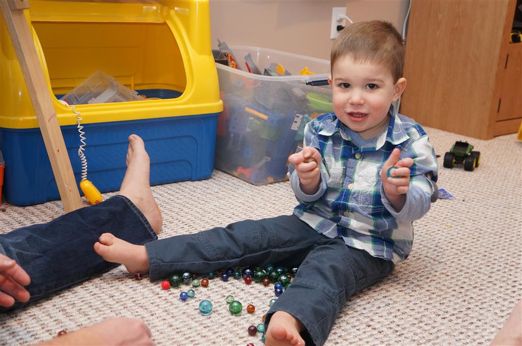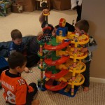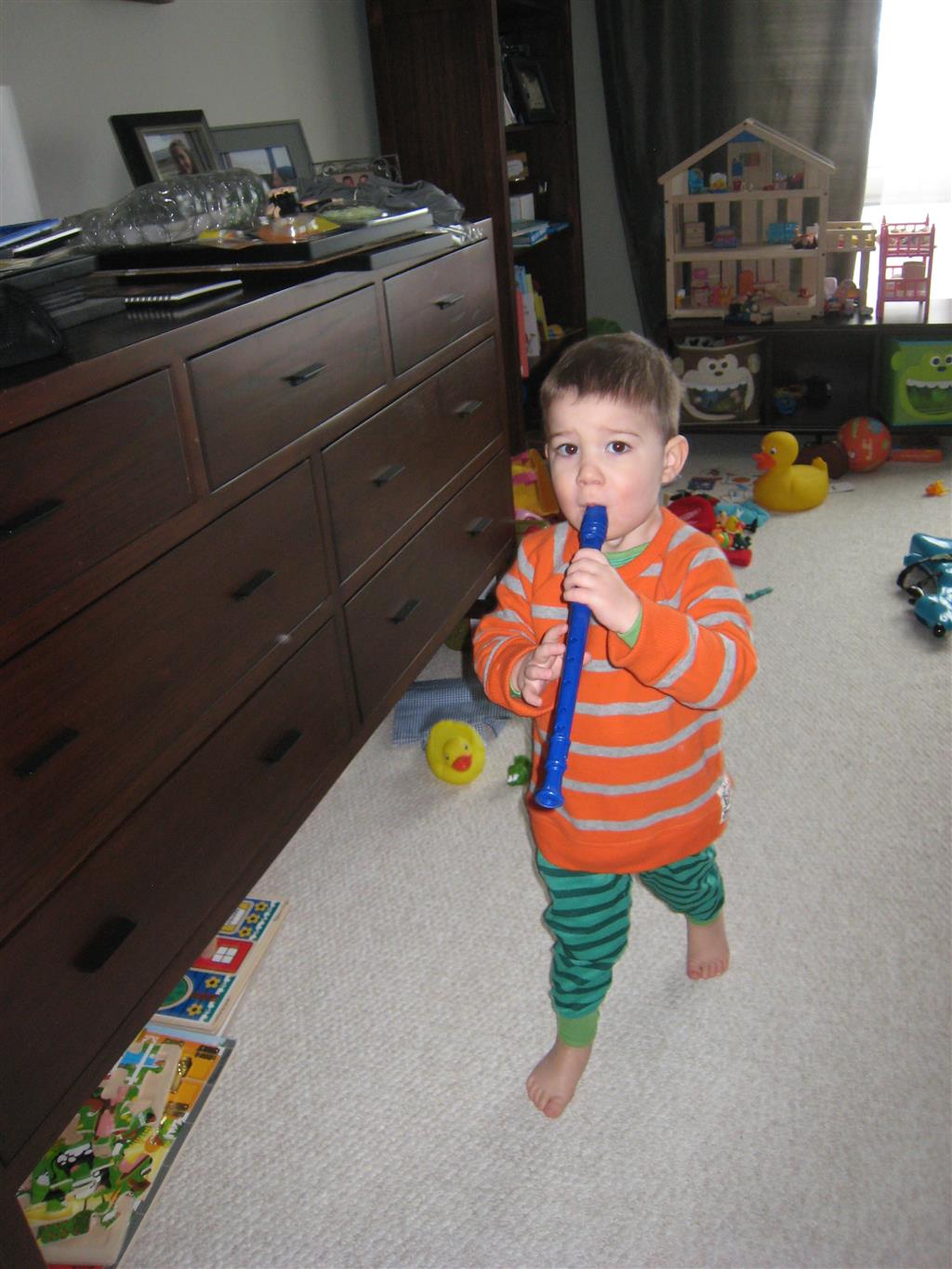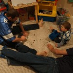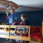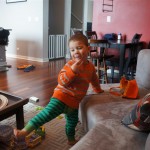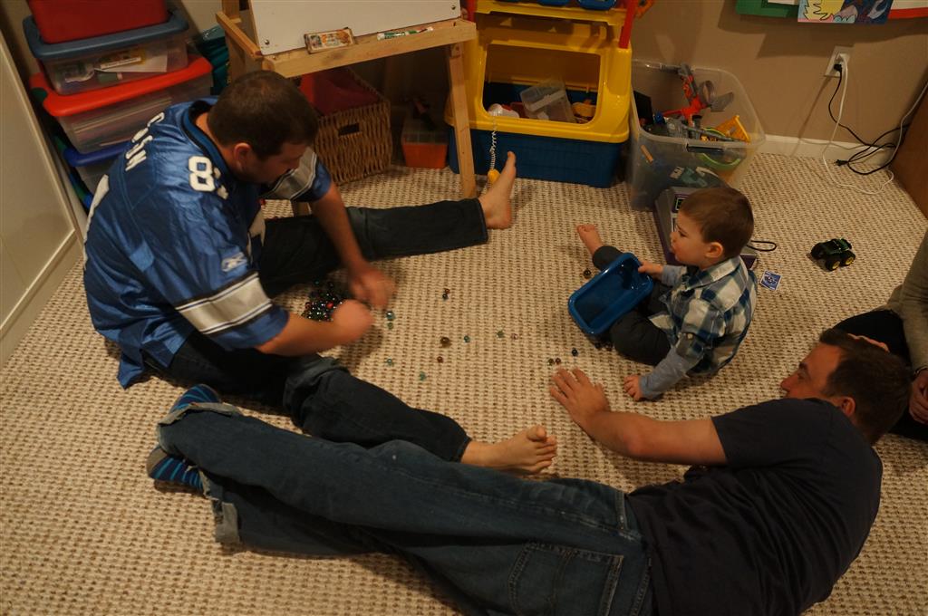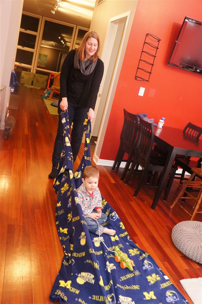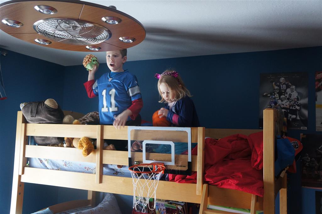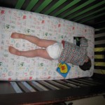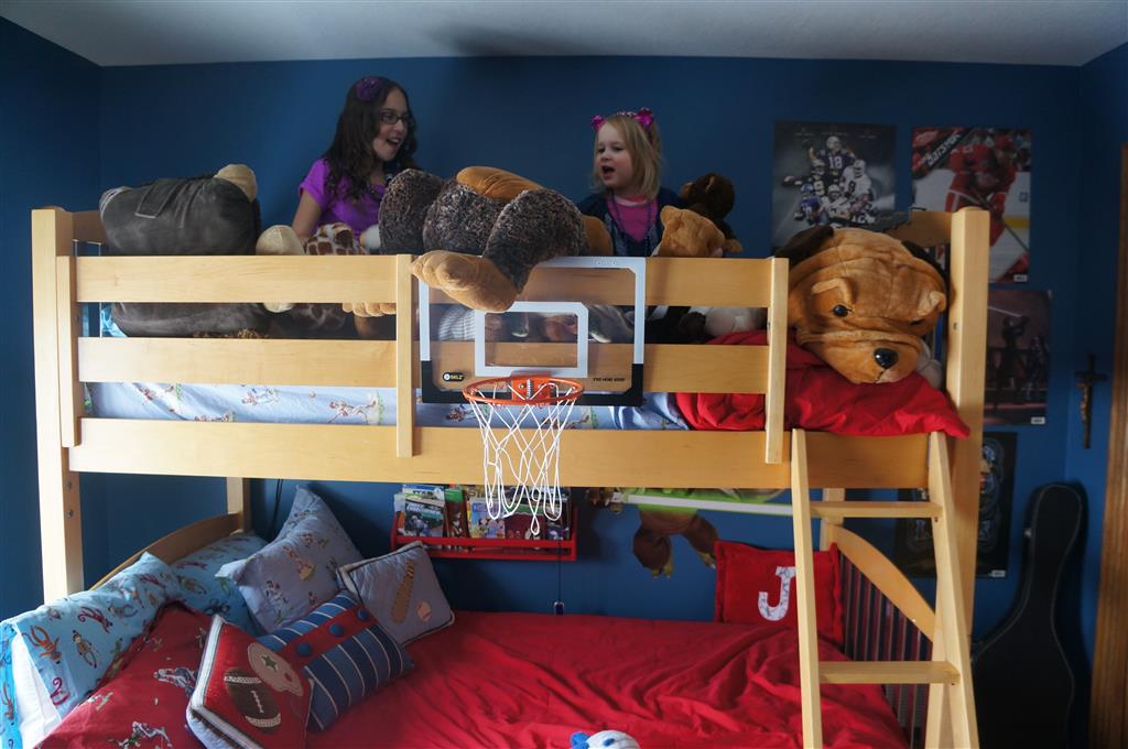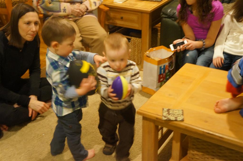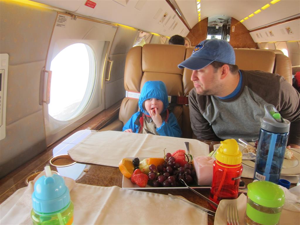 Eleanor and Henry took a trip this weekend to visit their cousins in Michigan. Both kids did great on the airplane – Eleanor said her favorite parts were takeoff and eating strawberries out of a cup. She gets a big smile on her face as the engines start to rev up and as we start to take of she says “Up up up!”. Henry is a little more straight faced about takeoff, and likes to hold someone’s hand when the engines get loud. However, the minute we get off the plane he starts asking to get back on :) We spent the night with our cousins, and Eleanor had a blast sleeping in Mackenzie’s room. She fell out of bed a few times, but didn’t seem concerned about it at all. She stayed asleep at least once, and another time she just got back in. Henry didn’t love his accommodations on the air mattress – he spent most of the night in bed with Mom and Dad.