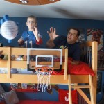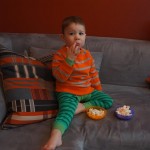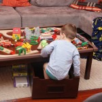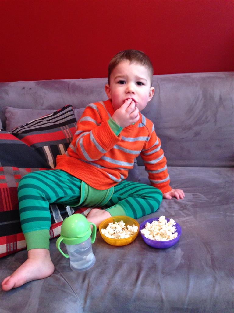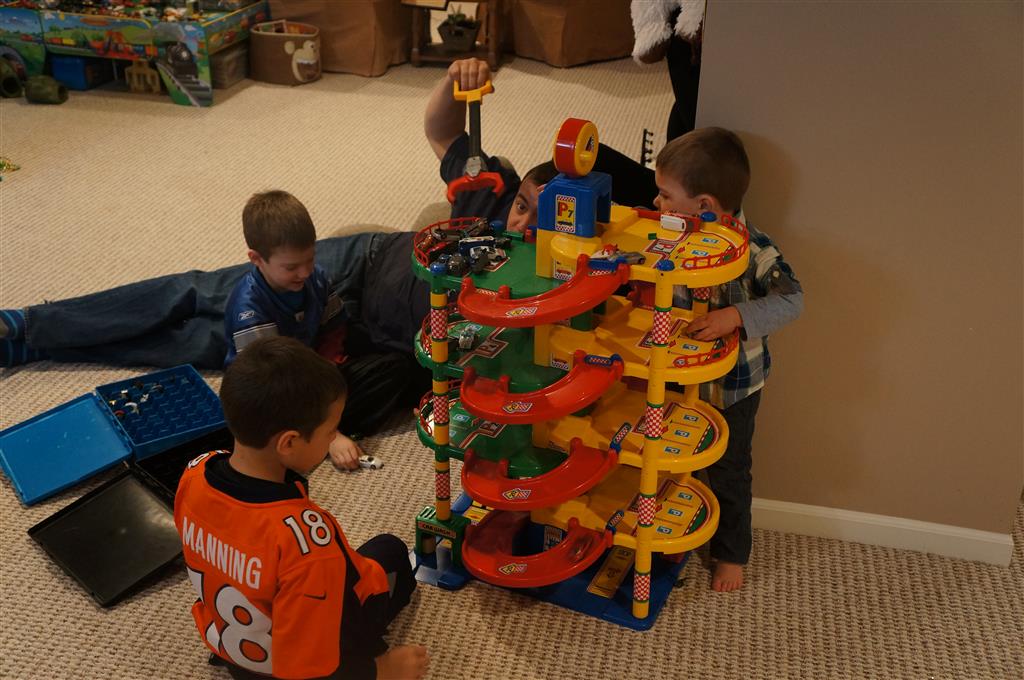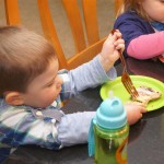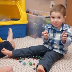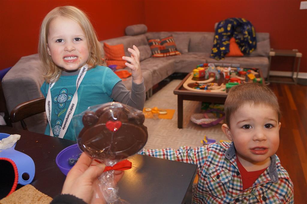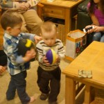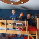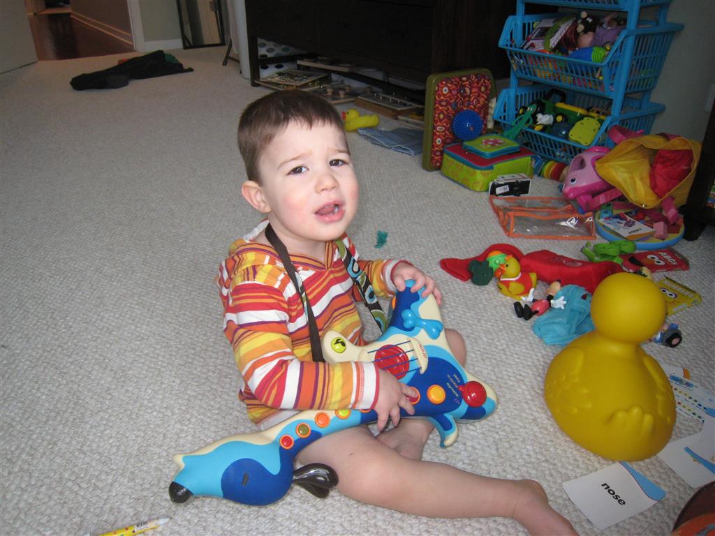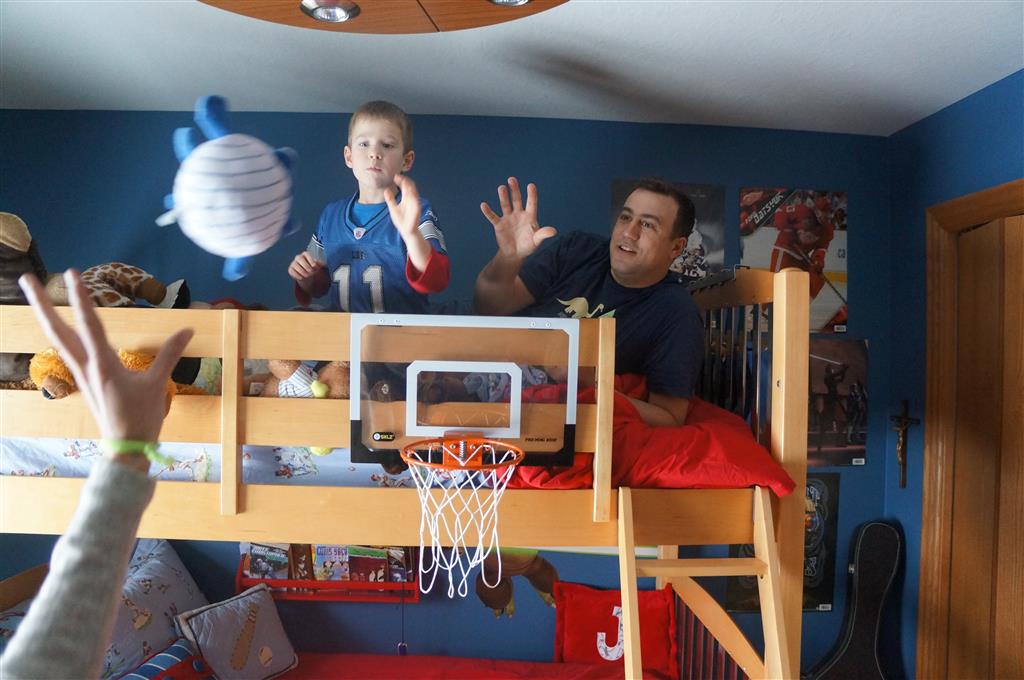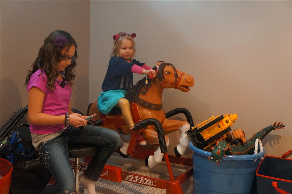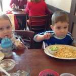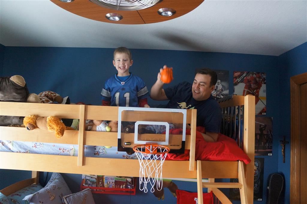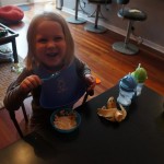 Eleanor and Henry took a trip this weekend to visit their cousins in Michigan. Both kids did great on the airplane – Eleanor said her favorite parts were takeoff and eating strawberries out of a cup. She gets a big smile on her face as the engines start to rev up and as we start to take of she says “Up up up!”. Henry is a little more straight faced about takeoff, and likes to hold someone’s hand when the engines get loud. However, the minute we get off the plane he starts asking to get back on :) We spent the night with our cousins, and Eleanor had a blast sleeping in Mackenzie’s room. She fell out of bed a few times, but didn’t seem concerned about it at all. She stayed asleep at least once, and another time she just got back in. Henry didn’t love his accommodations on the air mattress – he spent most of the night in bed with Mom and Dad.