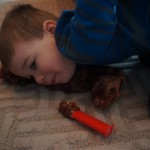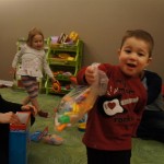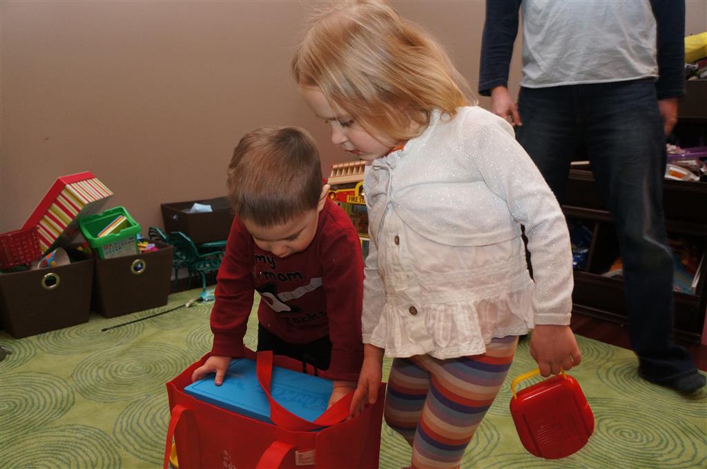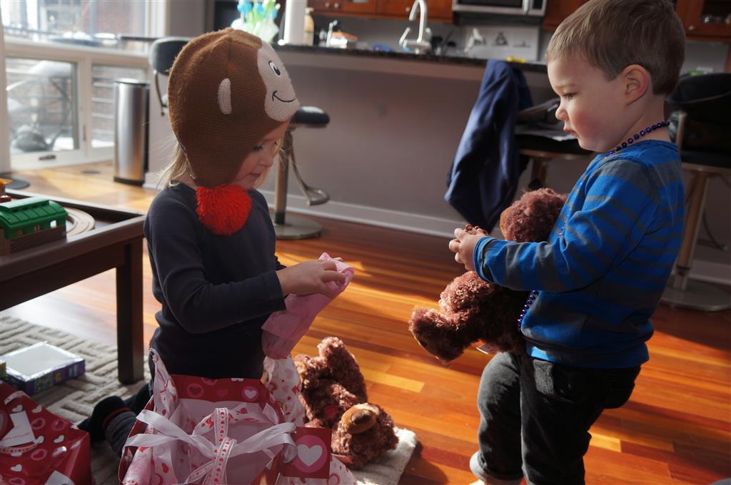 We were very excited to give Eleanor and Henry some Tinker Toys for Valentine’s Day, because Eleanor likes them so much at school. Not surprisingly, about 10 minutes after giving them the toys, Mom Dad and Lala were all playing with them, and Henry and Eleanor had moved on to other things :) I think we will eventually get lots of fun out of them though.