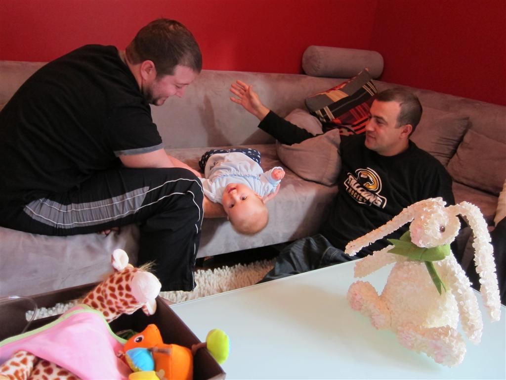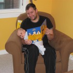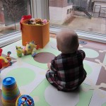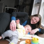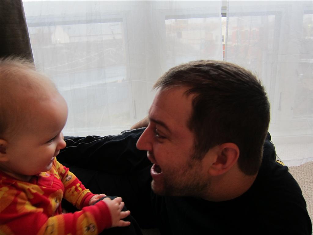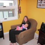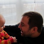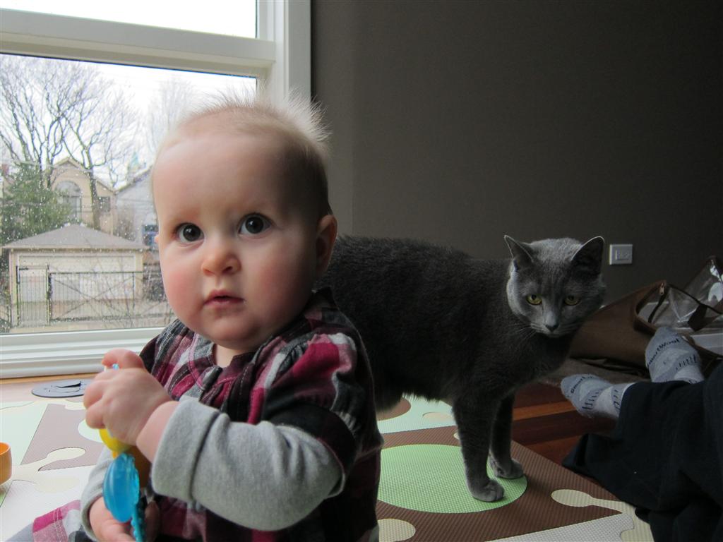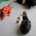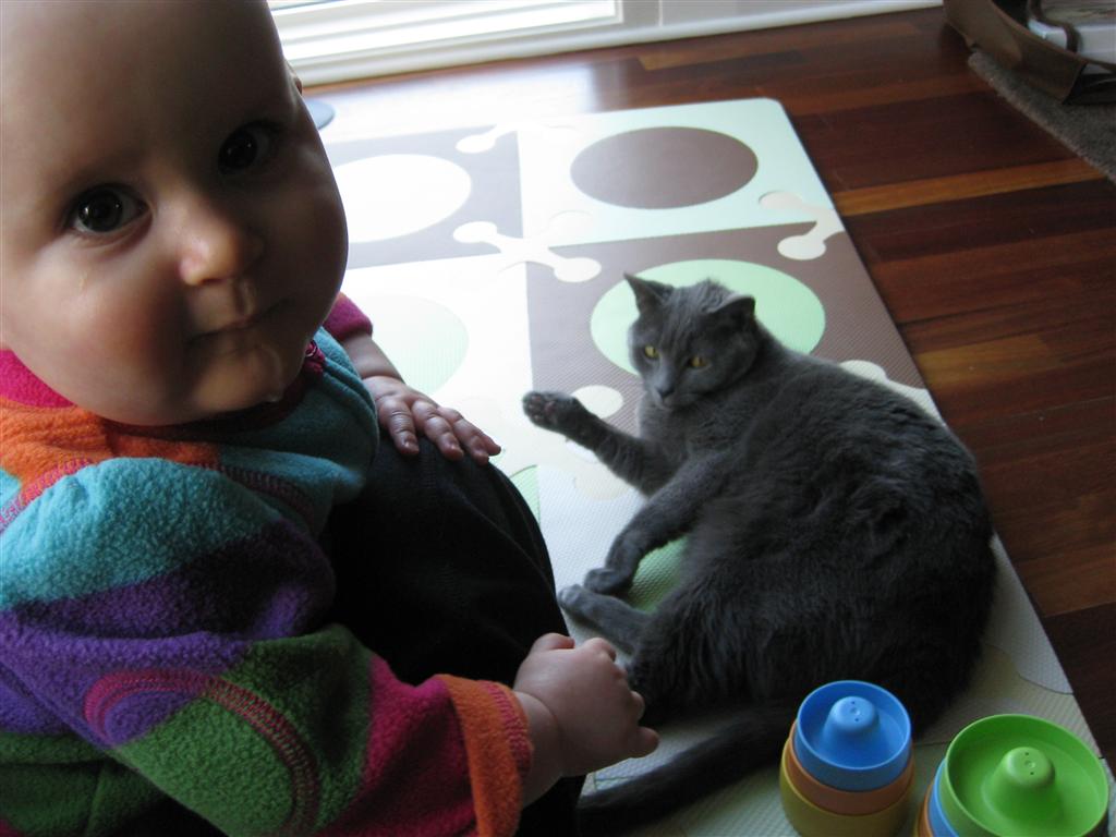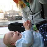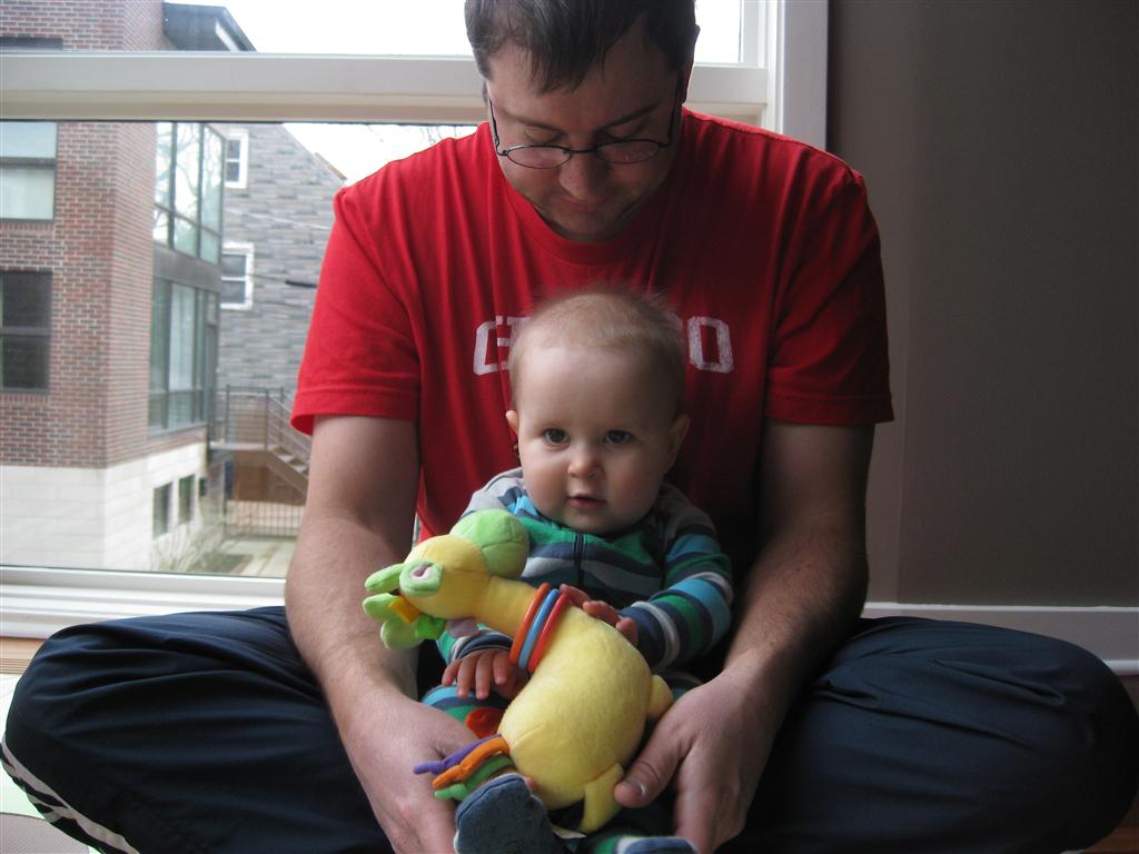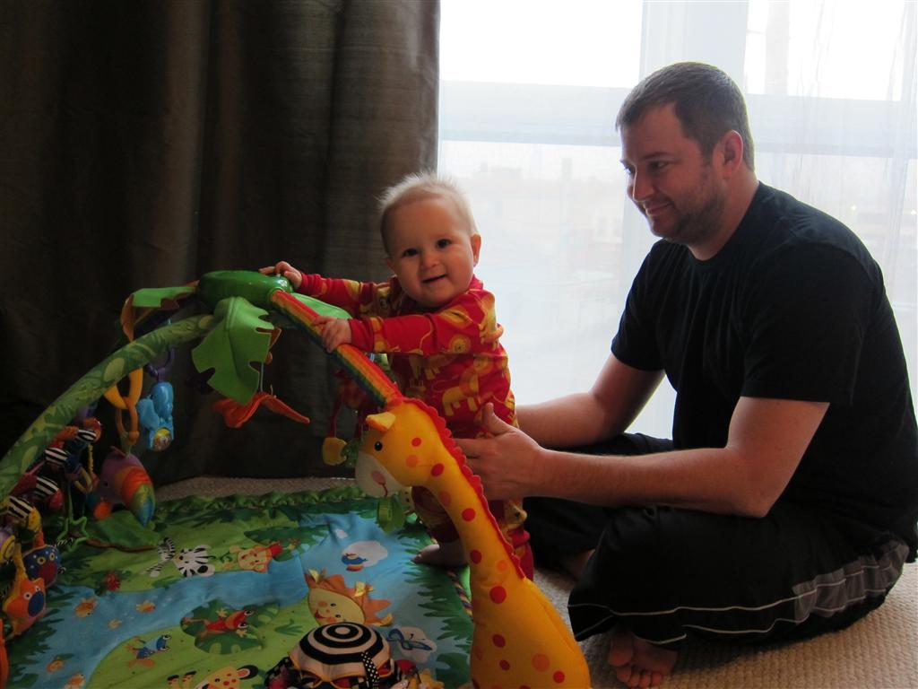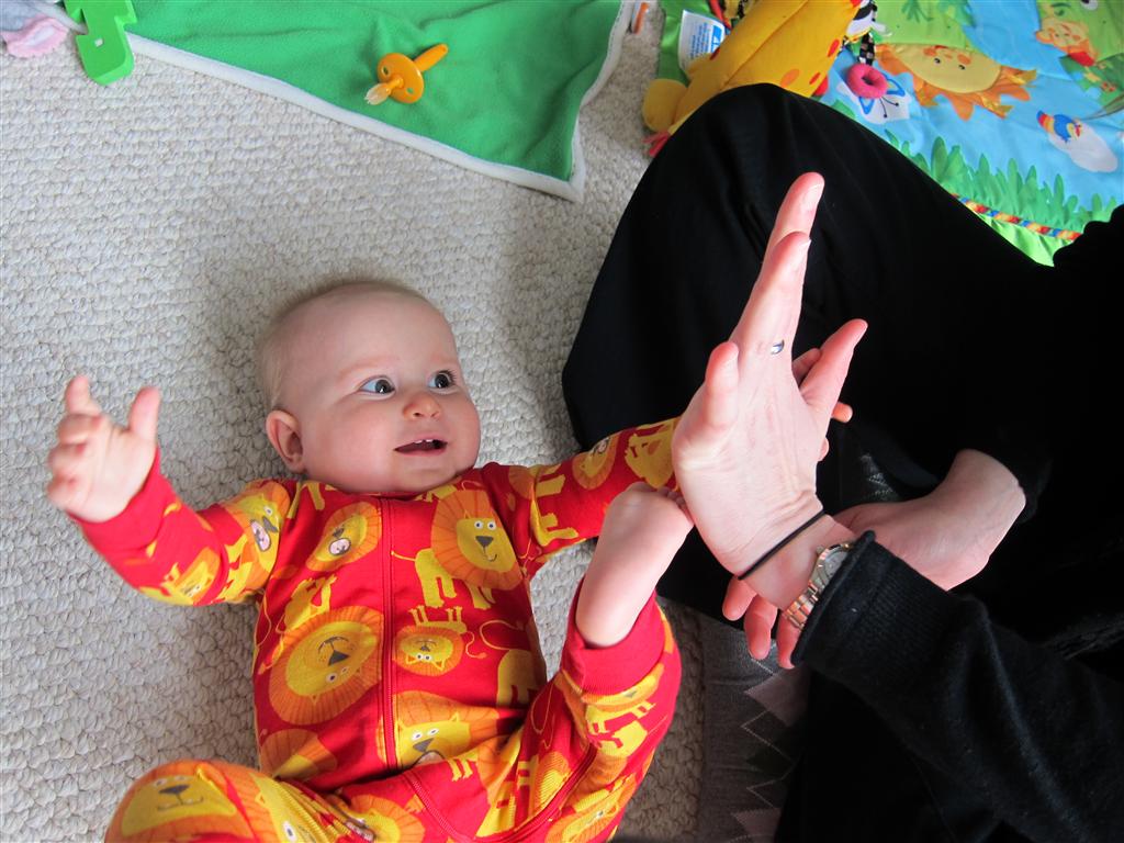 This week Eleanor is cutting two more teeth – up top next to her front two. Unfortunately, they are quite hard to see, so we don’t have any pictures to share, but maybe next week.   Eleanor has also been working on her musical talents with her new instruments, especially the maracas.  Her standing is also improving on a daily basis, with some stints of 8-10 seconds of “free standing”.  Not much progress on the crawling front – the only time Ellie willingly gets on her tummy is when the iPhone is within rolling distance.  Why do kids love phones?
