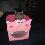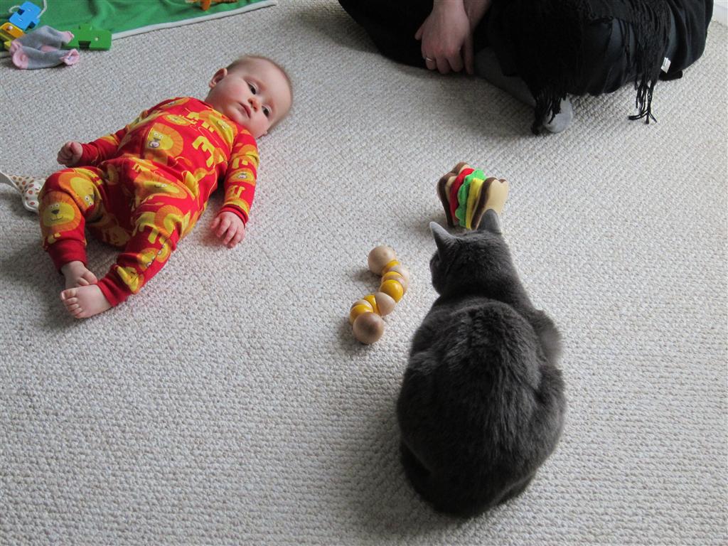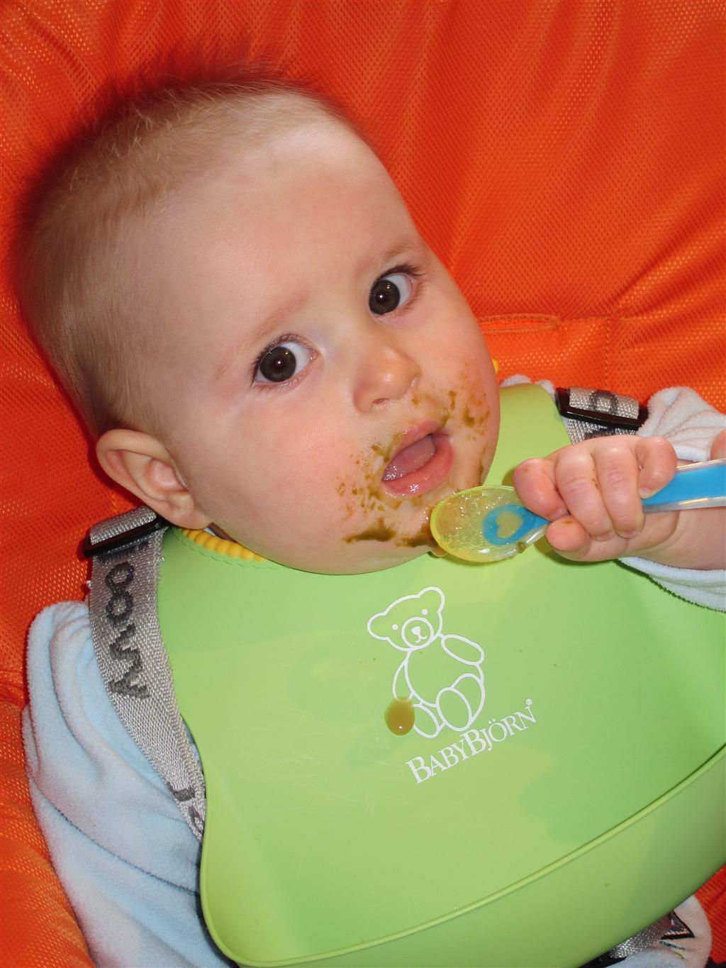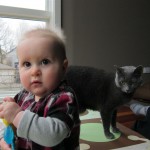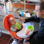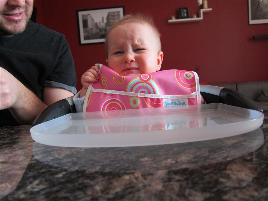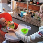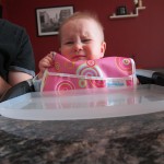 1. Cute new ‘head tilt’ expression.  New feeding chair?  Closer to body, easier to reach puffs and less collateral damage/dropage of food to floor.  Zappa will be disappointed with less fall-out to eat.