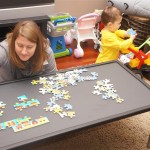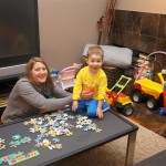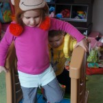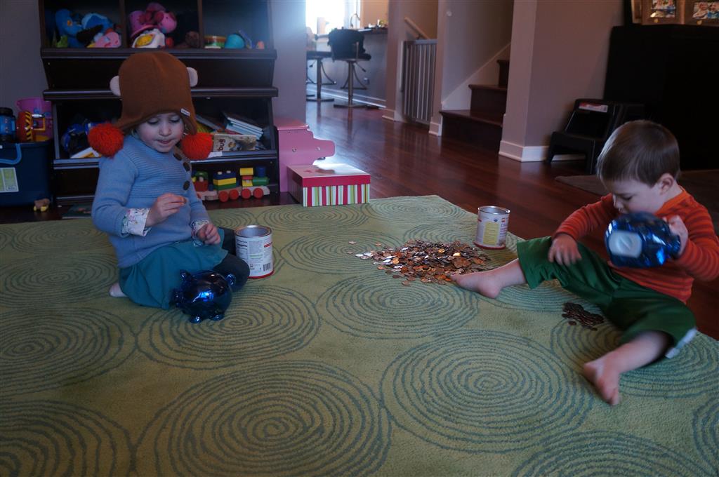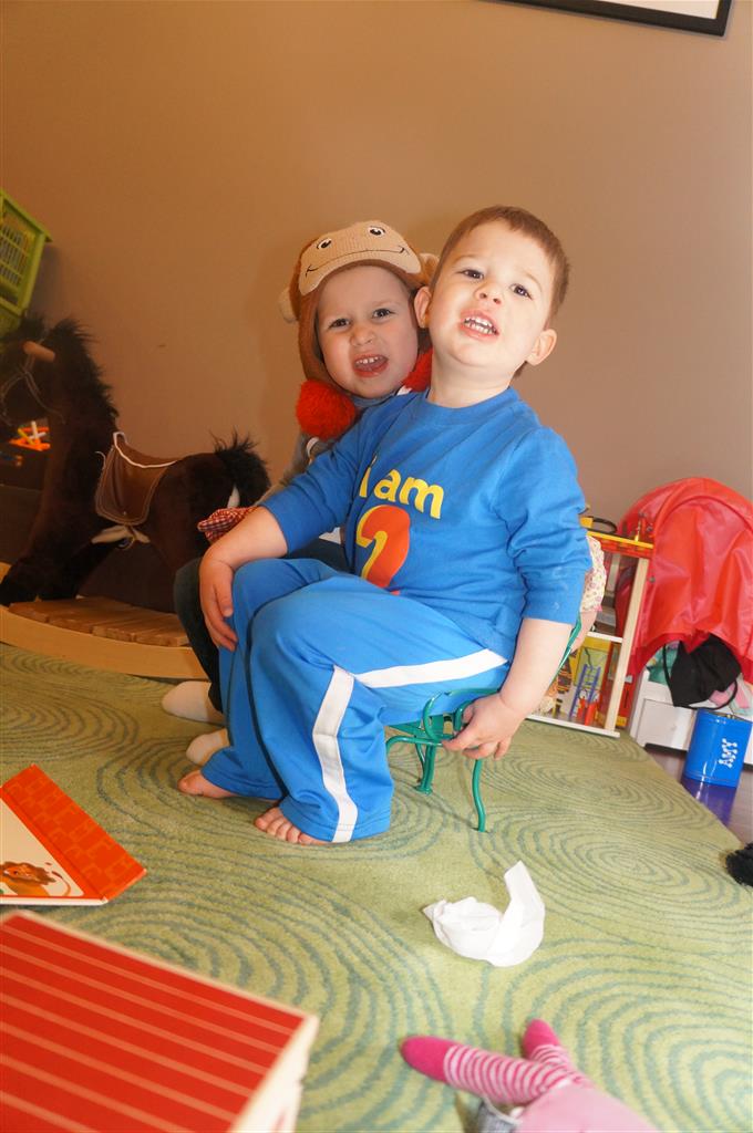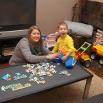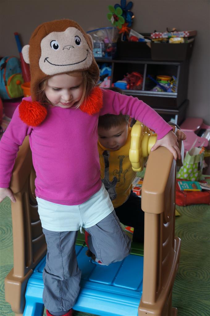 Eleanor and Henry welcomed the month of March this week – but the weather didn’t seem to get the hint. Snow and cold were the prevailing conditions, so we had lots of indoor activities. Both Eleanor and Henry started the week still showing some effects of the past weeks illness, but by Tuesday we were back to normal. Monday they took a trip to the Children’s Museum and “discovered” a new room that we hadn’t played in before, complete with a fun slide! Tuesday and Wednesday we returned to our normal activities of preschool and bubbles classes. On Thursday, both kids had a new teacher at swimming class – Henry started with coach Tim (Eleanor’s old coach) and he was a bit sad that Dad wasn’t in the water with him, but afterwards he said he was excited about going back next week. Eleanor moved up to a new class with coach Steve, and she definitely did better with this transition than she did with the last coach change. Once she gets a little more comfortable with him, she should be doing some actual swimming by herself at this level.
