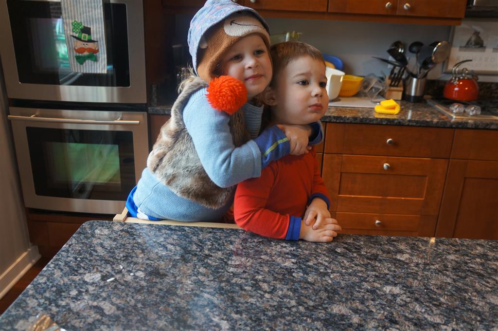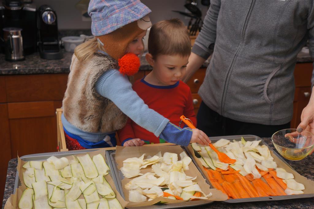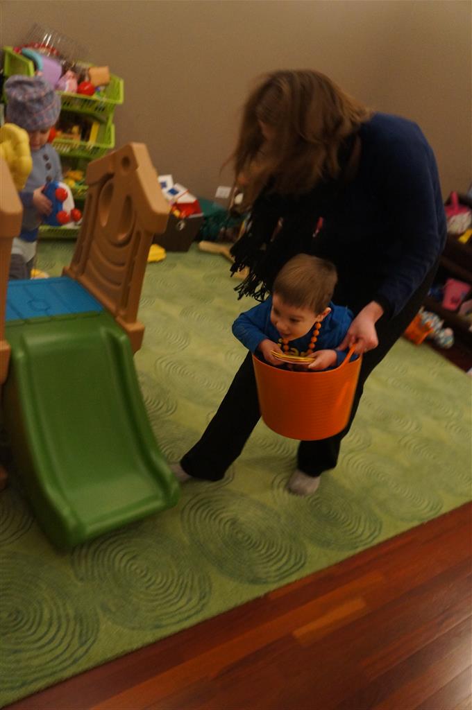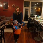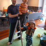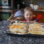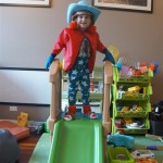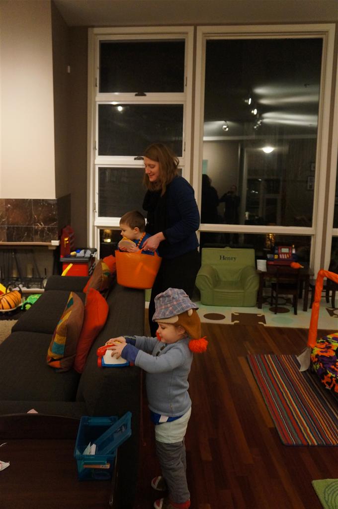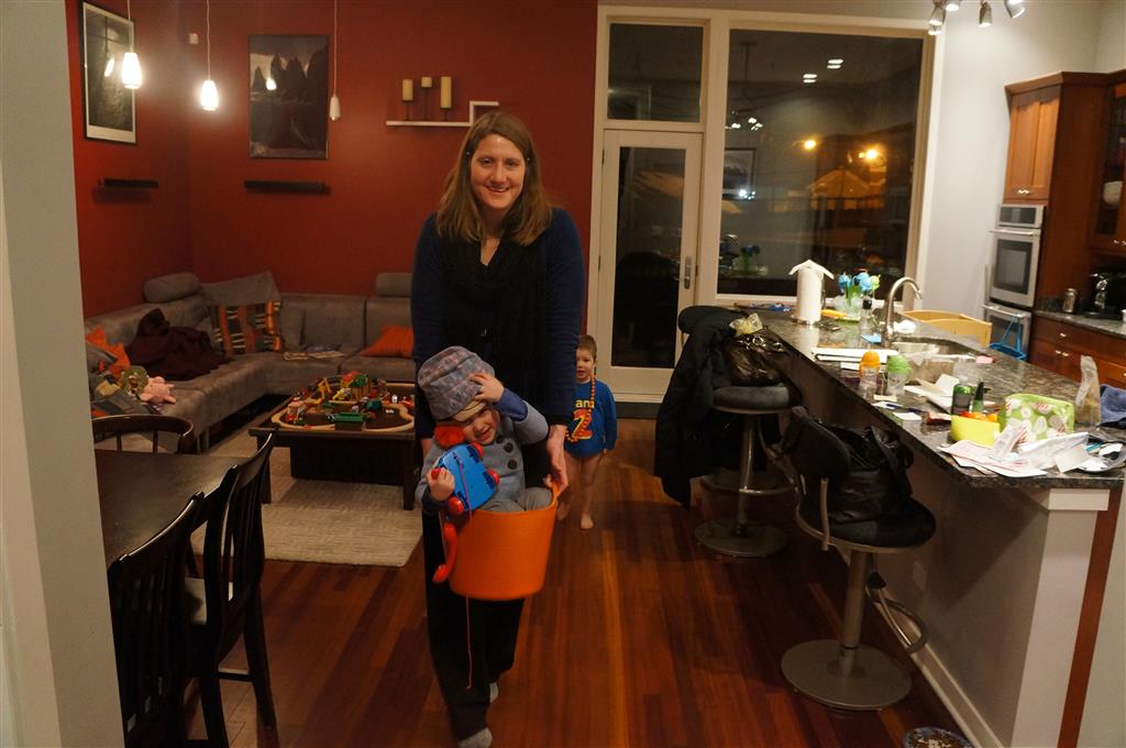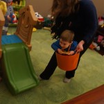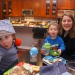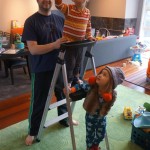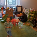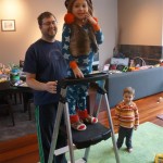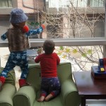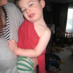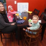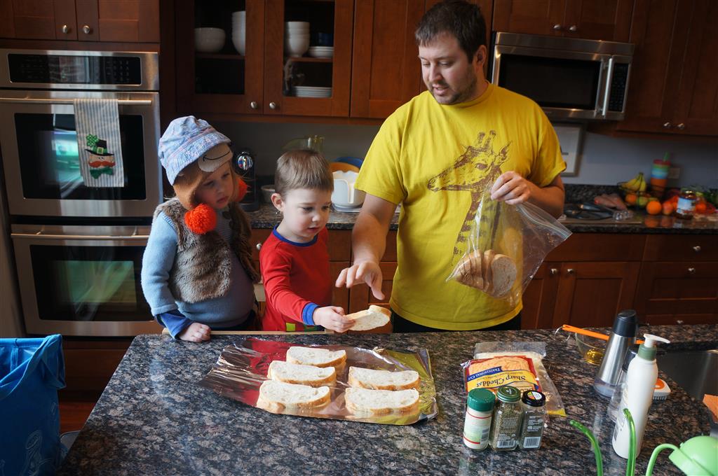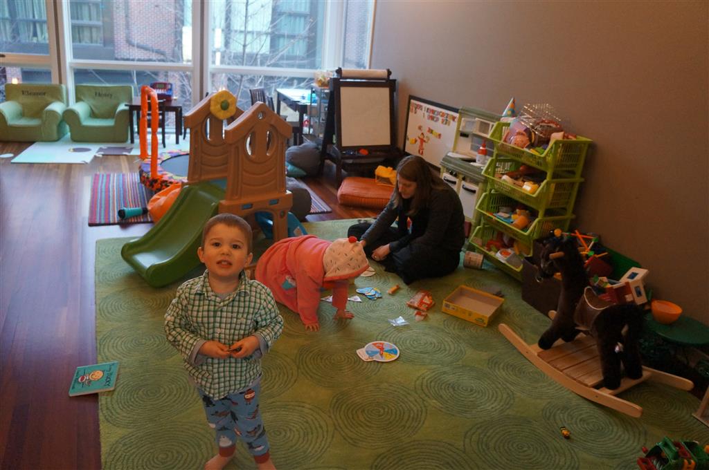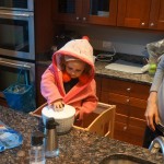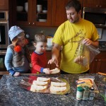 Eleanor and Henry have both begun to wonder what happened to walking to the park. It seems like forever ago that we had a nice warm day to head out. We have been having lots of fun with indoor activities, and this weekend we decided to start a family dinner Sunday tradition (move over taco Sunday!). We had the kids join in making dinner on Sunday night, complete with veggi chips and garlic bread. They were excited to get involved but we will see how long that lasts… Other fun activites this week were putting up some St Patrick’s Day themed gel jams (Thanks Grandma and Grandpa!) and lots of fun outfit designs from Eleanor. Eleanor has also been very into bags this week, and Monkey and lots of other friends have spent most of the week moving from bag to larger bag and the number of “favorite” items selected to be in the bag grows and grows. By Sunday night, the were occupying all of the Gray and Hobbes’ tent. Henry’s favorite thing to do this week is narrate life as it goes by. He loves to use his words to describe anything and everything that is going on – although a bit embarrassing when at Whole Foods for lunch he said “That woman make mamma’s taco” to the long haired man making tacos.:)