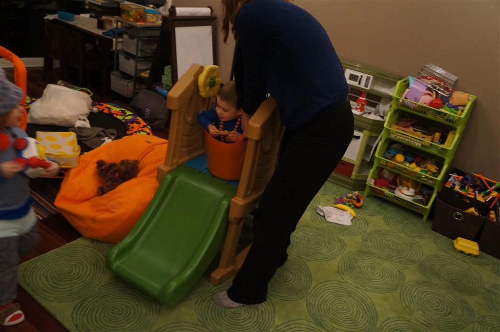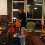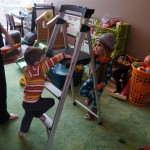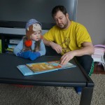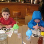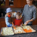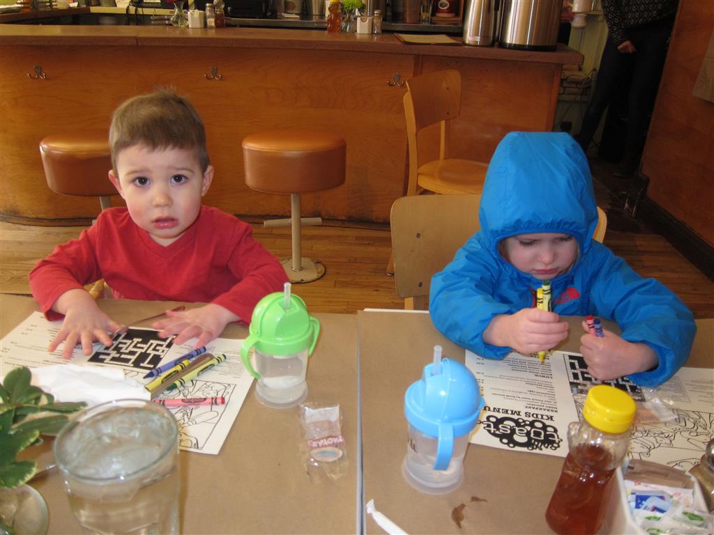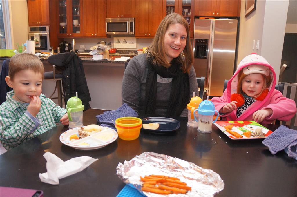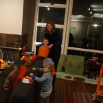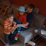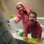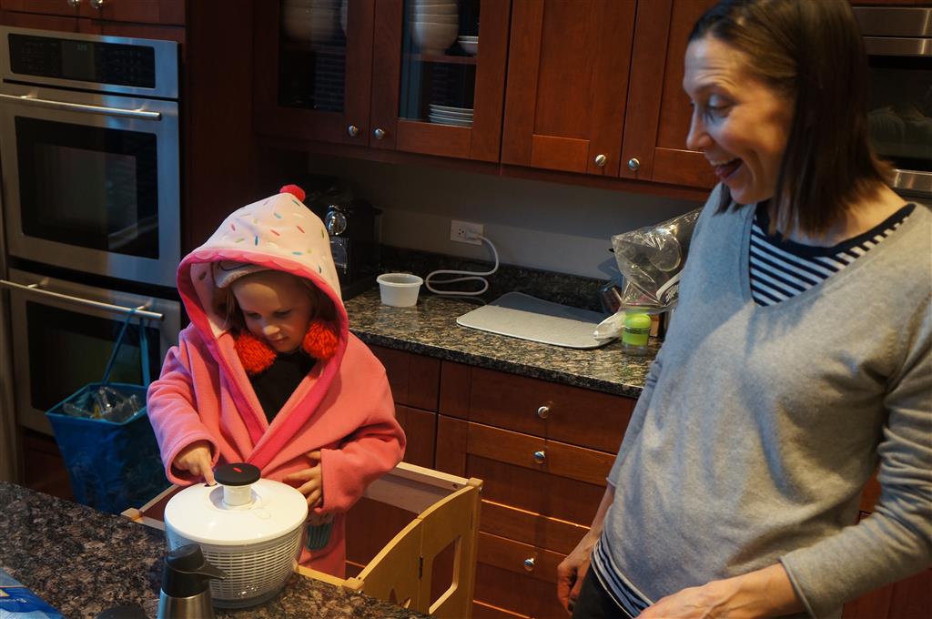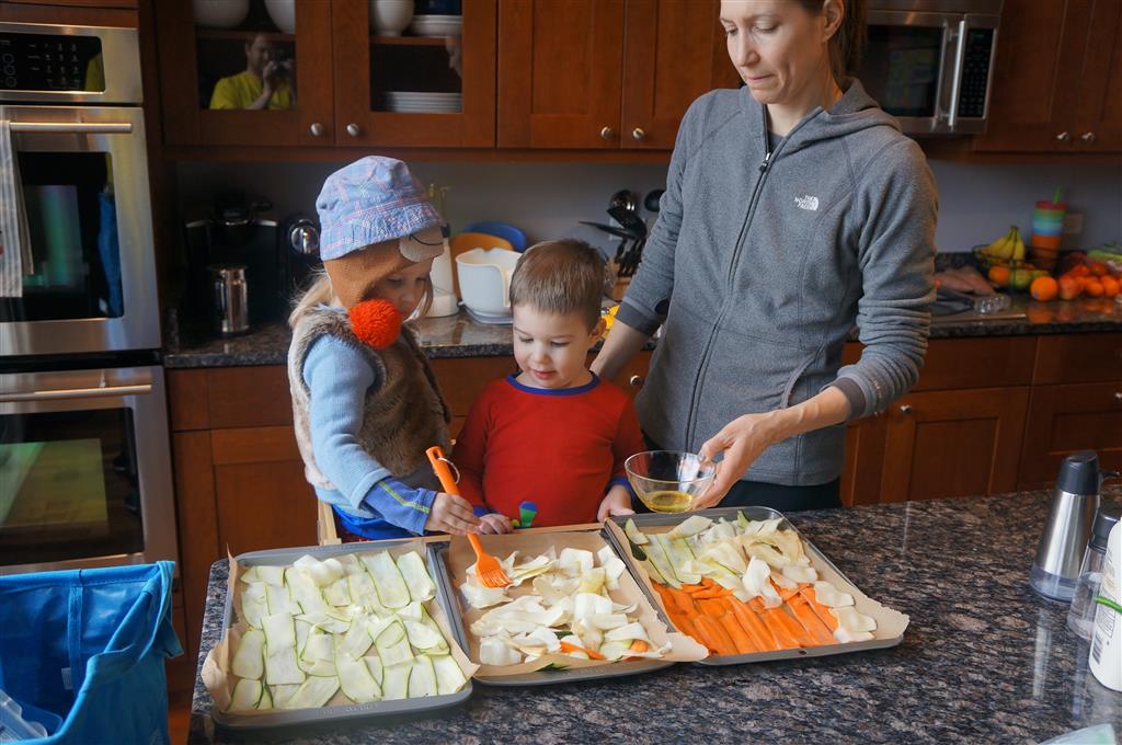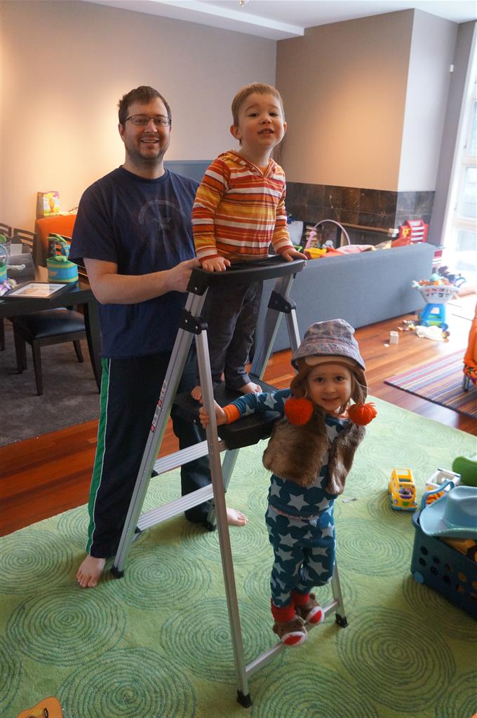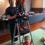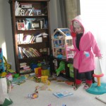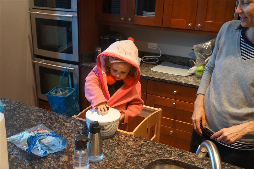 Eleanor and Henry have both begun to wonder what happened to walking to the park. It seems like forever ago that we had a nice warm day to head out. We have been having lots of fun with indoor activities, and this weekend we decided to start a family dinner Sunday tradition (move over taco Sunday!). We had the kids join in making dinner on Sunday night, complete with veggi chips and garlic bread. They were excited to get involved but we will see how long that lasts… Other fun activites this week were putting up some St Patrick’s Day themed gel jams (Thanks Grandma and Grandpa!) and lots of fun outfit designs from Eleanor. Eleanor has also been very into bags this week, and Monkey and lots of other friends have spent most of the week moving from bag to larger bag and the number of “favorite” items selected to be in the bag grows and grows. By Sunday night, the were occupying all of the Gray and Hobbes’ tent. Henry’s favorite thing to do this week is narrate life as it goes by. He loves to use his words to describe anything and everything that is going on – although a bit embarrassing when at Whole Foods for lunch he said “That woman make mamma’s taco” to the long haired man making tacos.:)