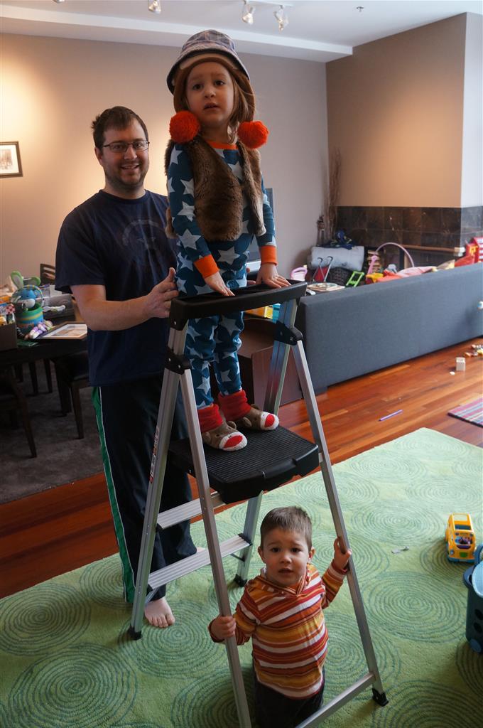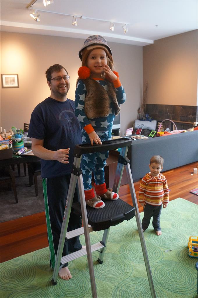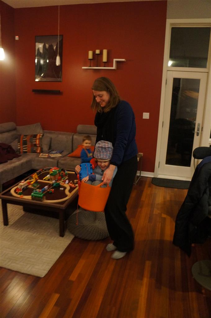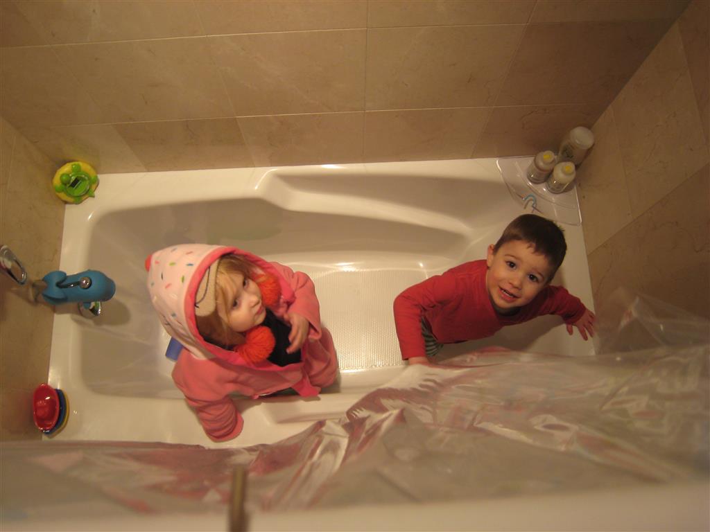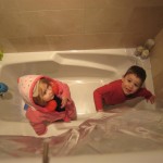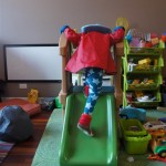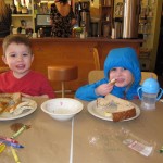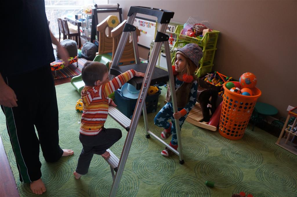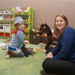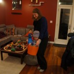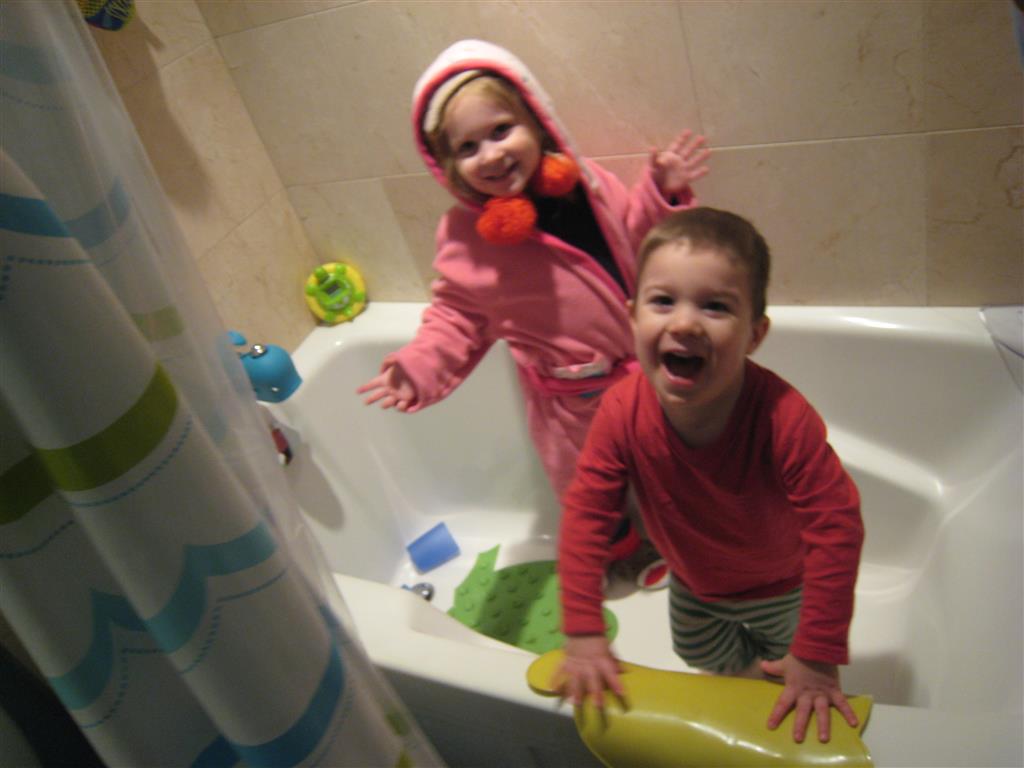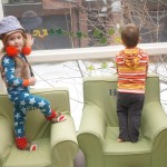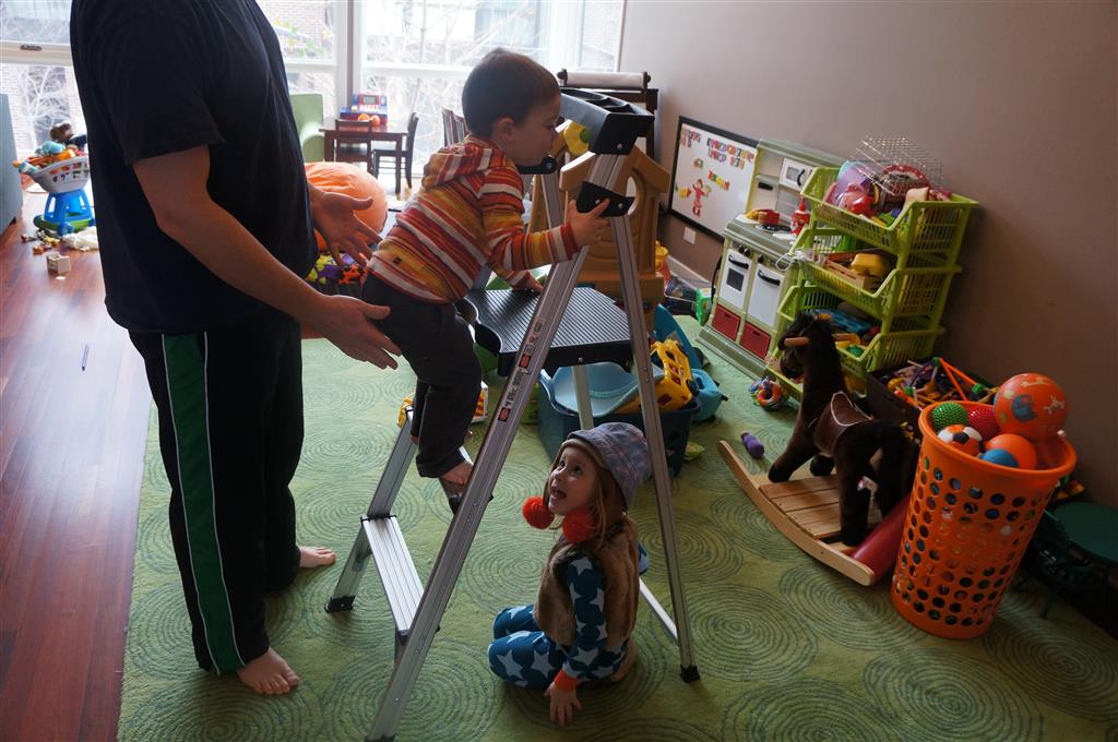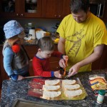 Eleanor and Henry have both begun to wonder what happened to walking to the park. It seems like forever ago that we had a nice warm day to head out. We have been having lots of fun with indoor activities, and this weekend we decided to start a family dinner Sunday tradition (move over taco Sunday!). We had the kids join in making dinner on Sunday night, complete with veggi chips and garlic bread. They were excited to get involved but we will see how long that lasts… Other fun activites this week were putting up some St Patrick’s Day themed gel jams (Thanks Grandma and Grandpa!) and lots of fun outfit designs from Eleanor. Eleanor has also been very into bags this week, and Monkey and lots of other friends have spent most of the week moving from bag to larger bag and the number of “favorite” items selected to be in the bag grows and grows. By Sunday night, the were occupying all of the Gray and Hobbes’ tent. Henry’s favorite thing to do this week is narrate life as it goes by. He loves to use his words to describe anything and everything that is going on – although a bit embarrassing when at Whole Foods for lunch he said “That woman make mamma’s taco” to the long haired man making tacos.:)