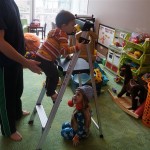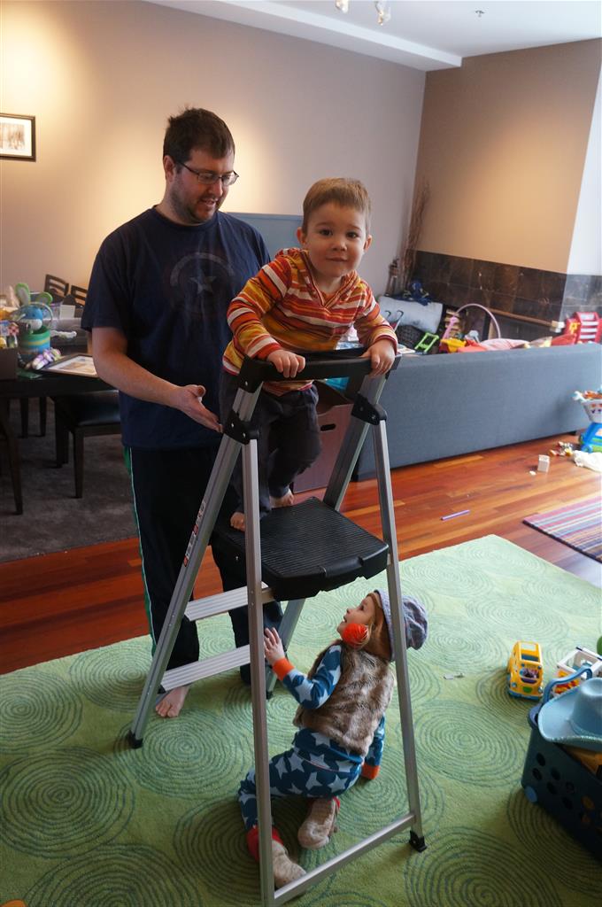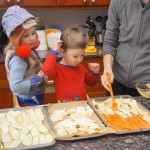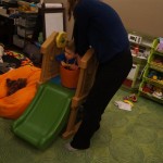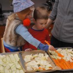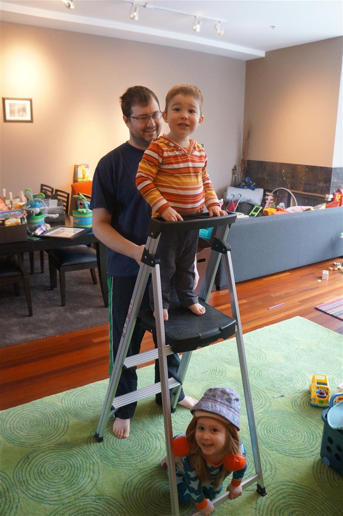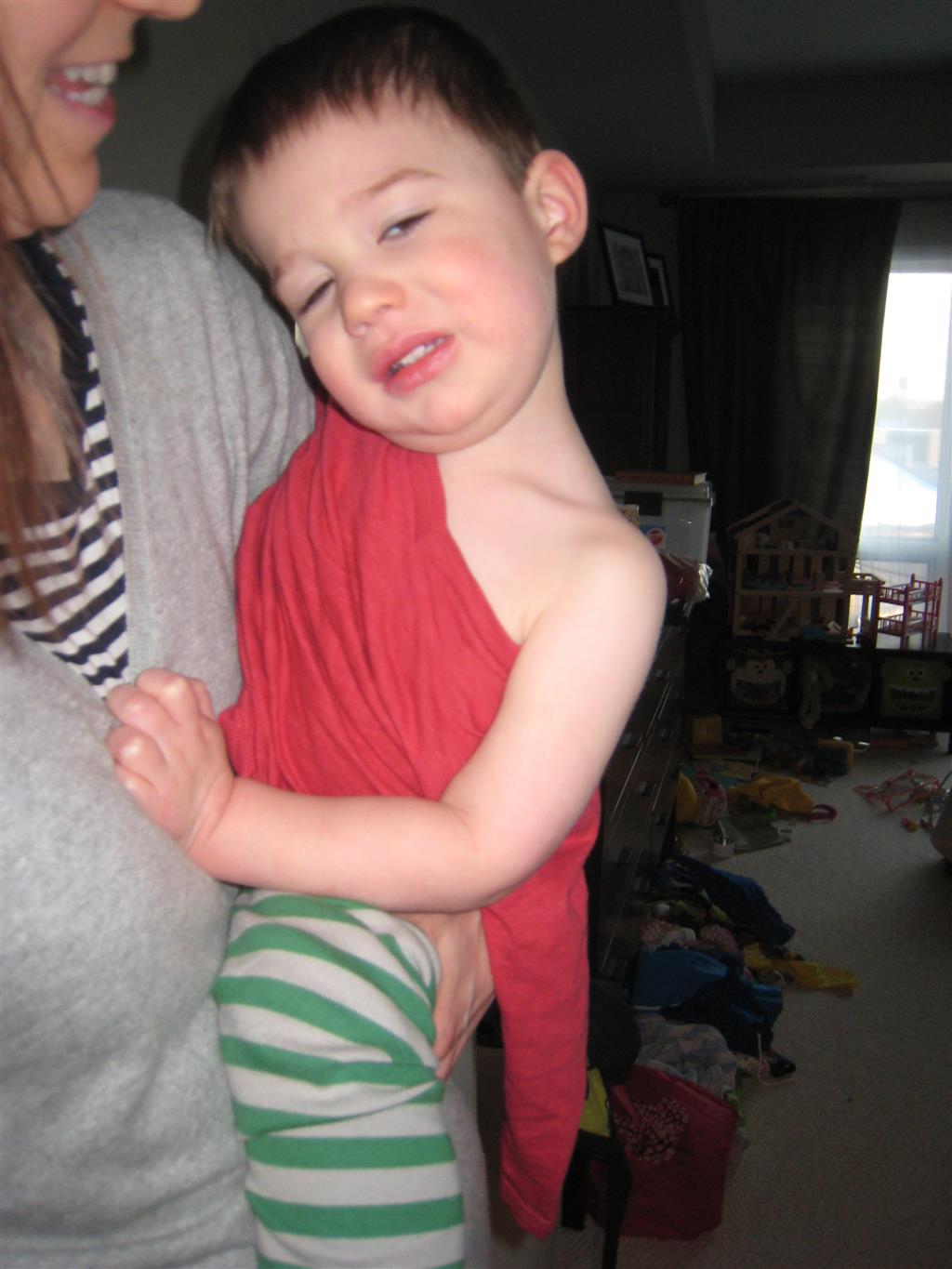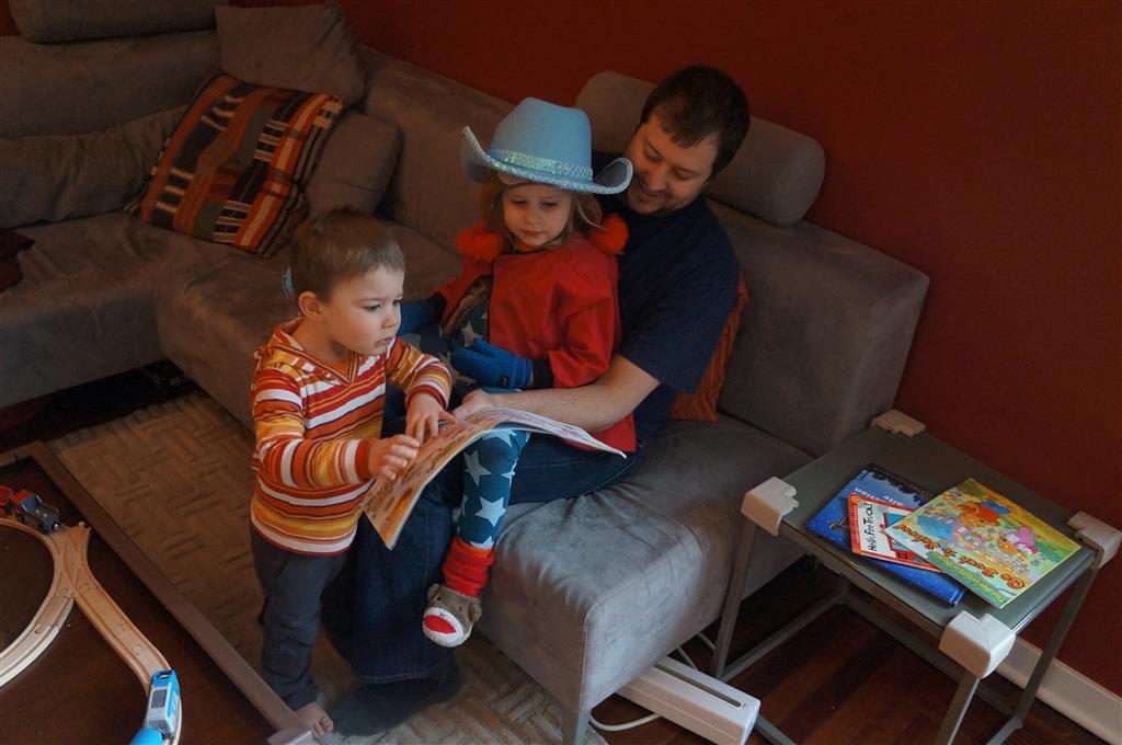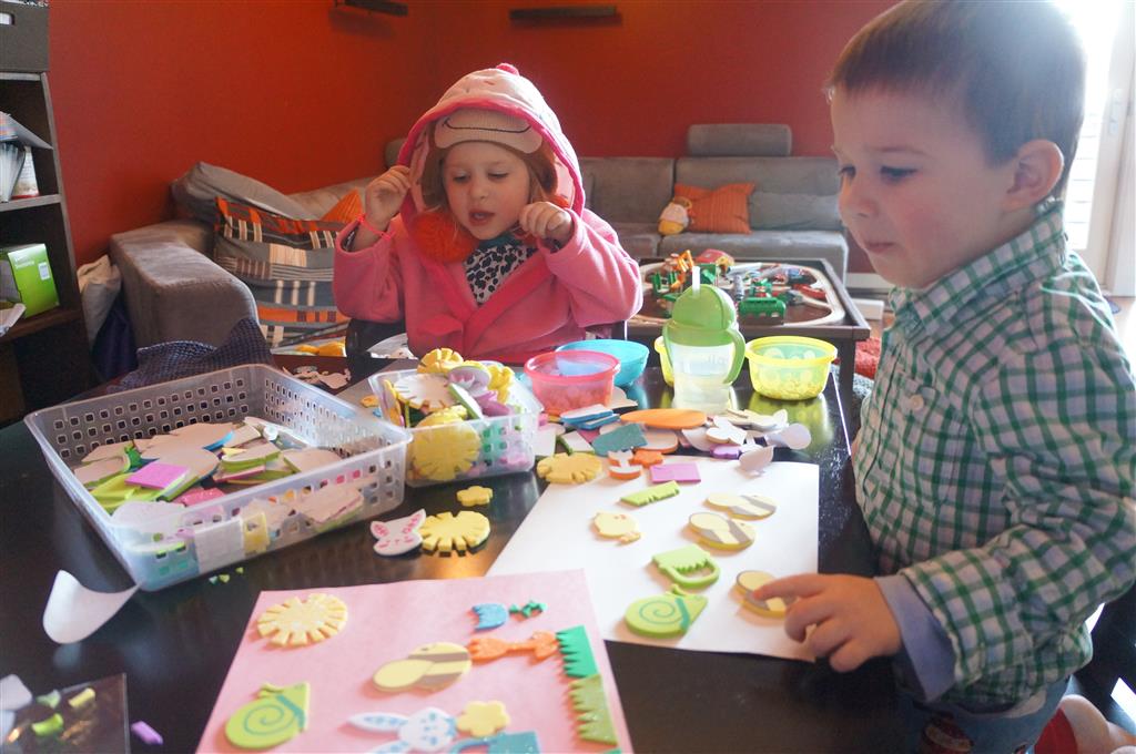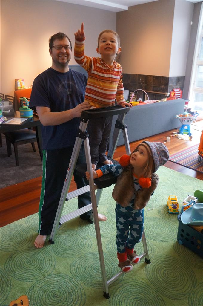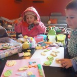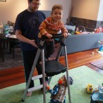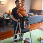 Eleanor and Henry have both begun to wonder what happened to walking to the park. It seems like forever ago that we had a nice warm day to head out. We have been having lots of fun with indoor activities, and this weekend we decided to start a family dinner Sunday tradition (move over taco Sunday!). We had the kids join in making dinner on Sunday night, complete with veggi chips and garlic bread. They were excited to get involved but we will see how long that lasts… Other fun activites this week were putting up some St Patrick’s Day themed gel jams (Thanks Grandma and Grandpa!) and lots of fun outfit designs from Eleanor. Eleanor has also been very into bags this week, and Monkey and lots of other friends have spent most of the week moving from bag to larger bag and the number of “favorite” items selected to be in the bag grows and grows. By Sunday night, the were occupying all of the Gray and Hobbes’ tent. Henry’s favorite thing to do this week is narrate life as it goes by. He loves to use his words to describe anything and everything that is going on – although a bit embarrassing when at Whole Foods for lunch he said “That woman make mamma’s taco” to the long haired man making tacos.:)