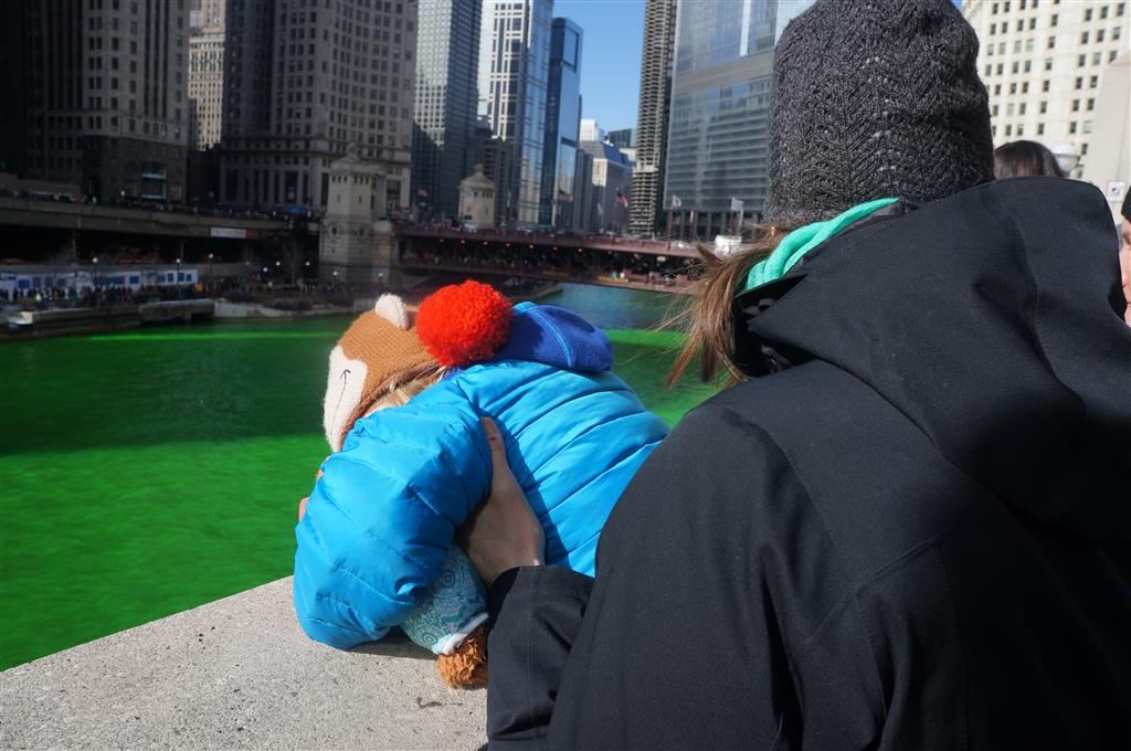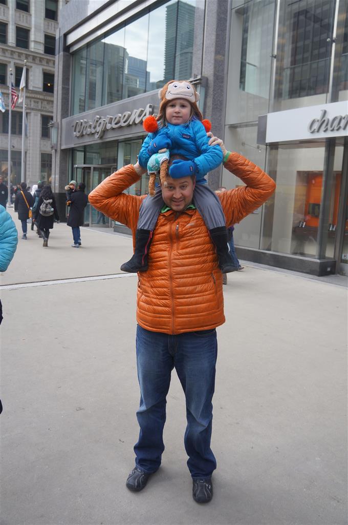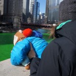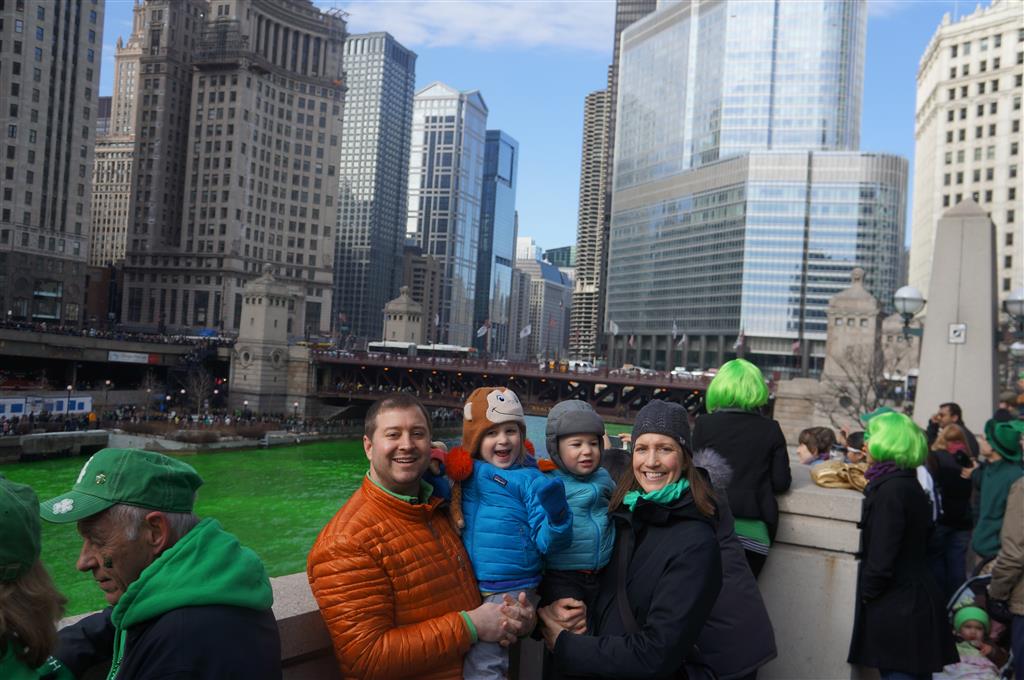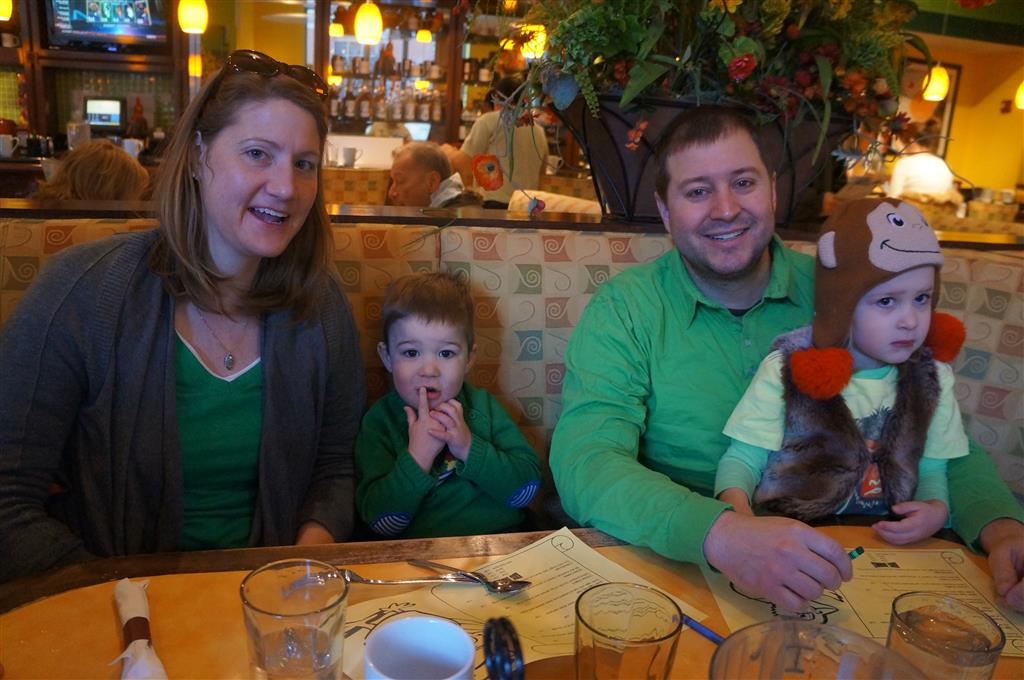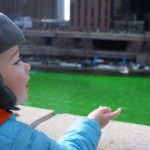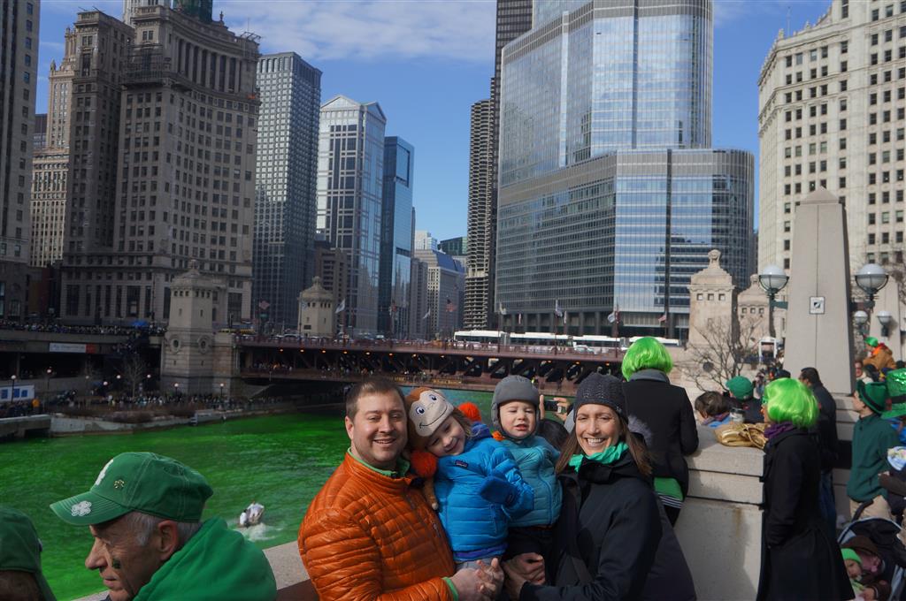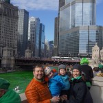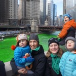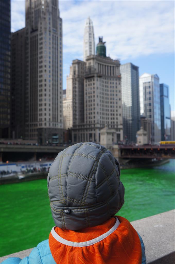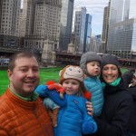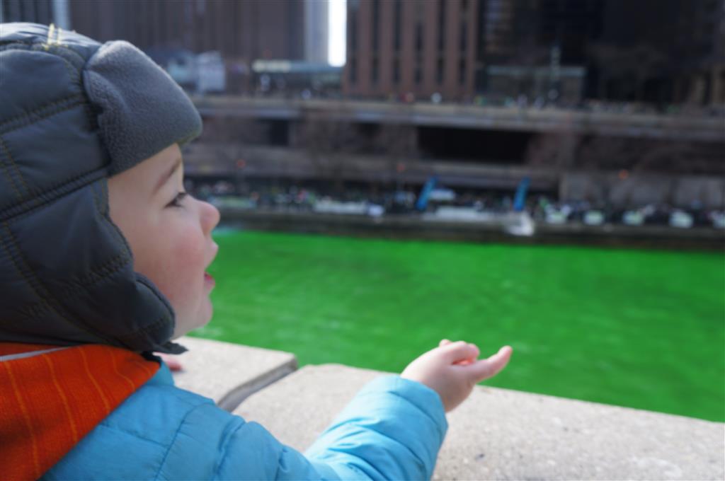 The whole family continued our Chicago tradition of visiting the dyeing of the river green this year. Henry and Eleanor were moderately impressed by the river, and more impressed by the police boat that drove by with its lights flashing. We had our traditional brunch out before hand, and then were stroller free for the walk to the river for the first time! It was a bit cold, but we had a fun time, and both kids loved to run around in the plaza a bit before heading home.