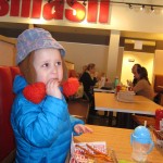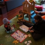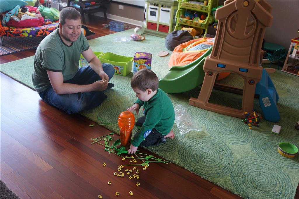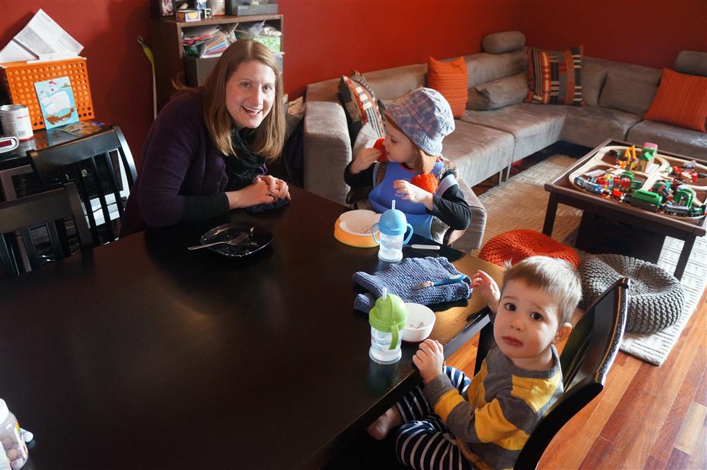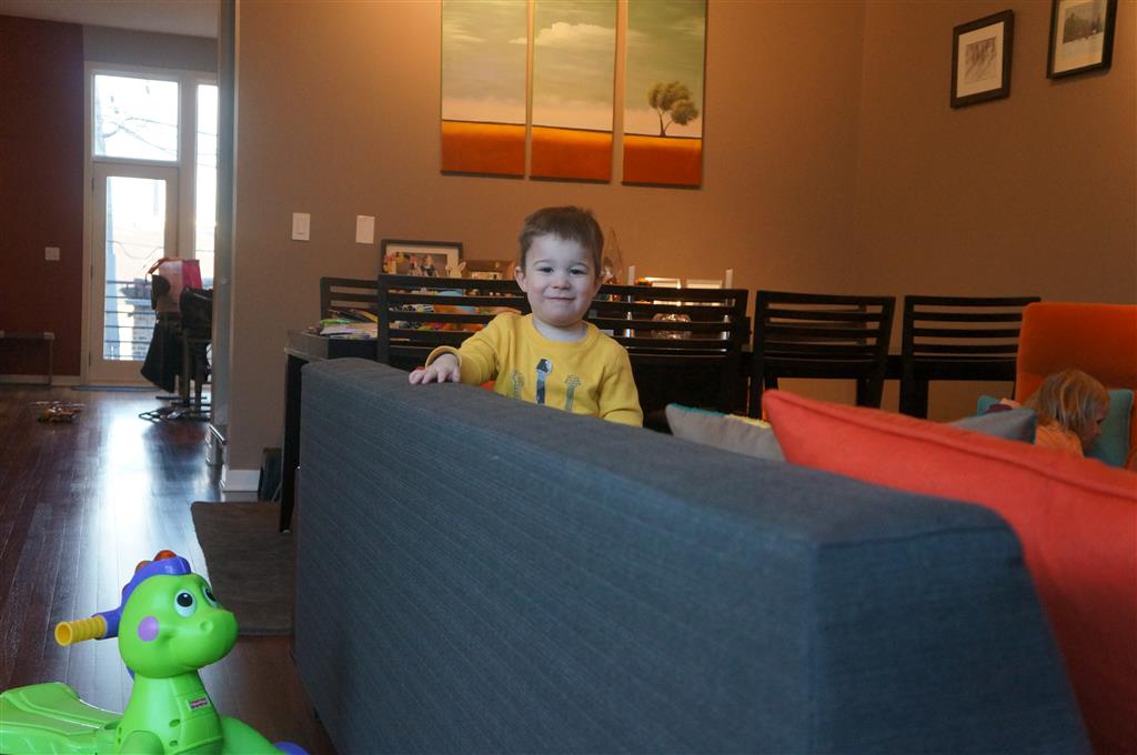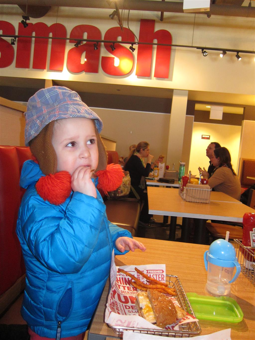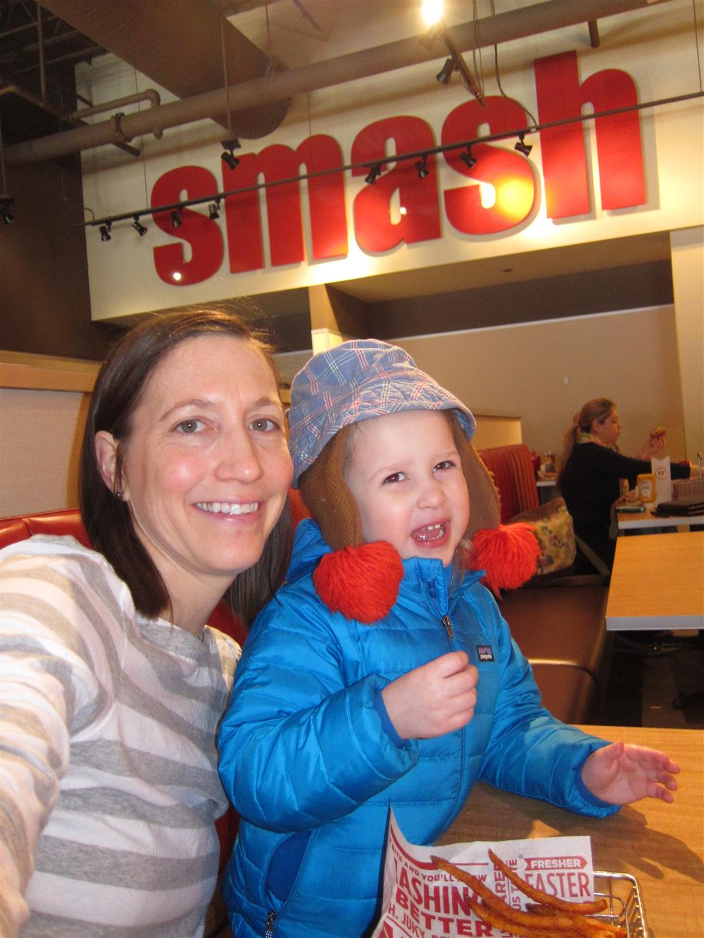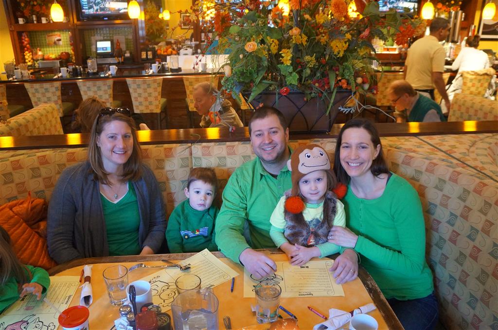 The whole family continued our Chicago tradition of visiting the dyeing of the river green this year. Henry and Eleanor were moderately impressed by the river, and more impressed by the police boat that drove by with its lights flashing. We had our traditional brunch out before hand, and then were stroller free for the walk to the river for the first time! It was a bit cold, but we had a fun time, and both kids loved to run around in the plaza a bit before heading home.