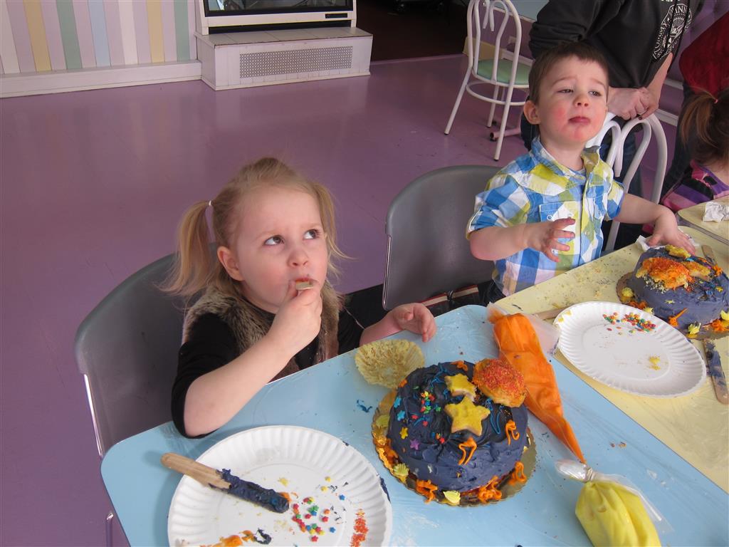 Another fun activity this week was a cake decorating class on Monday. Both Eleanor and Henry got to go and decorate a cake like space! They mixed some dark icing, and added stars and a sun. Mom had to help a few places, but they both had a good time and really enjoyed testing the ingredients along the way :) Eleanor had some awesome days at school this week, and her teacher declared Friday her “best day ever” in terms of engagement, participation and interaction with her peers. Eleanor of course offered no insight as to what she enjoyed most this week, but hopefully we will see more video snapshots from school with Eleanor participating and less with her giving her trademark “blank stare”.