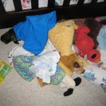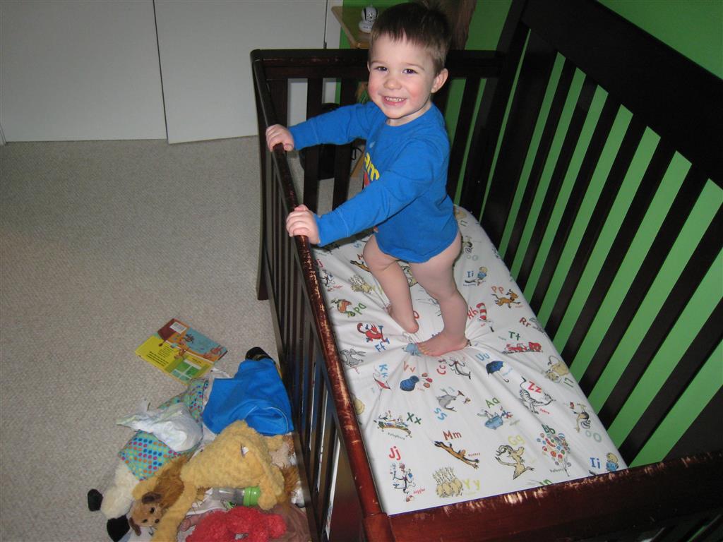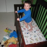 Henry figured out how to take his diaper off during nap this week (picture not included due to indecent exposure) which he tossed out of his crib along with his pants and stuffed friends. Thankfully, Mom came in before nature called.