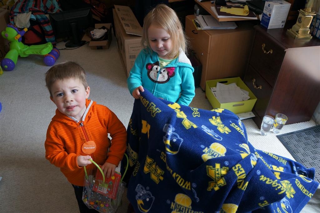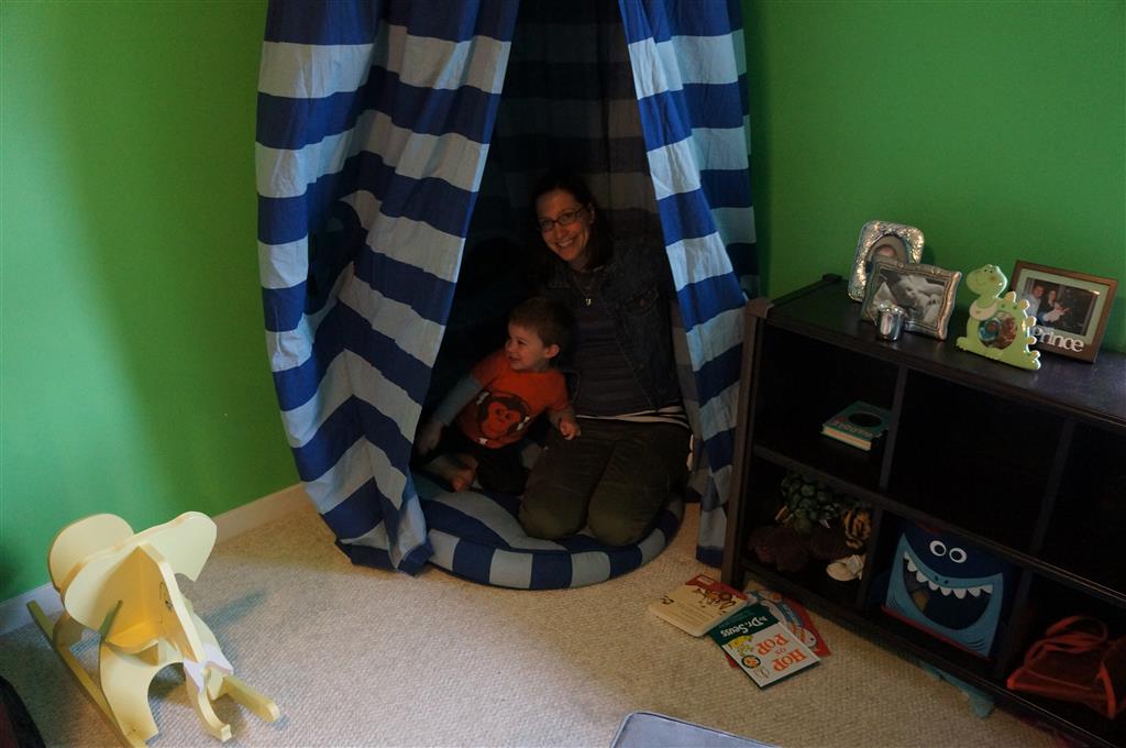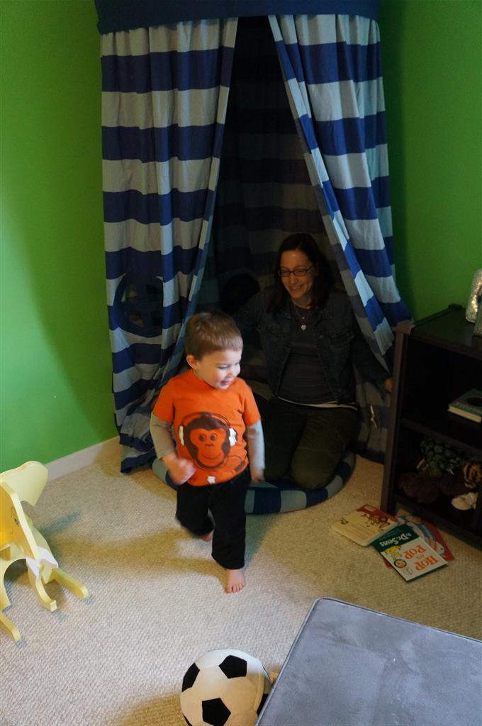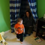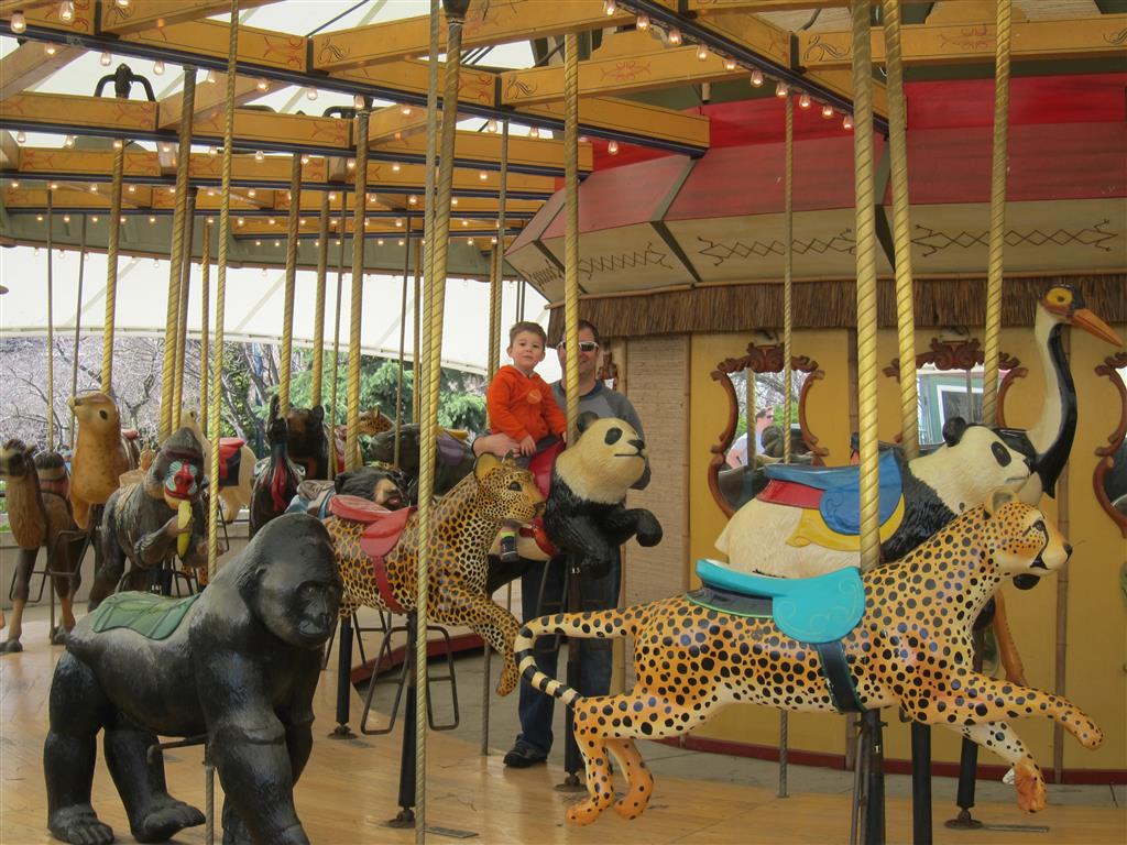 We had quite the busy weekend filled with fun. On Saturday we went to the zoo for primate day – as usual though the carousel was the big hit. Henry rode on the zebra once and the panda once, which is notable because we have been telling him for the last few weeks that he was going to start school in the zebra class just like Eleanor did, but found out this week that he is instead going to start in the panda class for about a month before moving to the zebra class. Eleanor rode on a monkey both times. When we got home we gave Eleanor and Henry a new bike – but neither was particularly excited about it and I couldn’t get either to ride it. Oh well, hopefully it will become a favorite this summer. Henry was also excited about the tent which we moved into his room to make room for Eleanor’s new beds.