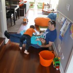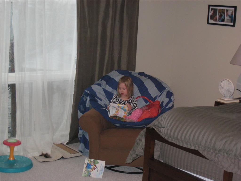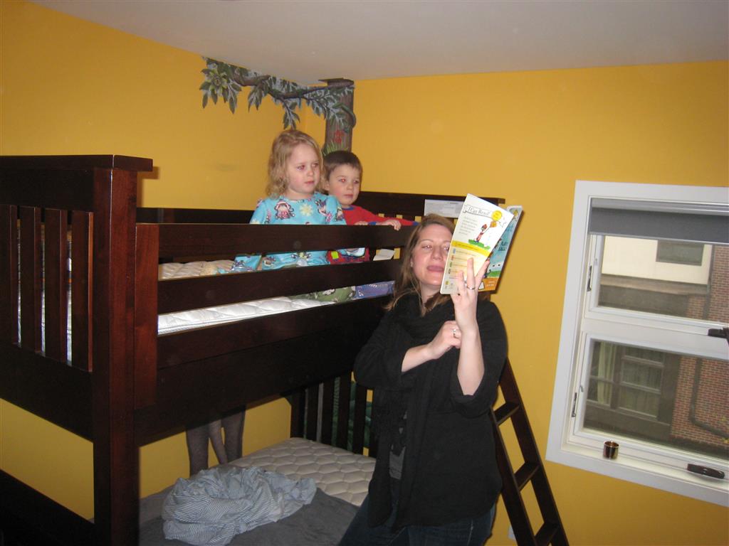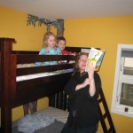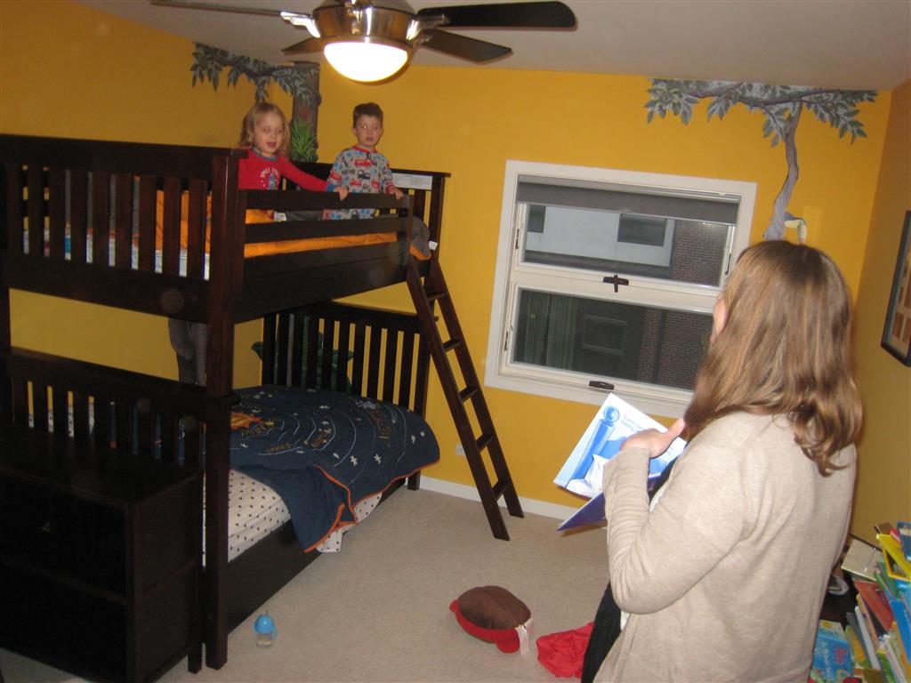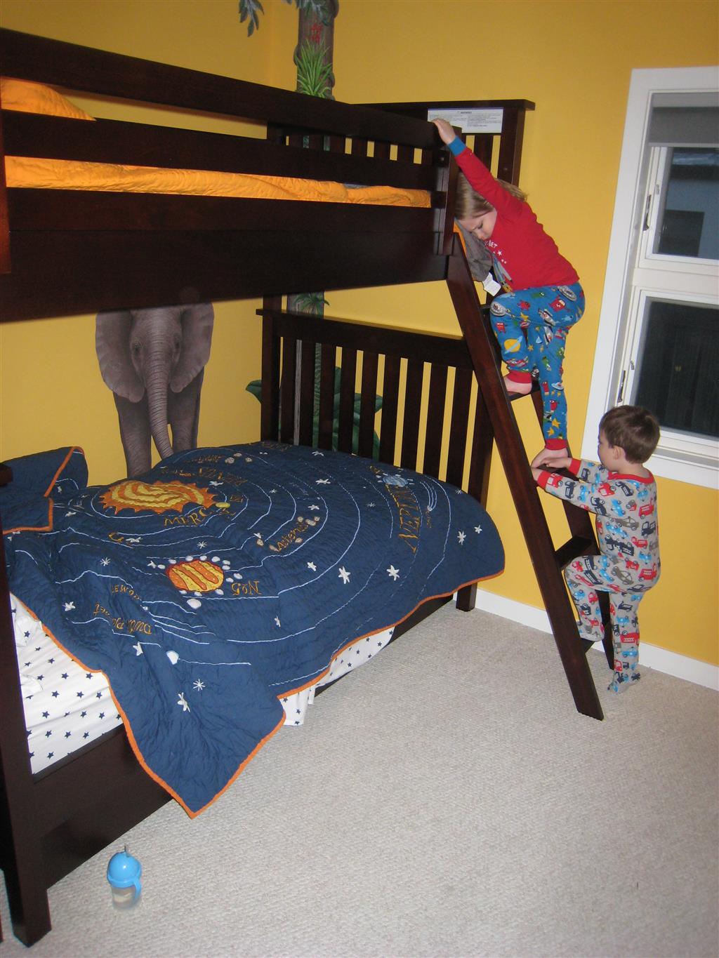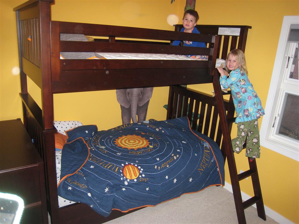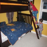 Eleanor was super excited this week when her bunk beds arrived. She has been doing great sleeping in them so far, and Henry asks at least once a day if he can sleep on the top bunk. They have taken to reading their goodnight stories in the top bunk – when Lala is over she stands on the floor and reads to them like a teacher in front of her students. Dad thought that looked like a lot of work, so he just climbed up into the bunk with them. On Friday night Lala spent the night and had a sleepover in Eleanor’s room, she reports that the bed is pretty comfortable! Henry’s big event this week was going on his orientation visit for preschool. Mom stayed the whole time, but he got to meet his teachers and participate with the rest of the class. He was very excited to do all the things he has seen Eleanor do, like hit the playground and use the scooters in the gym. Next week he starts for real!