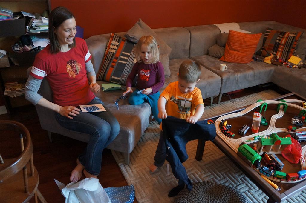 Henry had his first day of preschool, but our plan of dropping Eleanor off first so Henry could see how brave she is was derailed because Eleanor stayed home from school with a skin rash. Henry was a bit sad at drop off, but Mom pointed out a dump truck that we wanted to play with, and everything went well after that. His teachers reported that he had a great first day.
