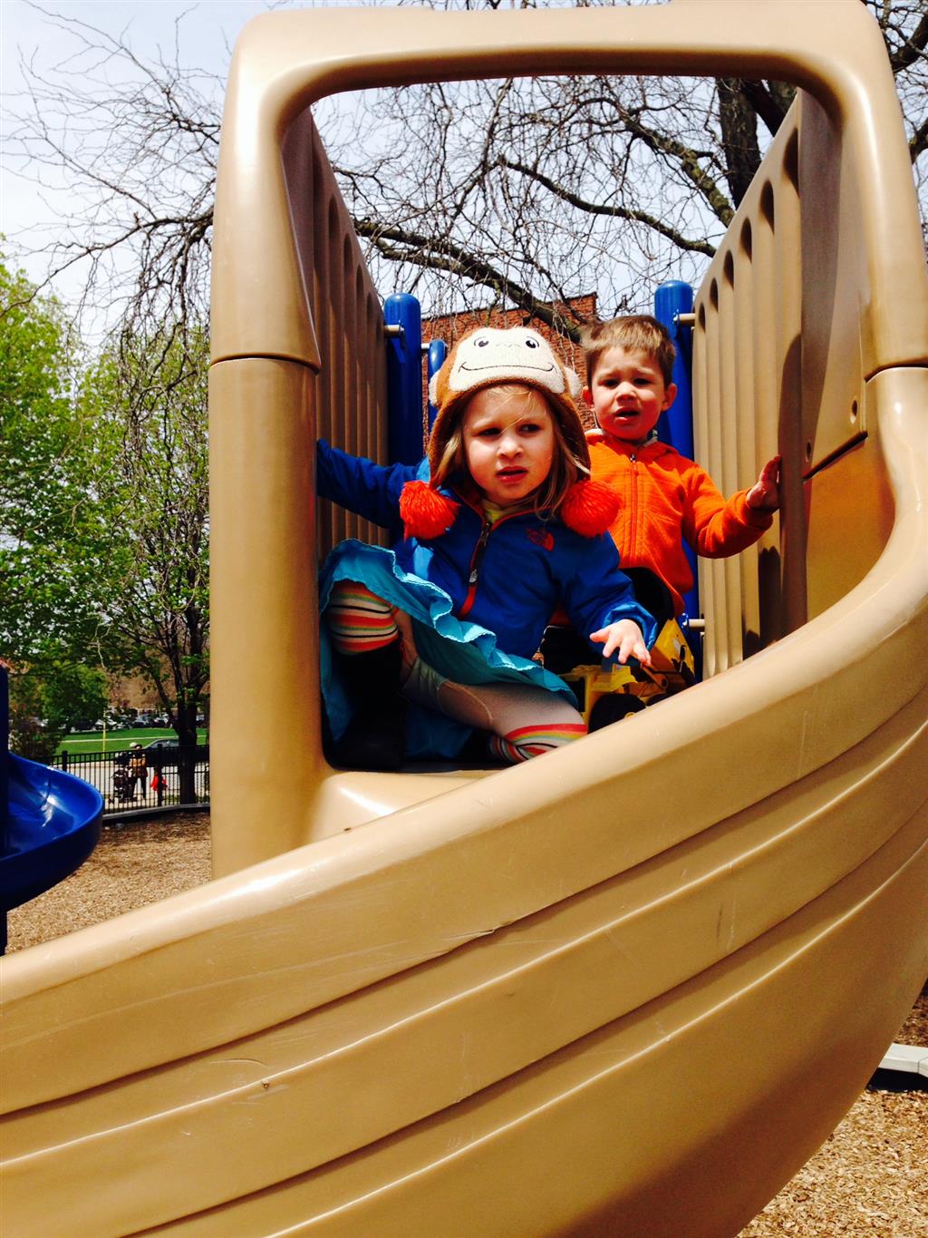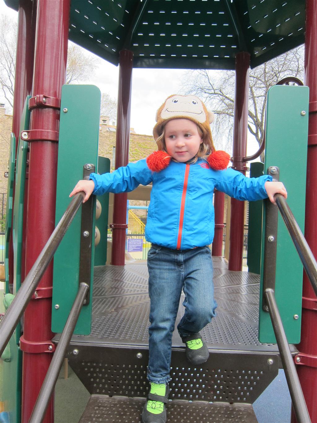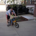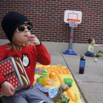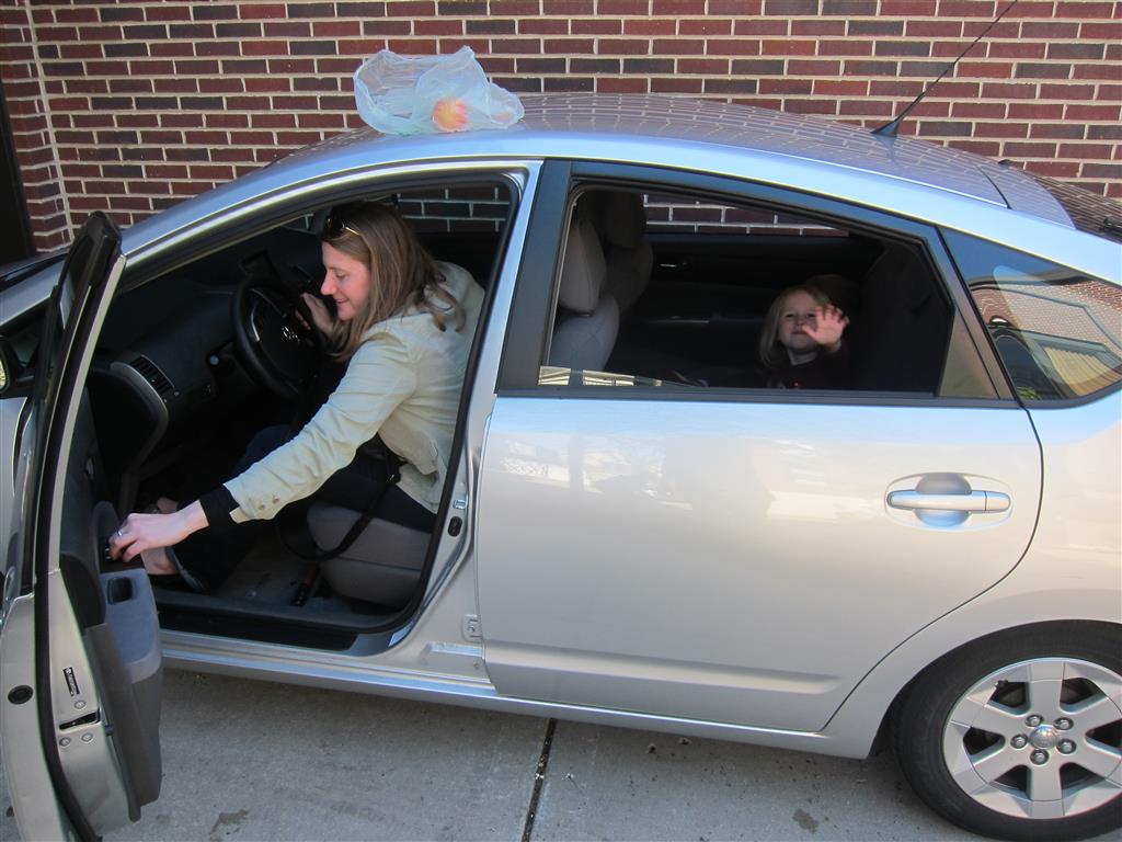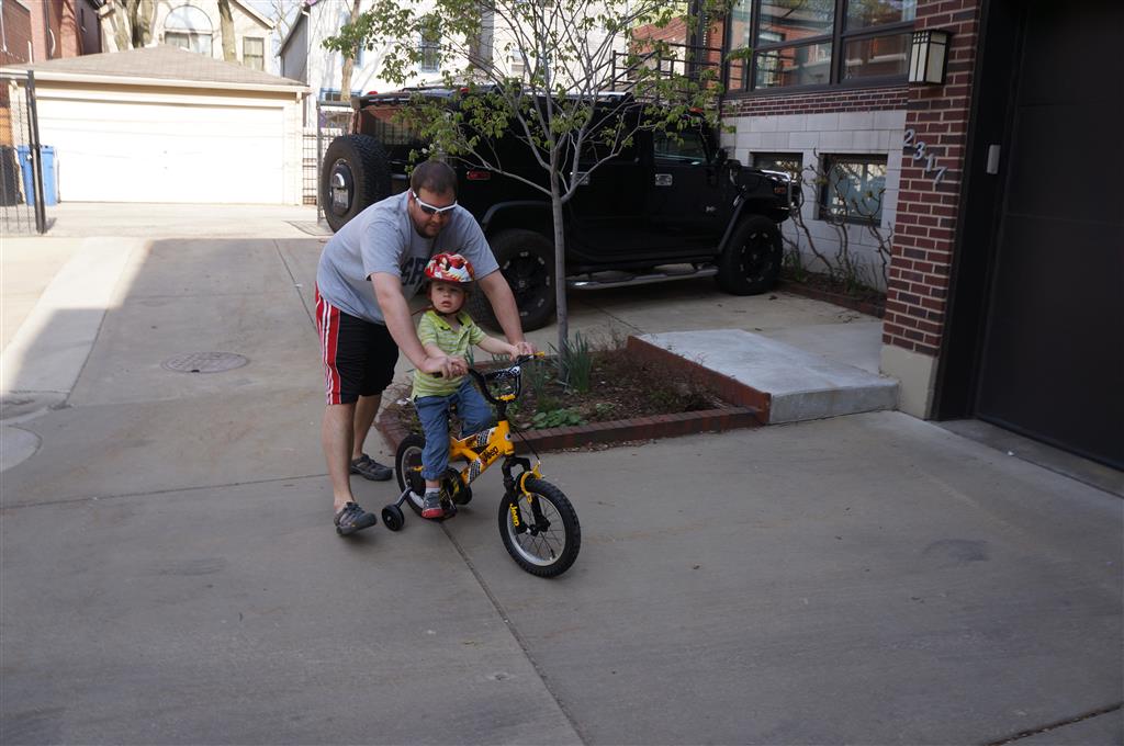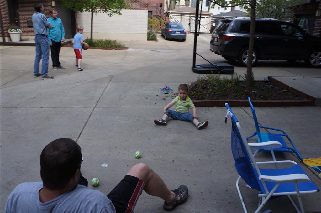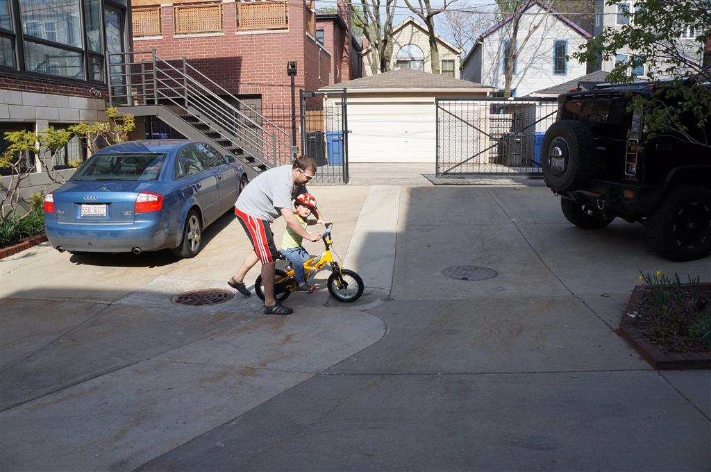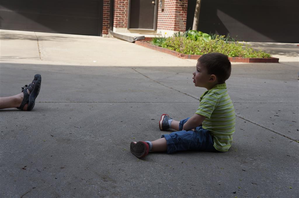 We had lots of fun outdoor time this week as the summer weather rolled in, although you wouldn’t know it from Eleanor’s outfits. On Saturday she wore a sweater and my ski cap for our whole driveway picnic. I finally got Henry on the bike for a quick cycle or two around the driveway, but no luck with Eleanor yet. I even rigged up a bungee cord seatbelt so Monkey could ride with her, but she ended up putting that to use on the other vehicles.
