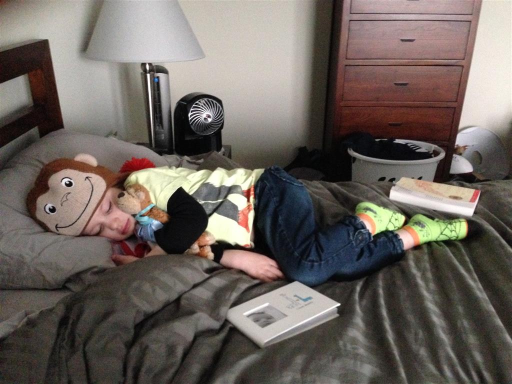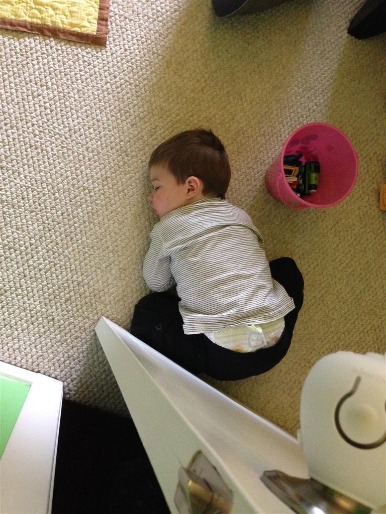 Henry is still getting used to his toddler bed, and had a bit of a fit during nap time. Mom had to put the child lock on the door – and when she went in to check in on him – she couldn’t get the door open. Poor guy had fallen asleep against the door. He took nap part 2 in Mama’s arms.