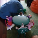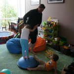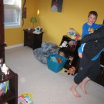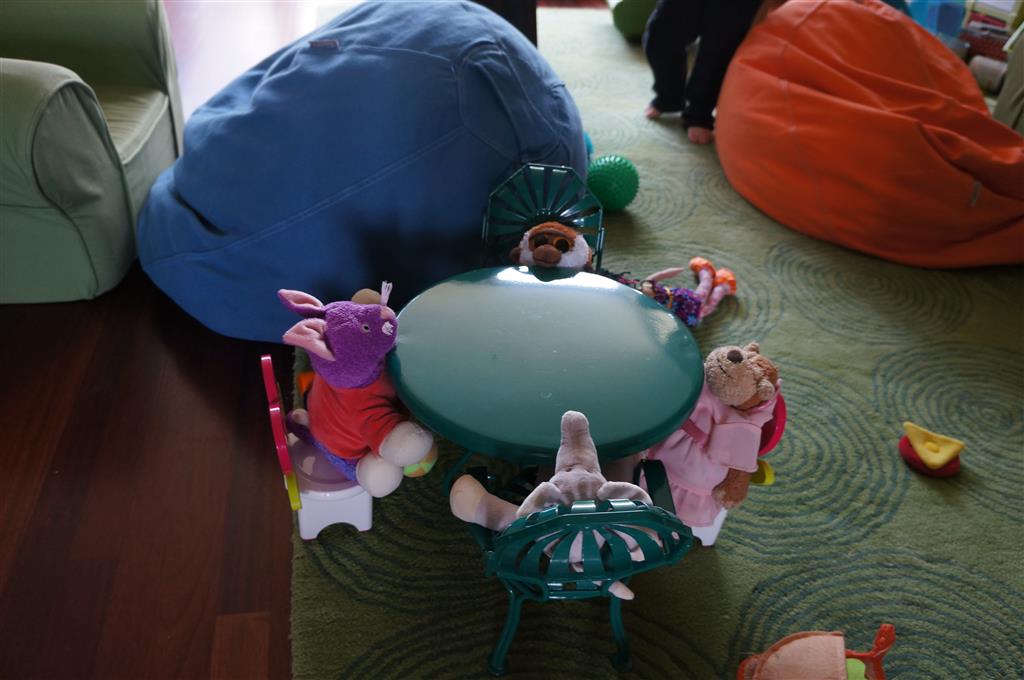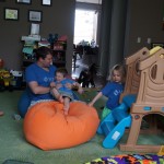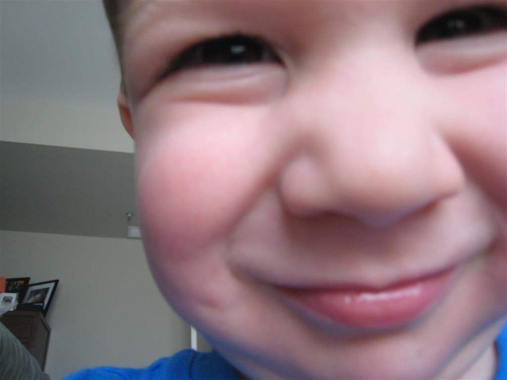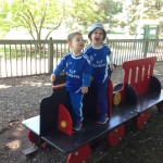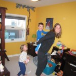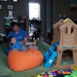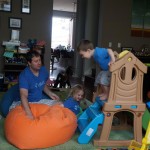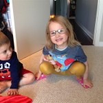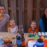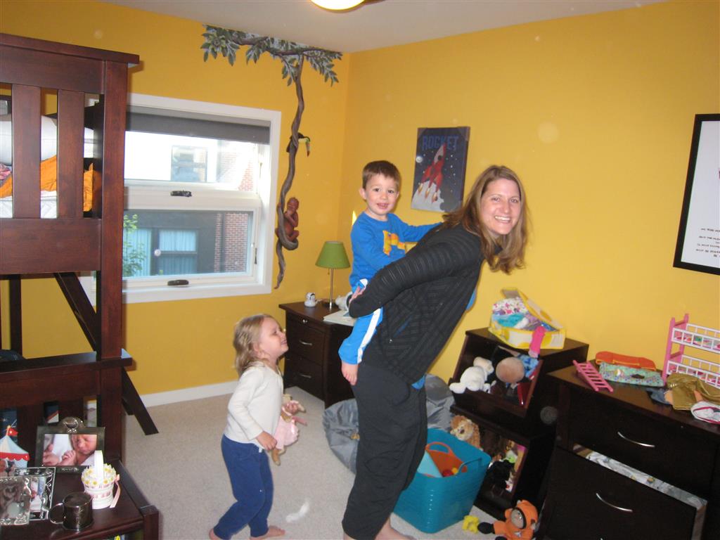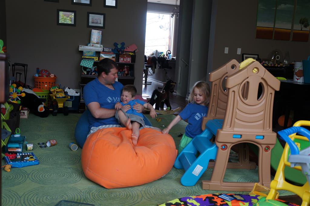 Mom and Dad coincidentally wore the same t-shirt on Sunday, so we dug up some matching blue ones for the kids and had a matching family picture. Too bad Monkey and Thomas the Train didn’t have t-shirts too!