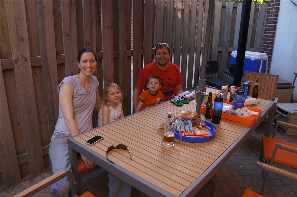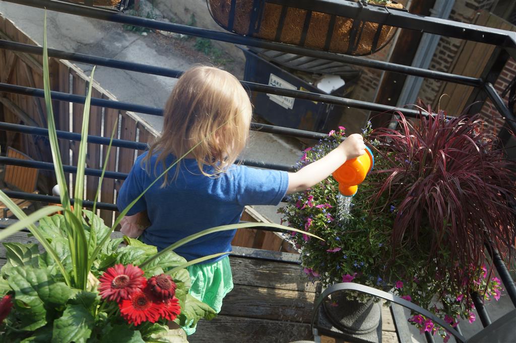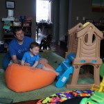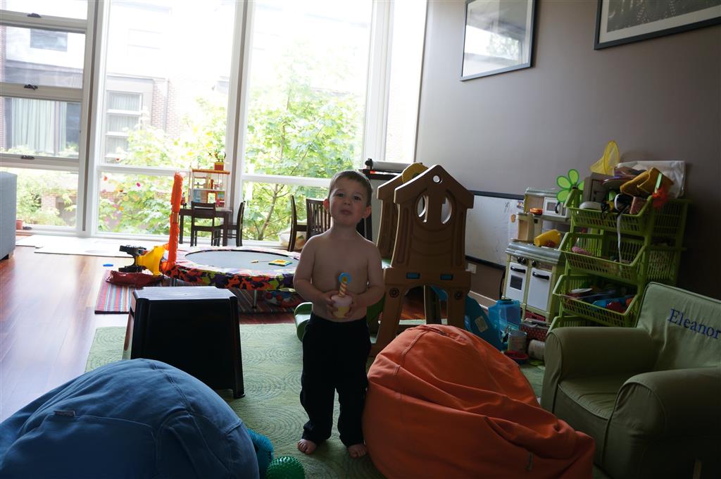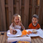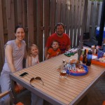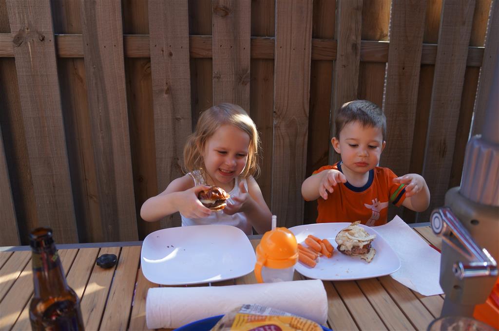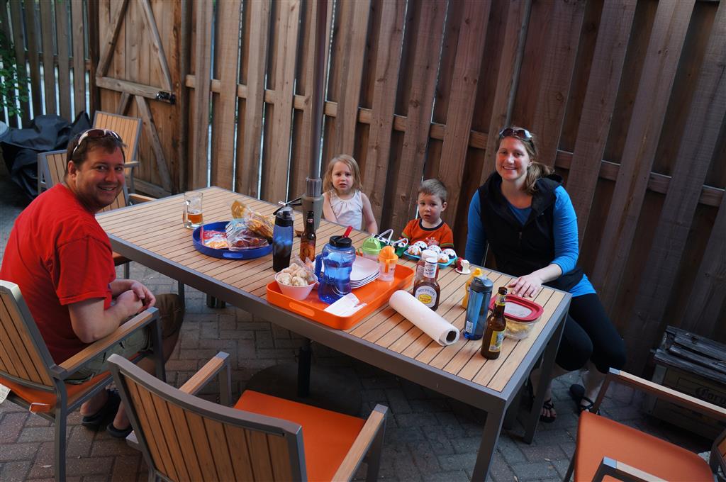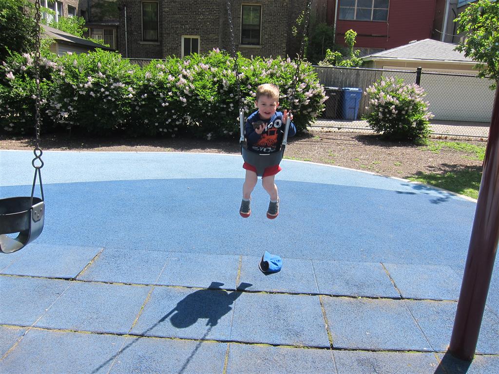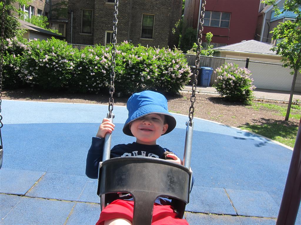 Henry and Eleanor welcomed in the month of June with a cookout in our back yard. Eleanor again said that eating her burger was her favorite part of the day, so Dad’s thinking there will be lots of burgers on the back patio this summer! Henry had a blast on Friday riding the train downtown with Mom and Dad. He brought his toy CTA train with him, and his favorite part was where the Red Line goes underground. We tried to take the kids to the park on Saturday afternoon, but they both fell asleep in the stroller on the way there, so Mom, Dad and Lala just sat on the grass at the park and talked while the kids slept.