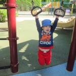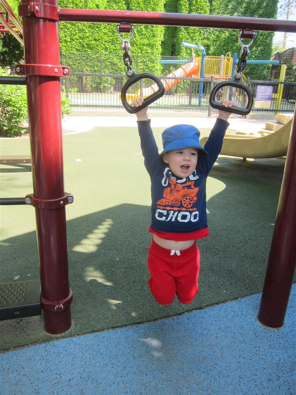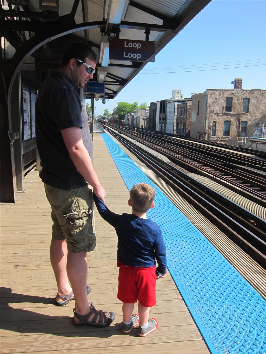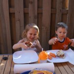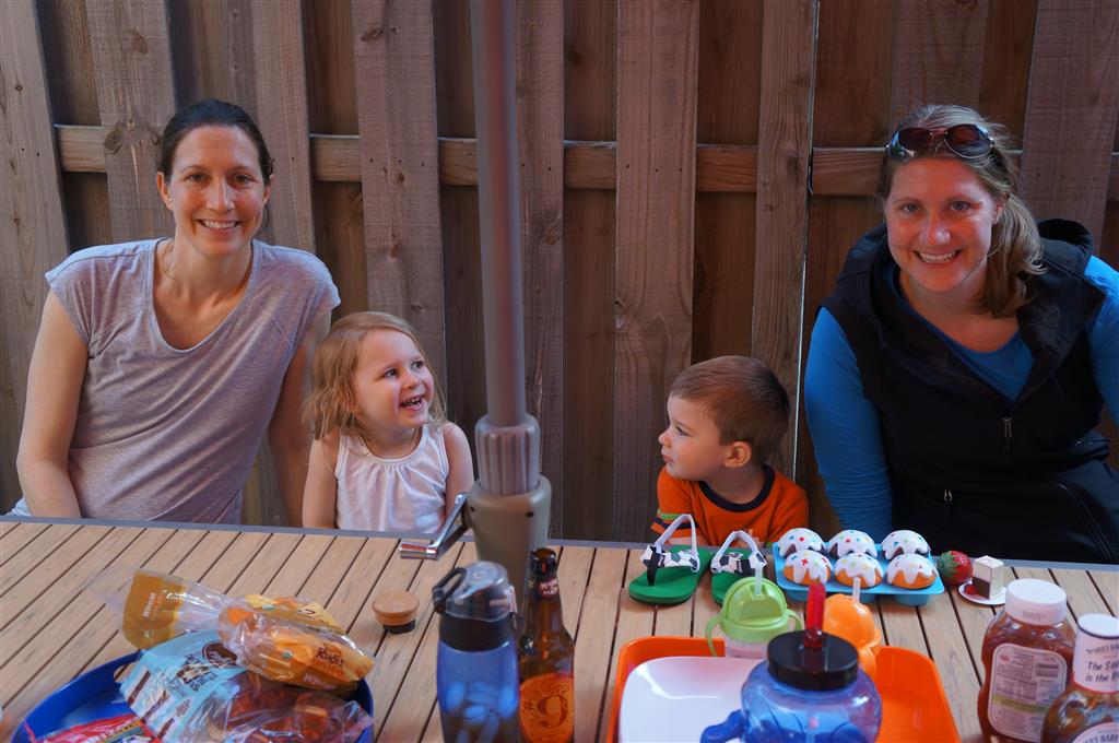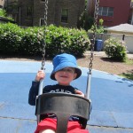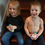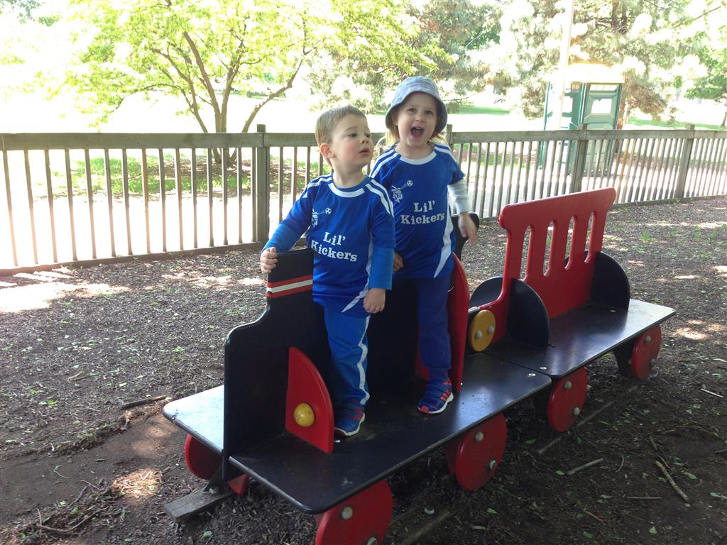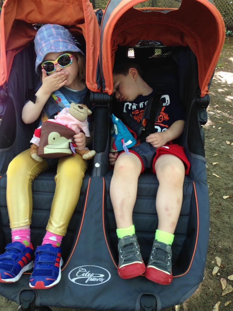 Henry and Eleanor welcomed in the month of June with a cookout in our back yard. Eleanor again said that eating her burger was her favorite part of the day, so Dad’s thinking there will be lots of burgers on the back patio this summer! Henry had a blast on Friday riding the train downtown with Mom and Dad. He brought his toy CTA train with him, and his favorite part was where the Red Line goes underground. We tried to take the kids to the park on Saturday afternoon, but they both fell asleep in the stroller on the way there, so Mom, Dad and Lala just sat on the grass at the park and talked while the kids slept.