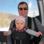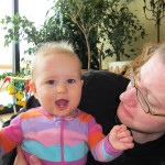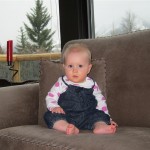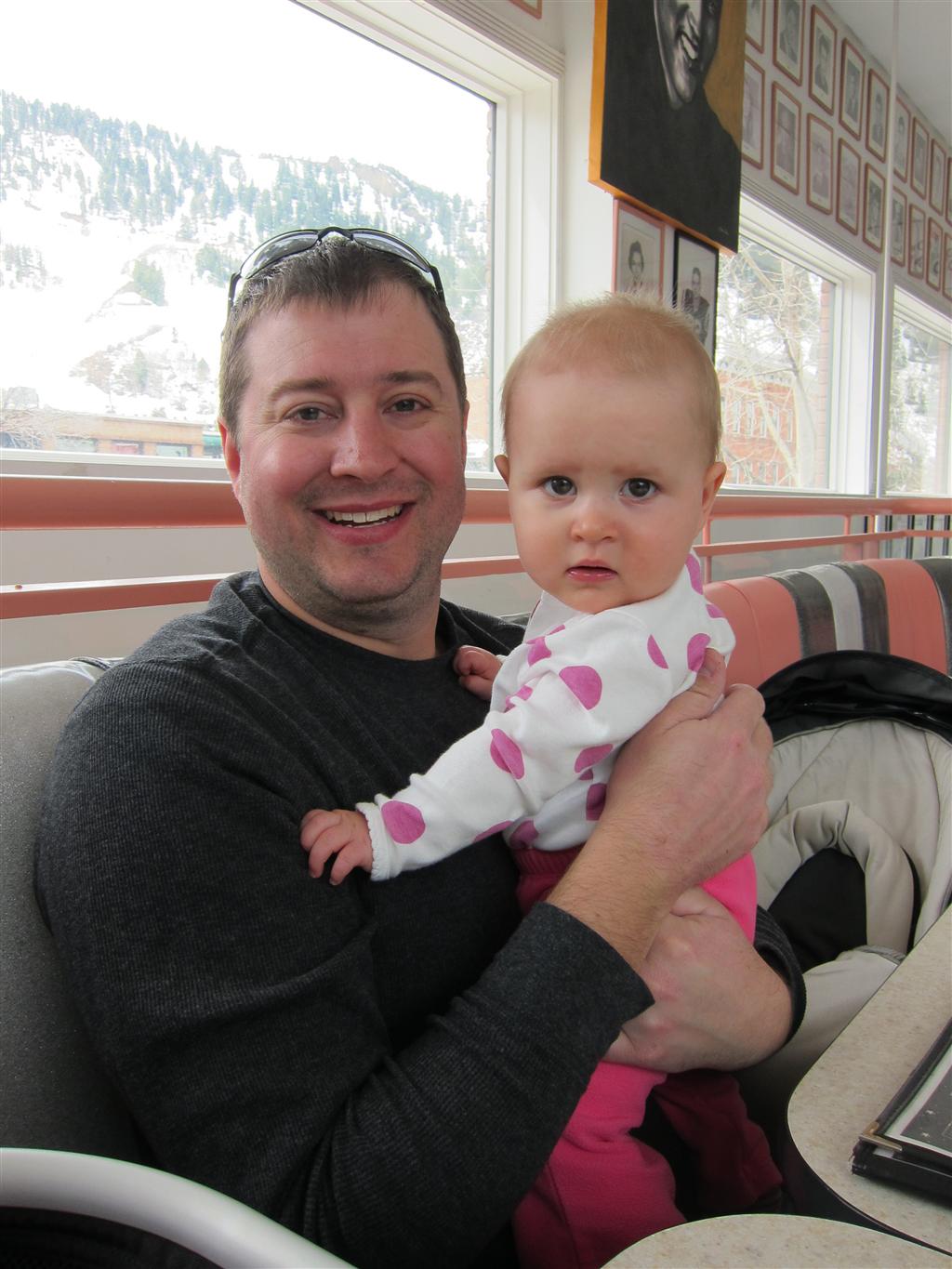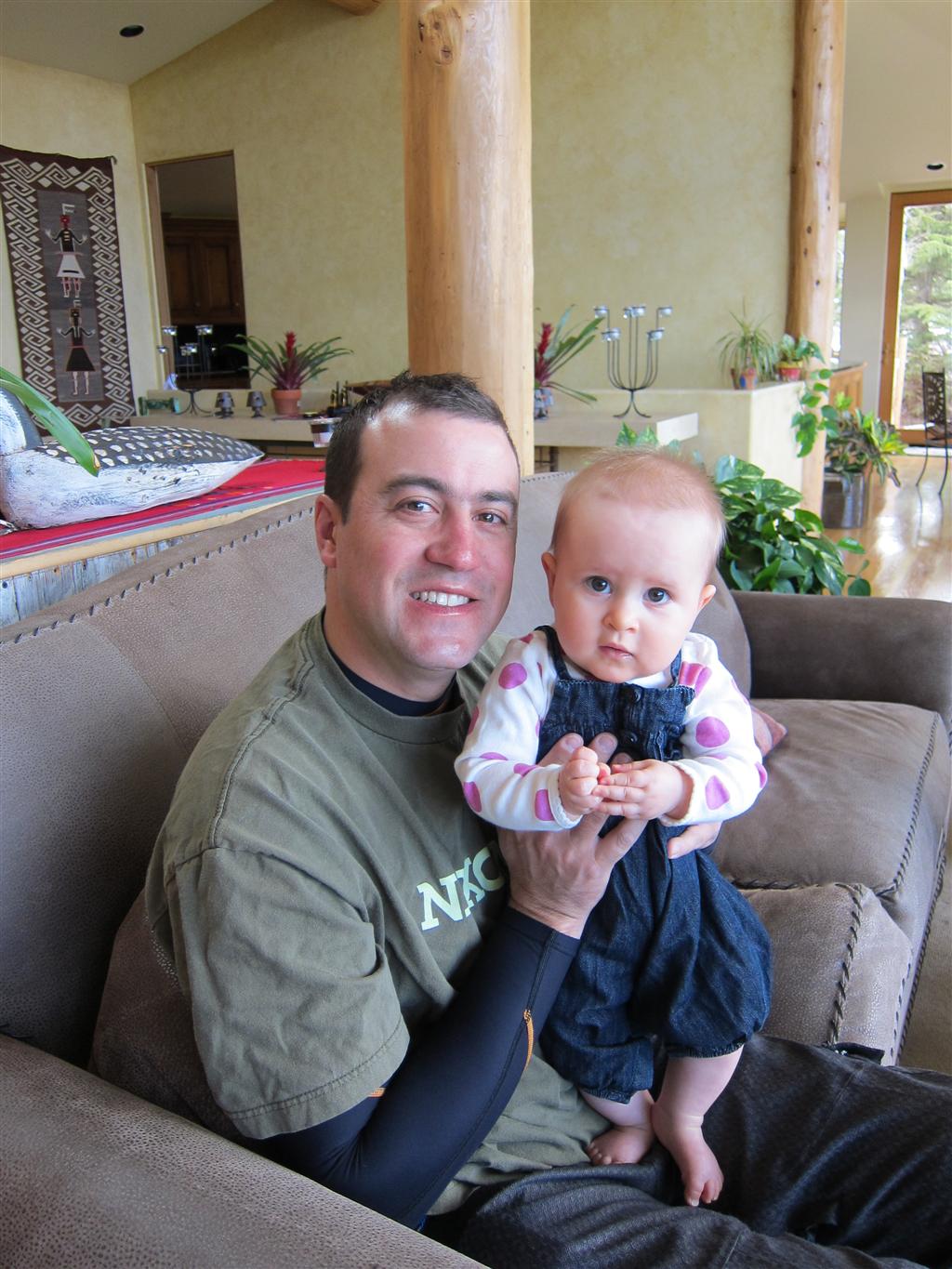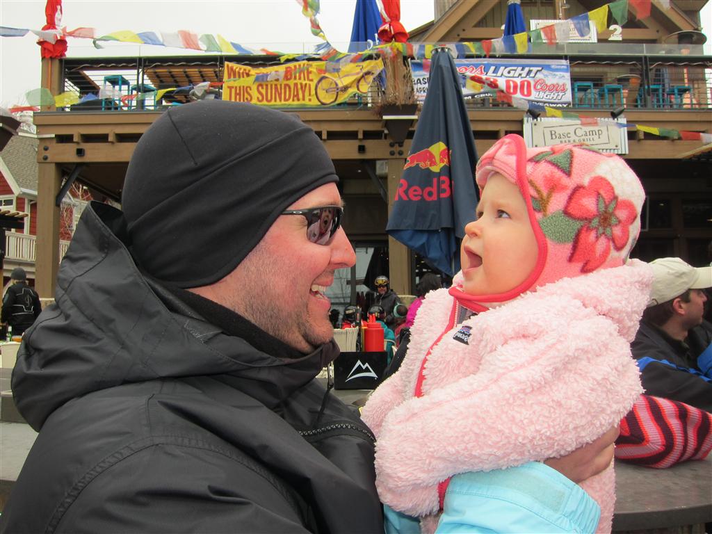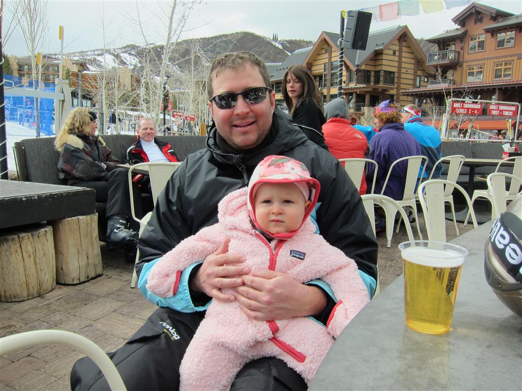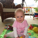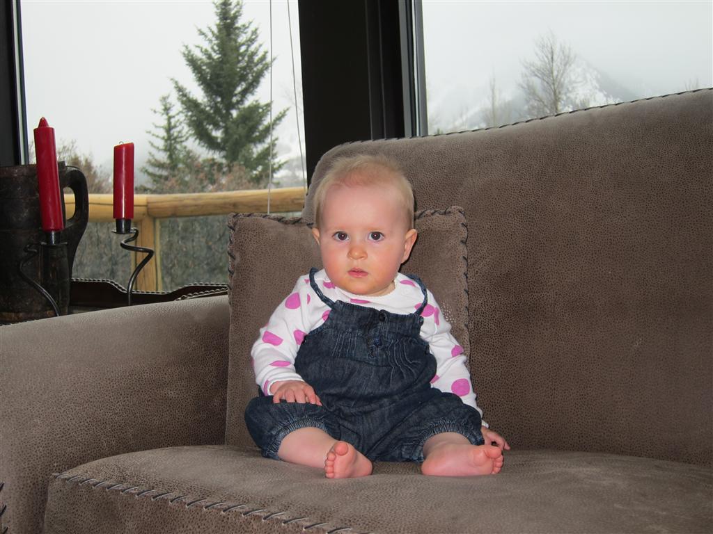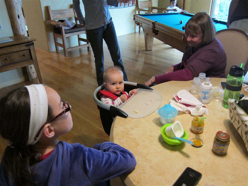 Eleanor turned eight months this week while in Aspen. Unfortunately, this means that the monthly family picture with Zapa will have to be delayed a few days (as Zapa doesn’t fly). Now that she is eight months old, Eleanor is doing a lot of new things. So many, in fact, that it was a bit hard to keep track of them all this week – so I made a little list below. Most significant is probably the first forward motion while “army” crawling – however Uncle B is the only witness to this event, so it is under dispute with Mama. Either way, Eleanor is definitely making progress towards a full fledged crawl. She definitely makes progress via multiple roll overs and “scoots”, inches backwards while on her tummy, and even lifts off the ground while on her back in a “crab walk” like motion. I’m pretty sure that she will figure out how to use her knees for propulsion very soon. Also very exciting are some new syllables that Eleanor can say, Da-Da-Da and Ga-Ga-Ga. She is so good at Da-Da now that all I have to do is say it once and she will repeat it back to me. I tried to convice Amy that this was her first word (Dada) but I was vetoed. Apparently it isn’t clear that Eleanor actually means Dada when she says Da-Da-Da. A fair point, and one that I successfully used when Eleanor used to say Uuummmmmaaaa Uummmmaaaa when she was a few months old. It sounded a lot like Mama, but both Amy and I agreed that it didn’t mean Mama, especially since Eleanor mostly said it while she was upset.