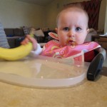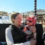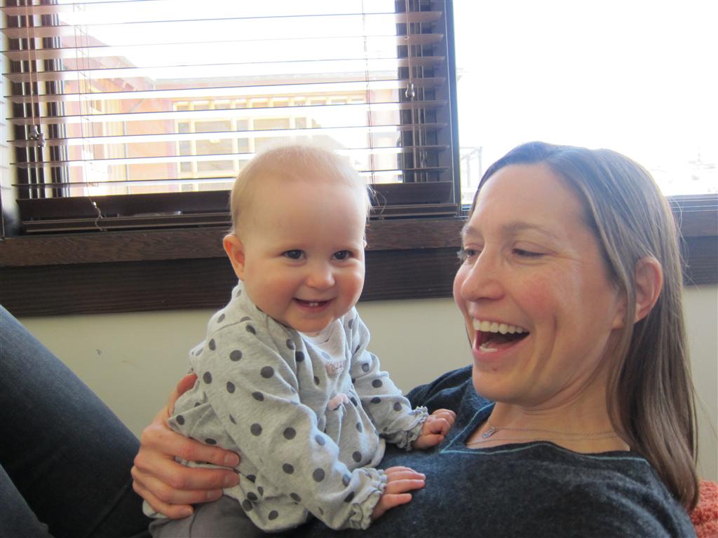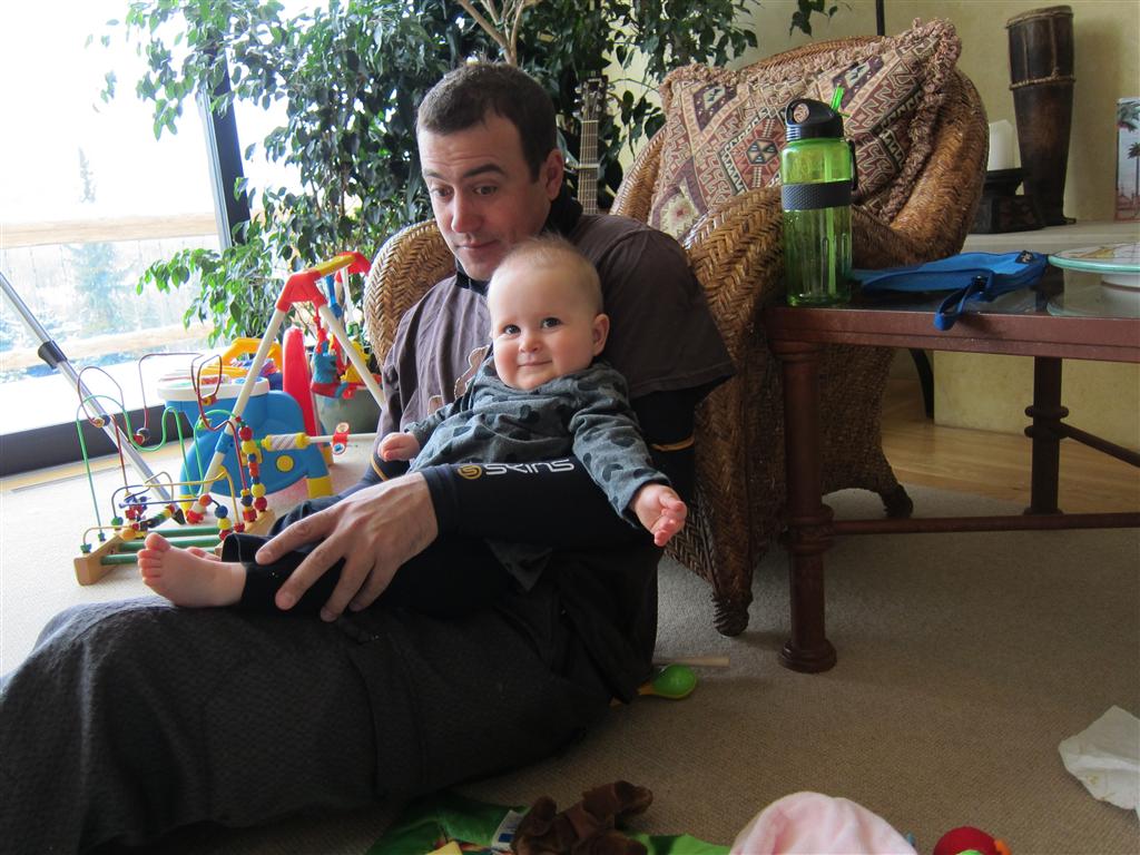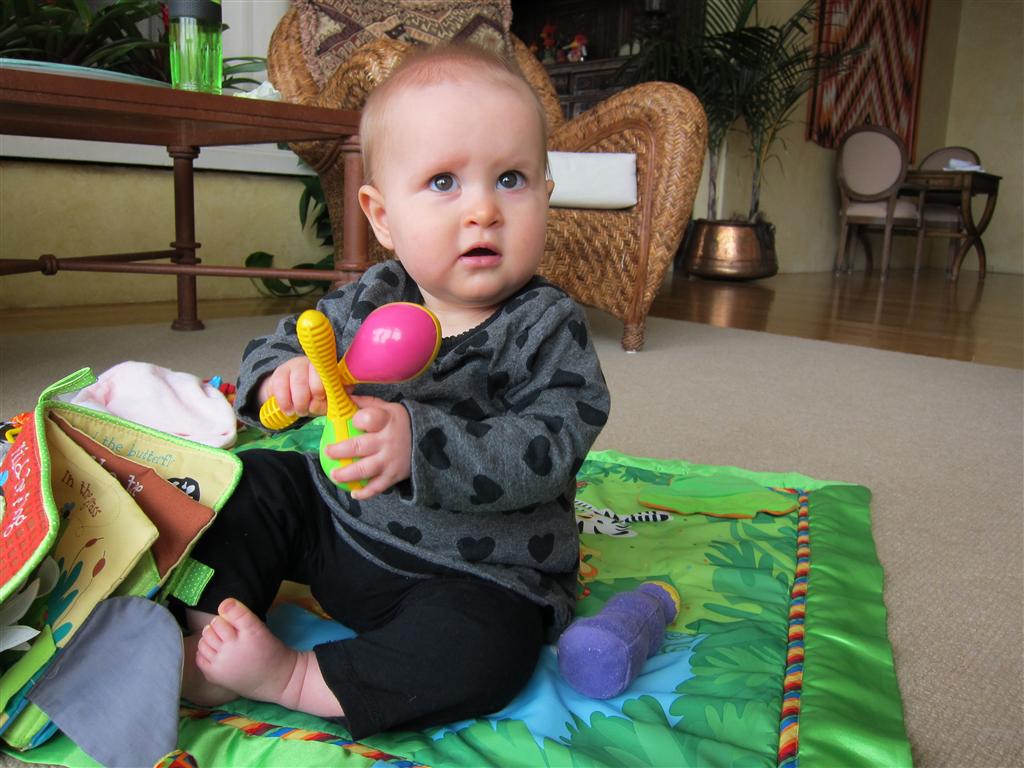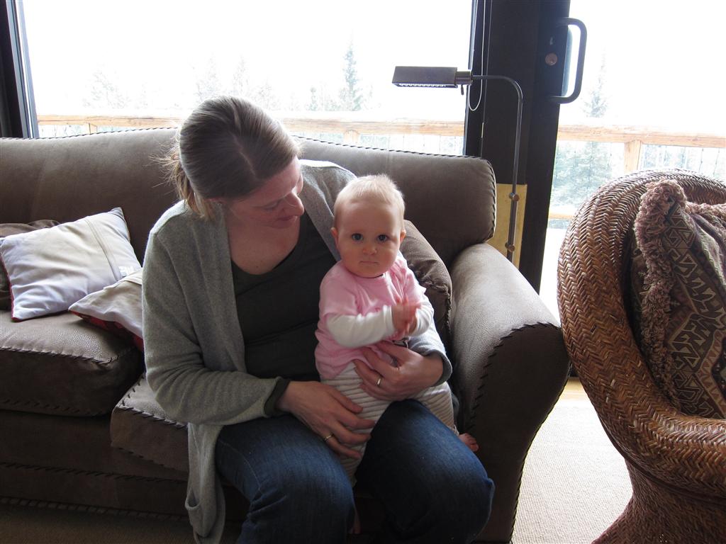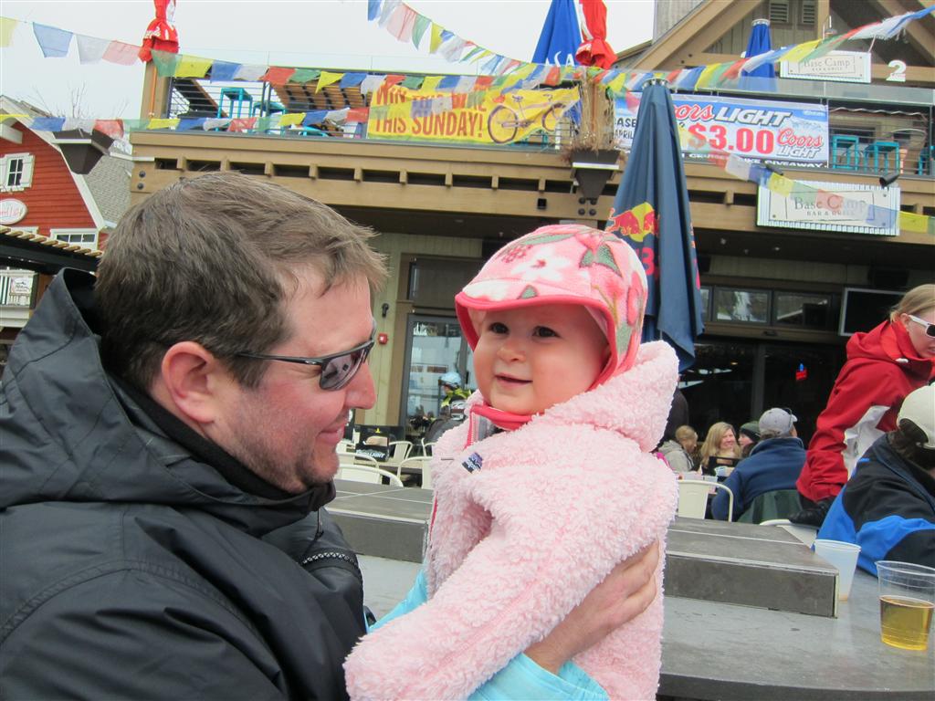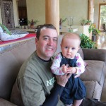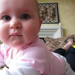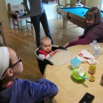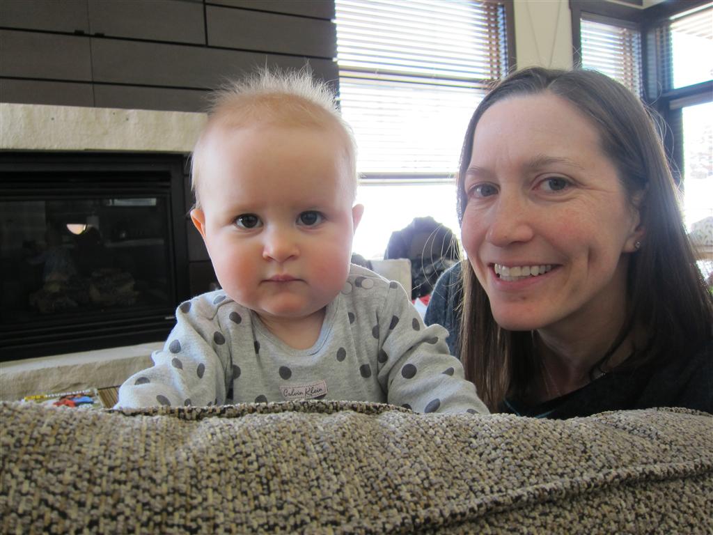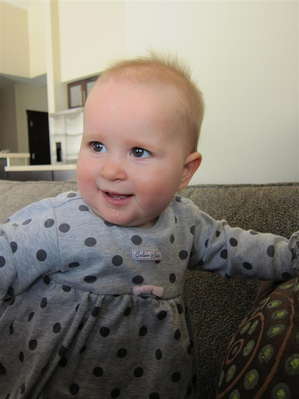 Eleanor turned eight months this week while in Aspen. Unfortunately, this means that the monthly family picture with Zapa will have to be delayed a few days (as Zapa doesn’t fly). Now that she is eight months old, Eleanor is doing a lot of new things. So many, in fact, that it was a bit hard to keep track of them all this week – so I made a little list below. Most significant is probably the first forward motion while “army” crawling – however Uncle B is the only witness to this event, so it is under dispute with Mama. Either way, Eleanor is definitely making progress towards a full fledged crawl. She definitely makes progress via multiple roll overs and “scoots”, inches backwards while on her tummy, and even lifts off the ground while on her back in a “crab walk” like motion. I’m pretty sure that she will figure out how to use her knees for propulsion very soon. Also very exciting are some new syllables that Eleanor can say, Da-Da-Da and Ga-Ga-Ga. She is so good at Da-Da now that all I have to do is say it once and she will repeat it back to me. I tried to convice Amy that this was her first word (Dada) but I was vetoed. Apparently it isn’t clear that Eleanor actually means Dada when she says Da-Da-Da. A fair point, and one that I successfully used when Eleanor used to say Uuummmmmaaaa Uummmmaaaa when she was a few months old. It sounded a lot like Mama, but both Amy and I agreed that it didn’t mean Mama, especially since Eleanor mostly said it while she was upset.
