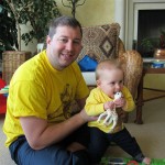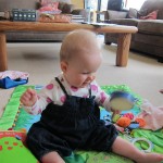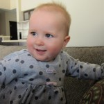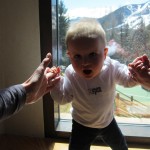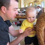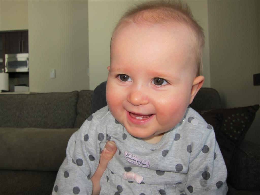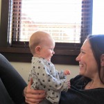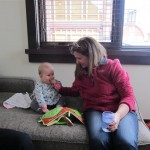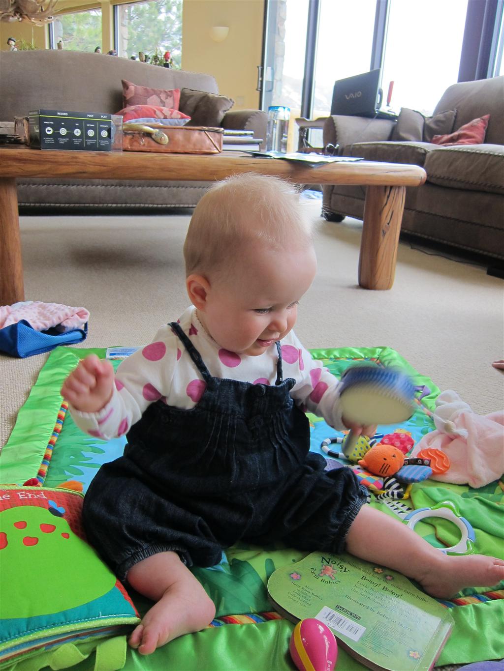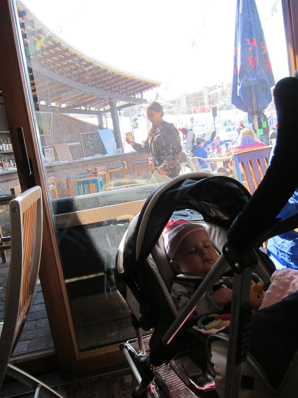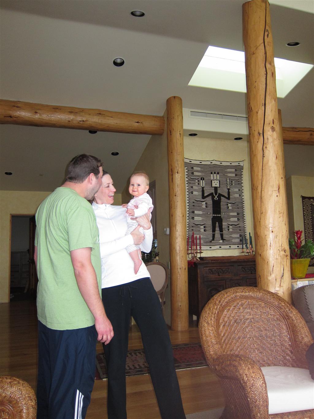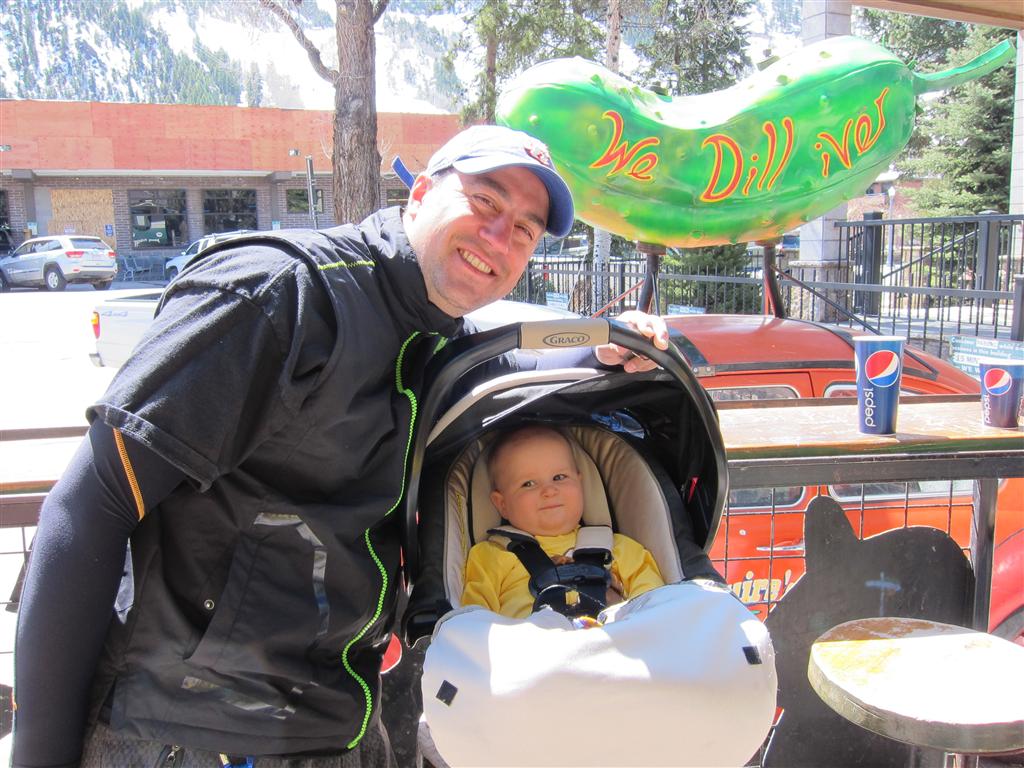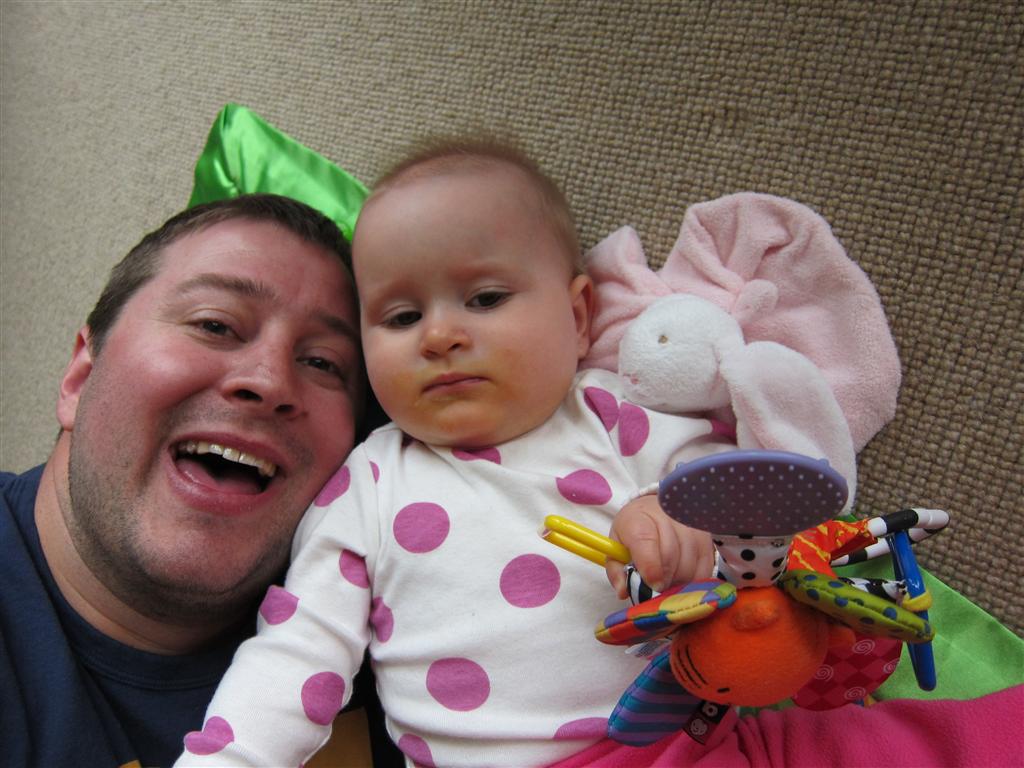 Eleanor turned eight months this week while in Aspen. Unfortunately, this means that the monthly family picture with Zapa will have to be delayed a few days (as Zapa doesn’t fly). Now that she is eight months old, Eleanor is doing a lot of new things. So many, in fact, that it was a bit hard to keep track of them all this week – so I made a little list below. Most significant is probably the first forward motion while “army” crawling – however Uncle B is the only witness to this event, so it is under dispute with Mama. Either way, Eleanor is definitely making progress towards a full fledged crawl. She definitely makes progress via multiple roll overs and “scoots”, inches backwards while on her tummy, and even lifts off the ground while on her back in a “crab walk” like motion. I’m pretty sure that she will figure out how to use her knees for propulsion very soon. Also very exciting are some new syllables that Eleanor can say, Da-Da-Da and Ga-Ga-Ga. She is so good at Da-Da now that all I have to do is say it once and she will repeat it back to me. I tried to convice Amy that this was her first word (Dada) but I was vetoed. Apparently it isn’t clear that Eleanor actually means Dada when she says Da-Da-Da. A fair point, and one that I successfully used when Eleanor used to say Uuummmmmaaaa Uummmmaaaa when she was a few months old. It sounded a lot like Mama, but both Amy and I agreed that it didn’t mean Mama, especially since Eleanor mostly said it while she was upset.