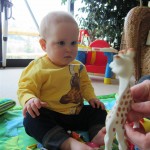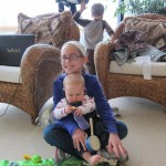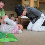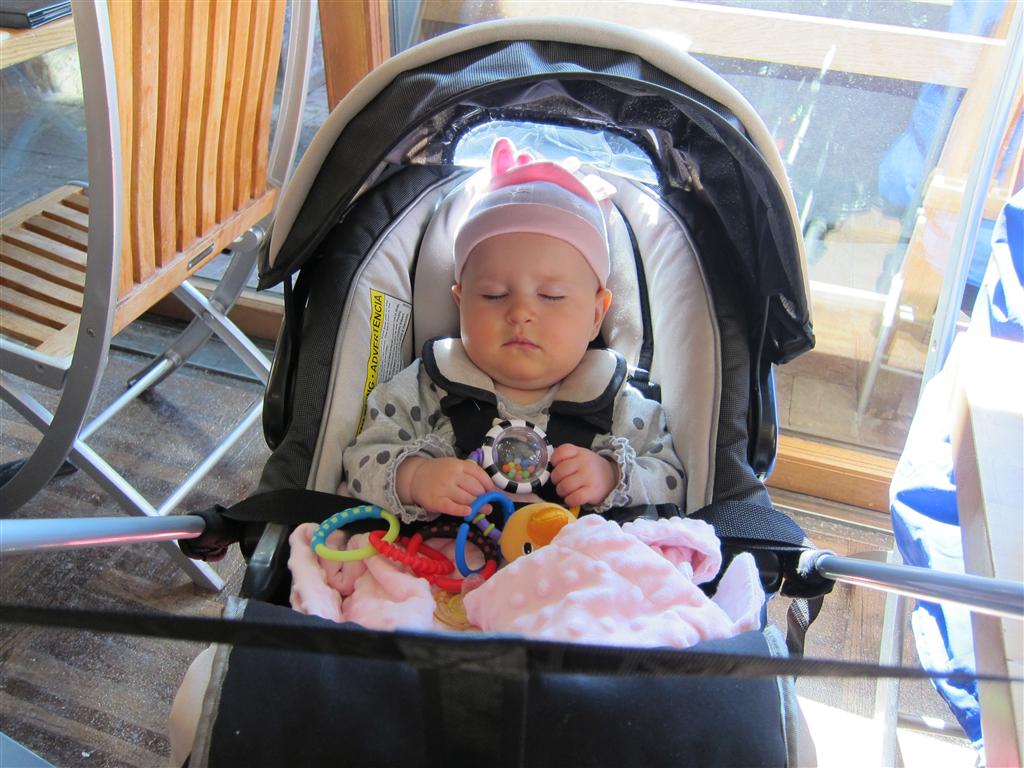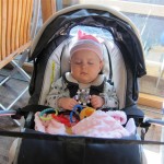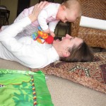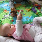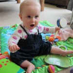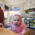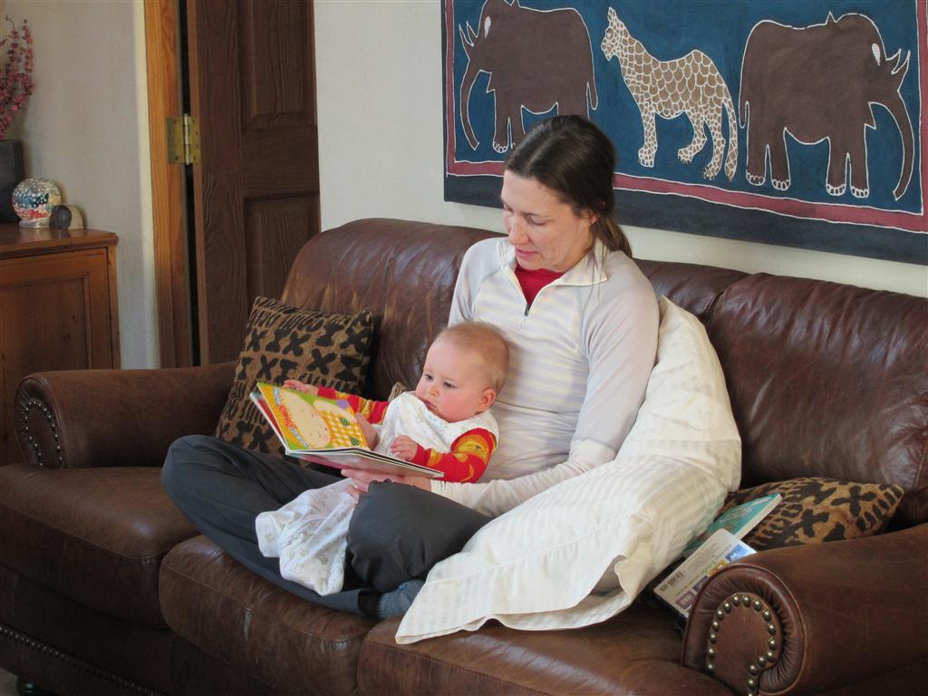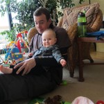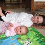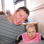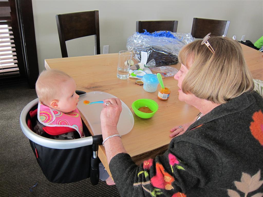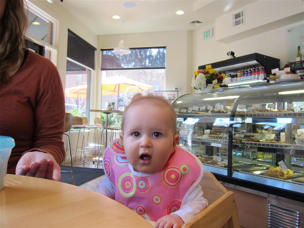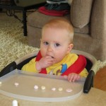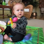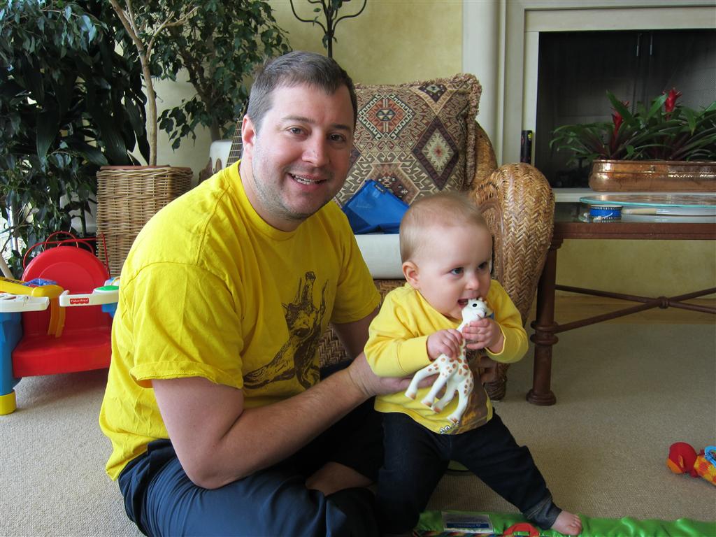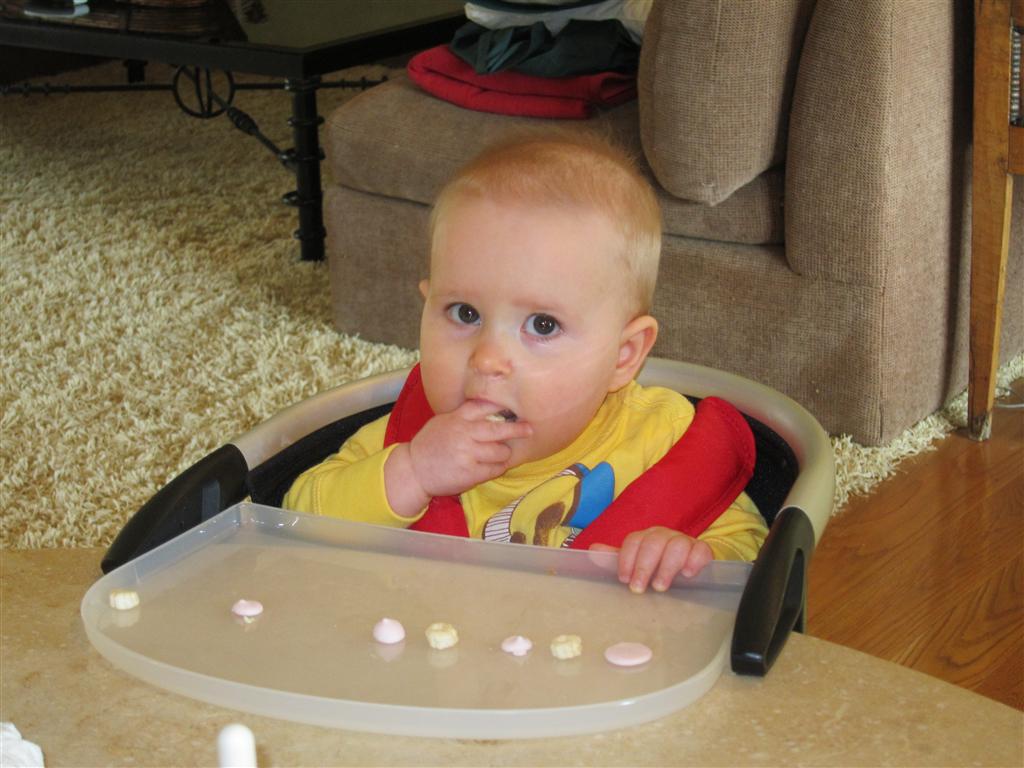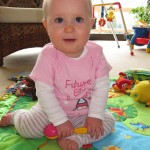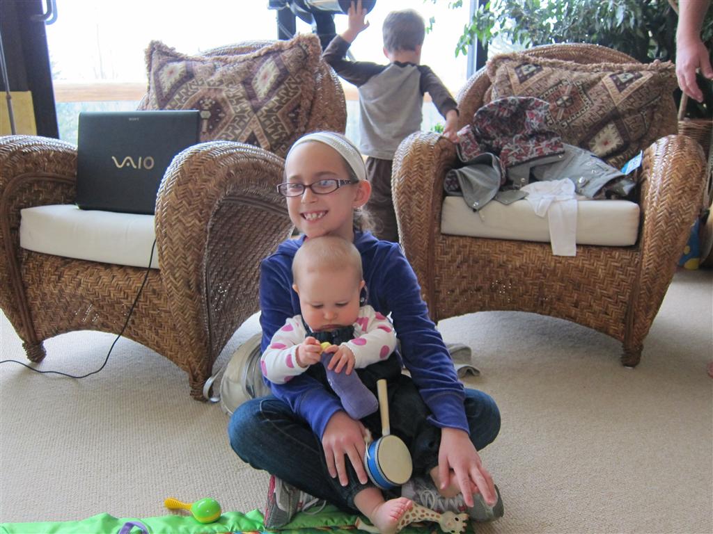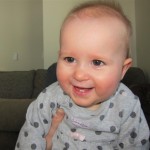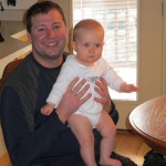 Eleanor turned eight months this week while in Aspen. Unfortunately, this means that the monthly family picture with Zapa will have to be delayed a few days (as Zapa doesn’t fly). Now that she is eight months old, Eleanor is doing a lot of new things. So many, in fact, that it was a bit hard to keep track of them all this week – so I made a little list below. Most significant is probably the first forward motion while “army” crawling – however Uncle B is the only witness to this event, so it is under dispute with Mama. Either way, Eleanor is definitely making progress towards a full fledged crawl. She definitely makes progress via multiple roll overs and “scoots”, inches backwards while on her tummy, and even lifts off the ground while on her back in a “crab walk” like motion. I’m pretty sure that she will figure out how to use her knees for propulsion very soon. Also very exciting are some new syllables that Eleanor can say, Da-Da-Da and Ga-Ga-Ga. She is so good at Da-Da now that all I have to do is say it once and she will repeat it back to me. I tried to convice Amy that this was her first word (Dada) but I was vetoed. Apparently it isn’t clear that Eleanor actually means Dada when she says Da-Da-Da. A fair point, and one that I successfully used when Eleanor used to say Uuummmmmaaaa Uummmmaaaa when she was a few months old. It sounded a lot like Mama, but both Amy and I agreed that it didn’t mean Mama, especially since Eleanor mostly said it while she was upset.