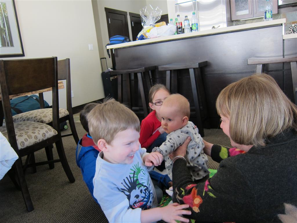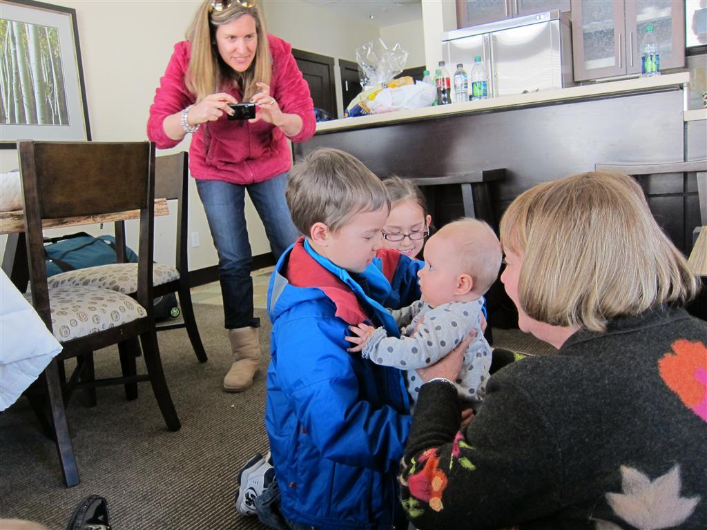 Arguments aside, we had a great week with lost of visitors and fun. Auntie Susan and Uncle Gabe came out to join us, along with Mackenzie, Jack and Ben. It was the first time to Aspen for Jack and Ben – and the first time skiing for all of them. It was also the first time that Gabe was allowed to ski with Brian and I since “The Crash” of 2003. Boy I wish I had that on video. Grandma and Grandpa also joined the trip for the first time, and got to spend some fun time with Eleanor.