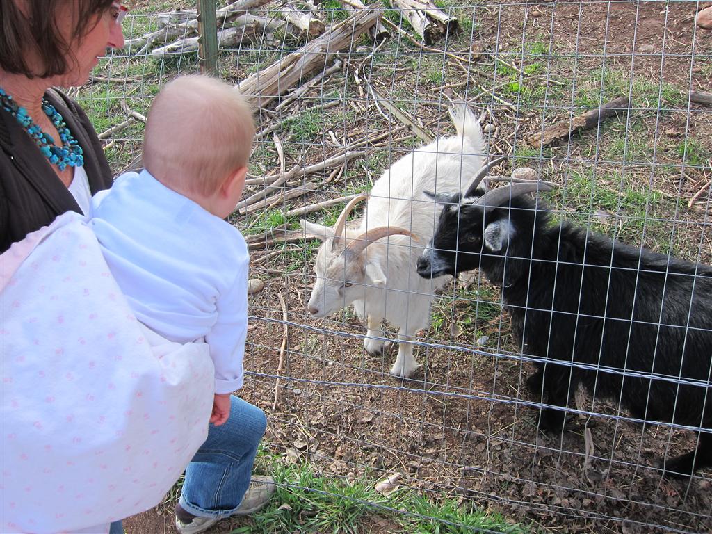 Eleanor also had a chance to meet up with Aunt Jane and Cousin Adam – where she met a pair of friendly goats and Adam’s pup Thor. Fortunately, only one of those three greeted her with a lick of the hand :) .