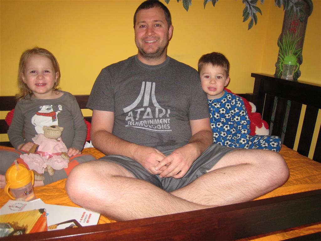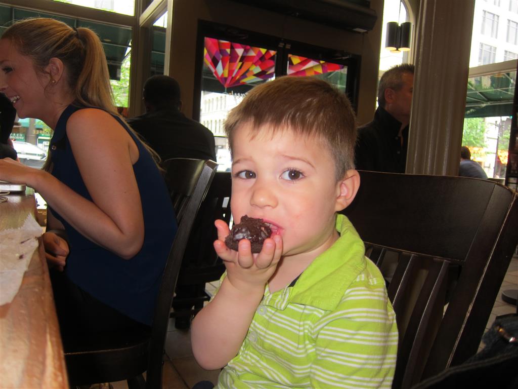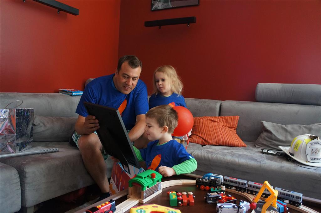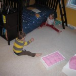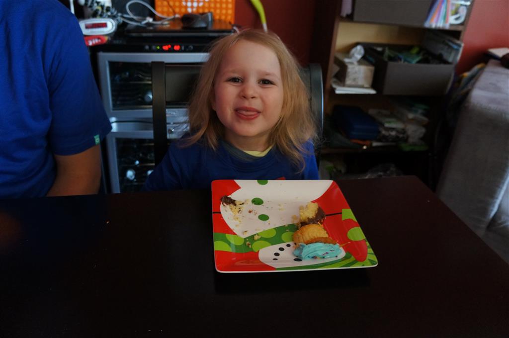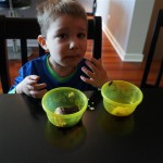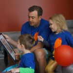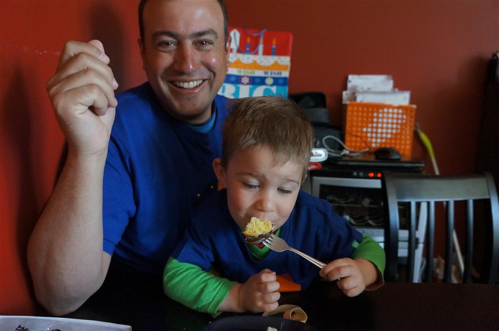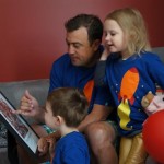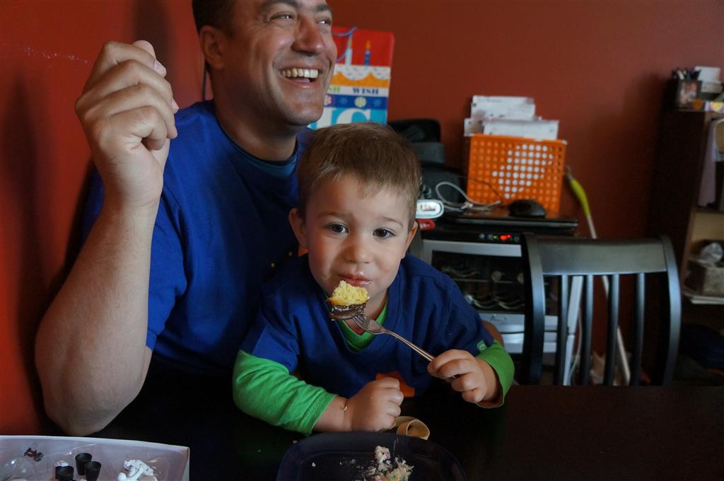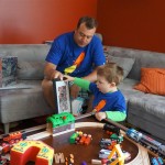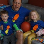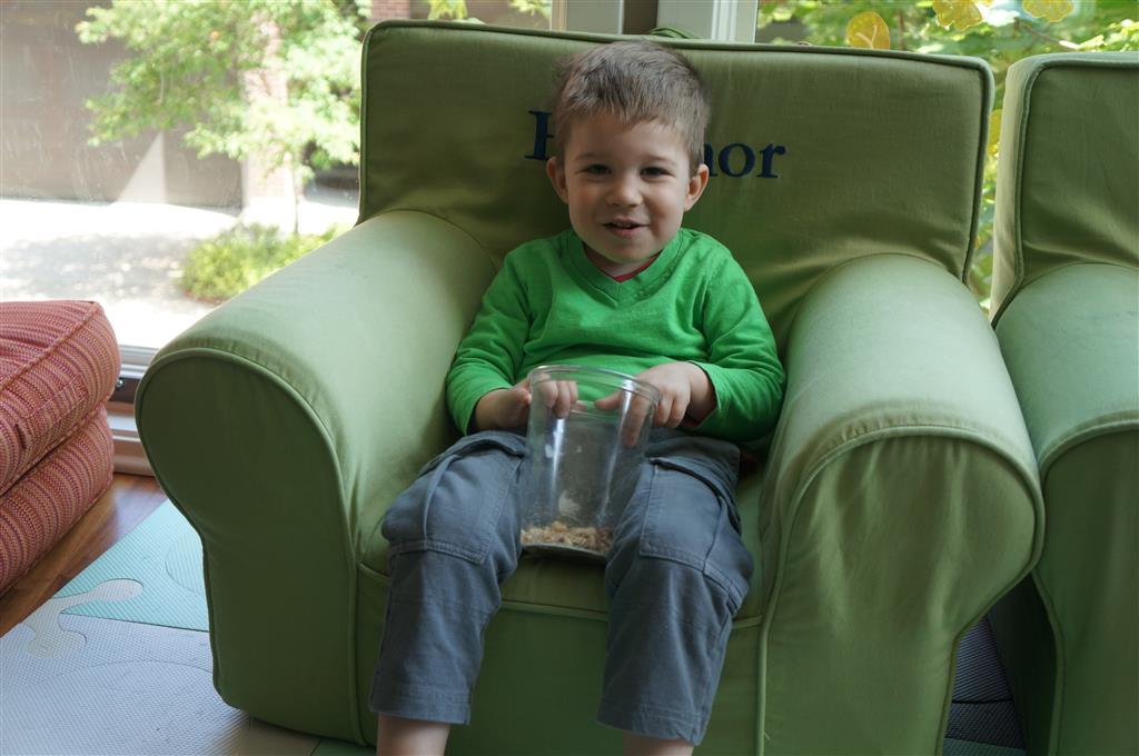 On Sunday, Uncle B came over and we celebrated his big birthday. Eleanor and Henry were really excited about the matching rocket ship shirts that they got for him. They were both also very excited about the birthday cupcakes. Showing incredible restraint, they both sang the entire Happy Birthday and watched Uncle B blow out the candle before they started into their cupcakes. After finishing his own, Henry cleverly went over and sat on Uncle B’s lap and then finished up Uncle B’s cupcake too!