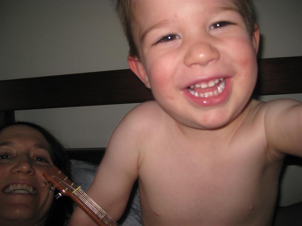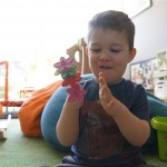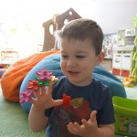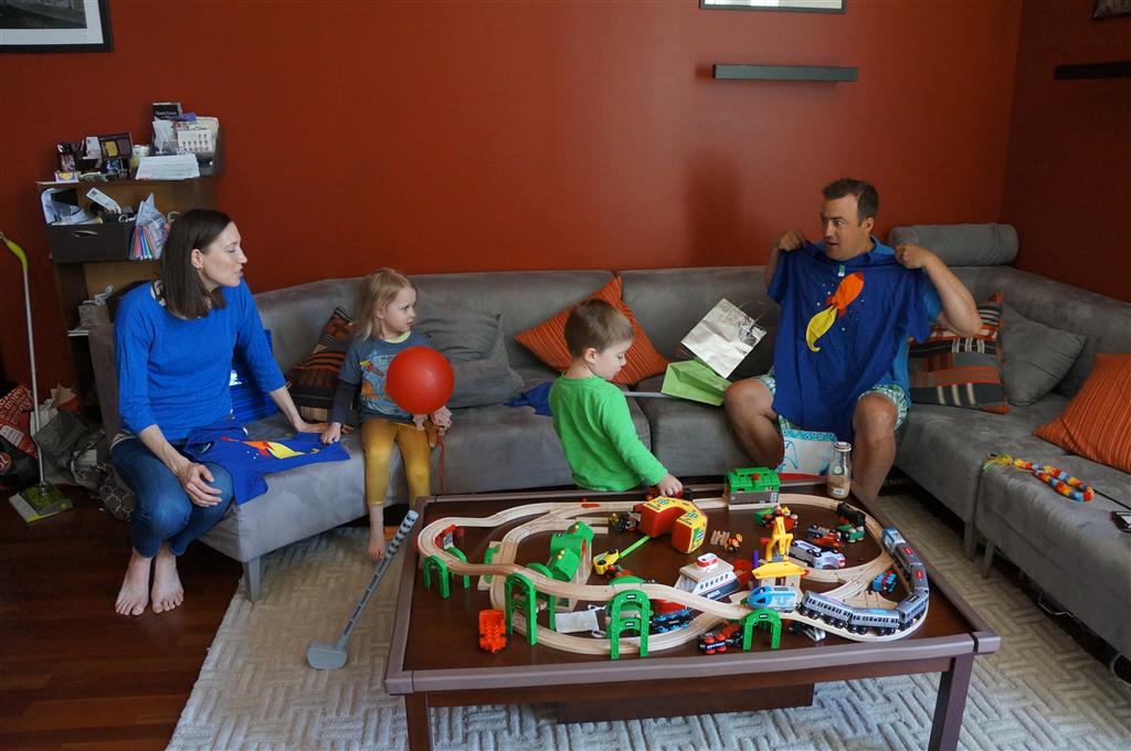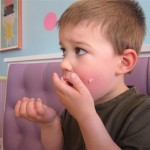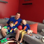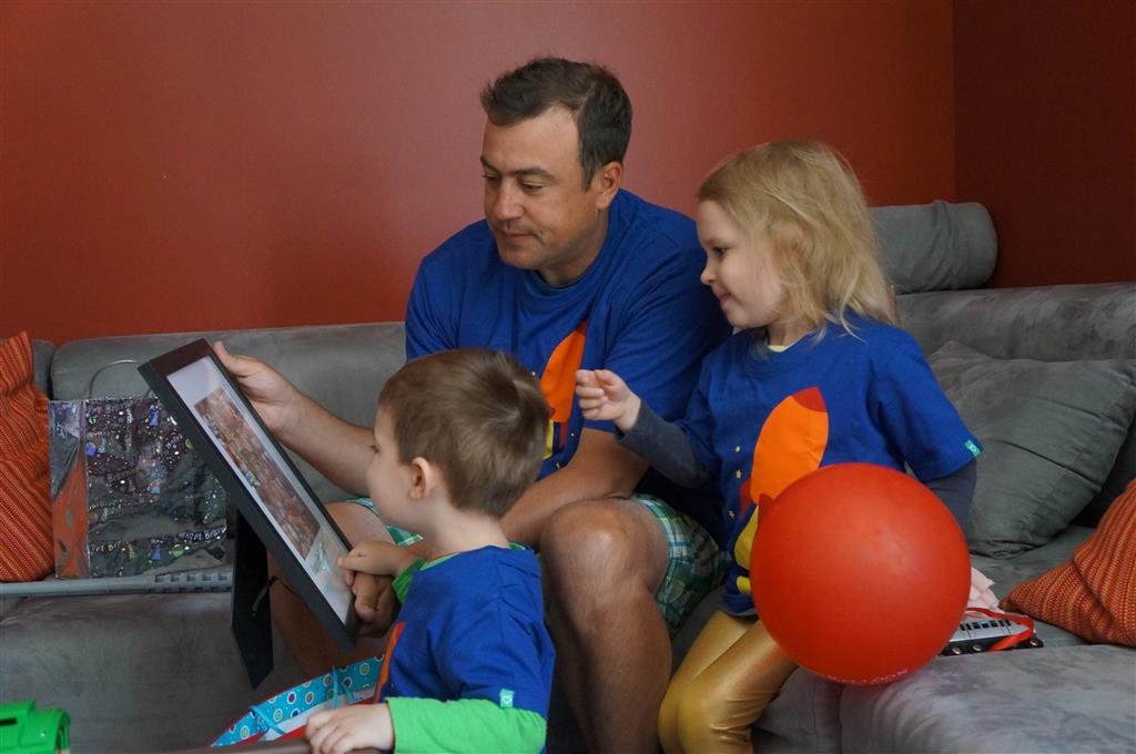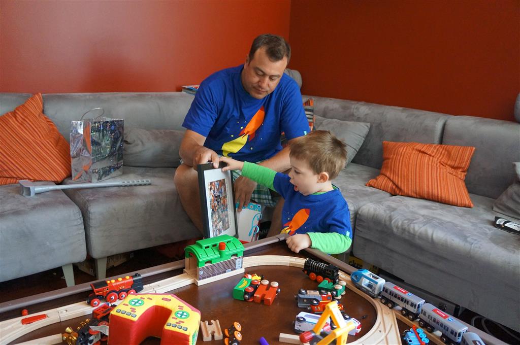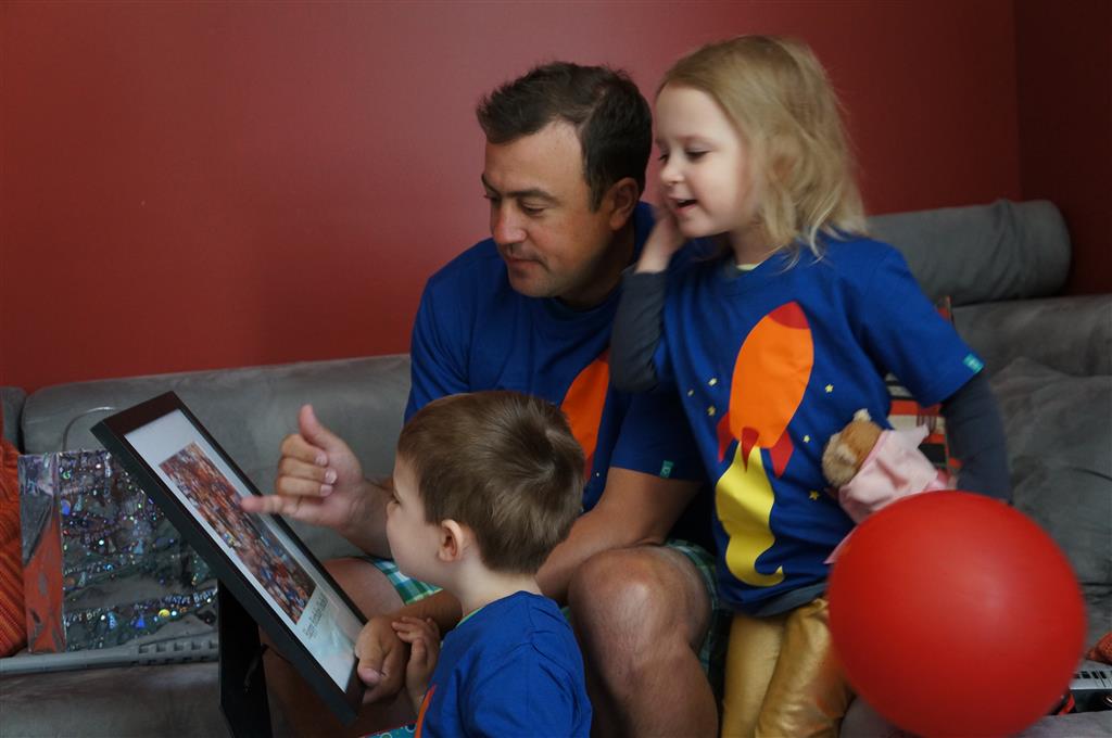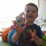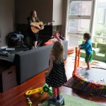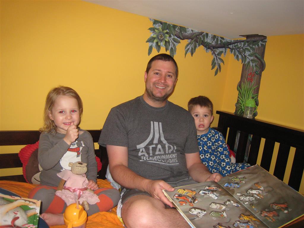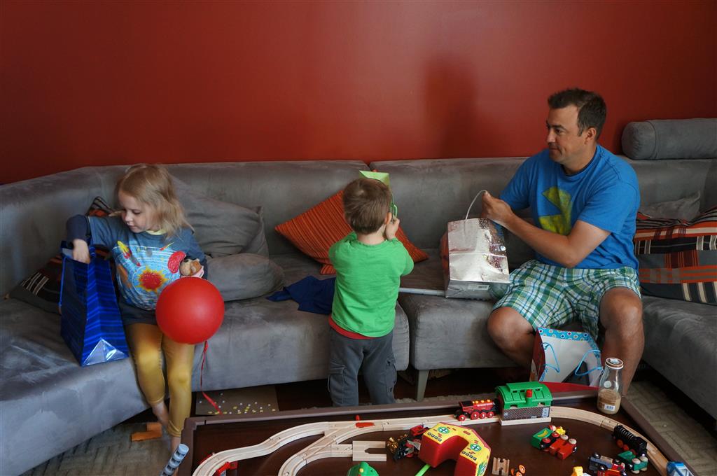 On Sunday, Uncle B came over and we celebrated his big birthday. Eleanor and Henry were really excited about the matching rocket ship shirts that they got for him. They were both also very excited about the birthday cupcakes. Showing incredible restraint, they both sang the entire Happy Birthday and watched Uncle B blow out the candle before they started into their cupcakes. After finishing his own, Henry cleverly went over and sat on Uncle B’s lap and then finished up Uncle B’s cupcake too!