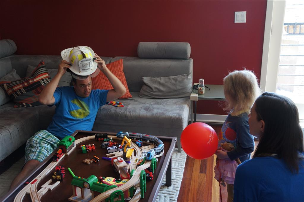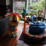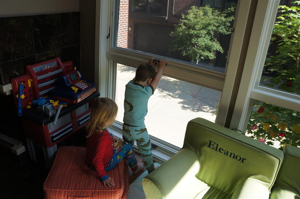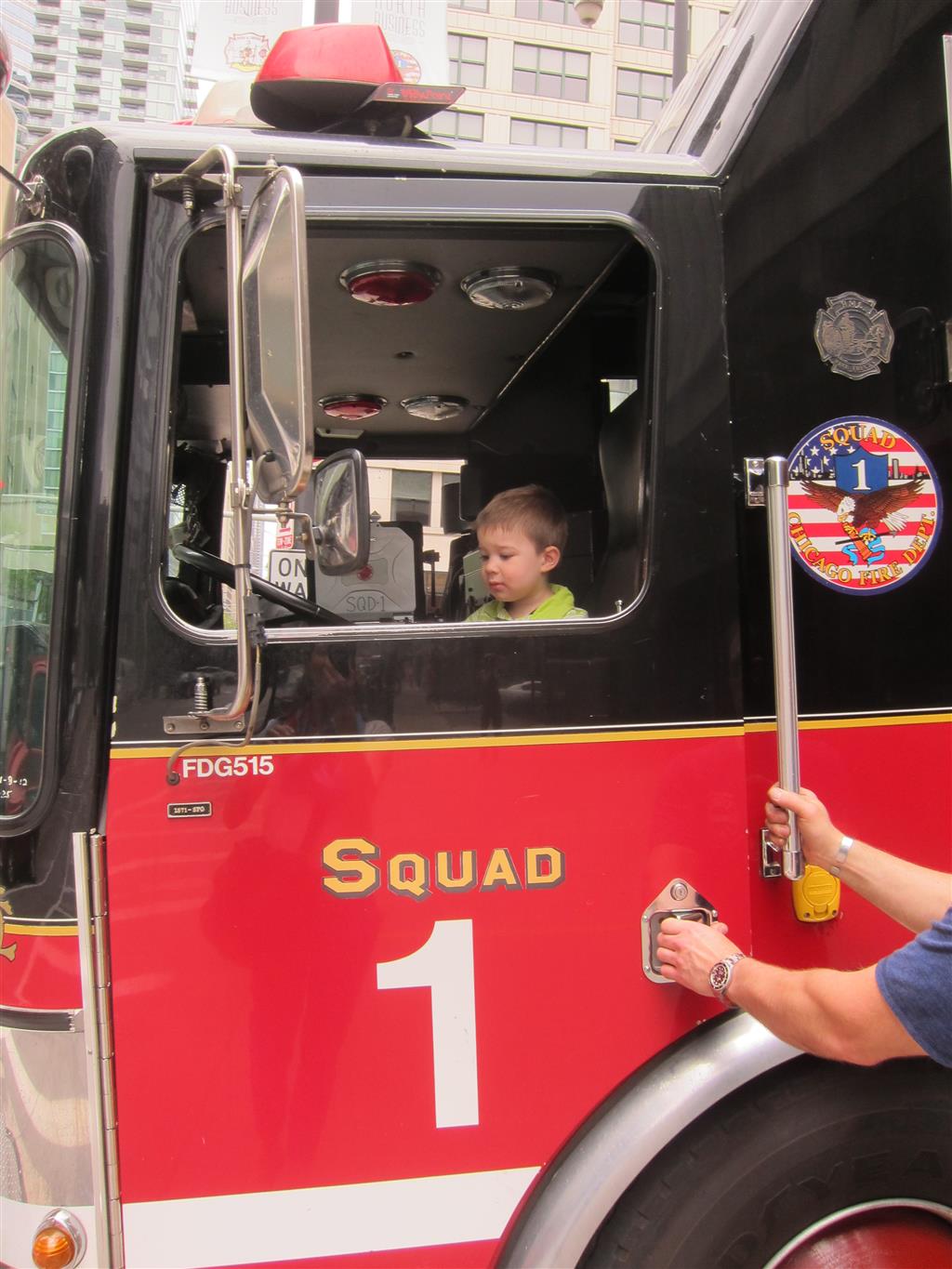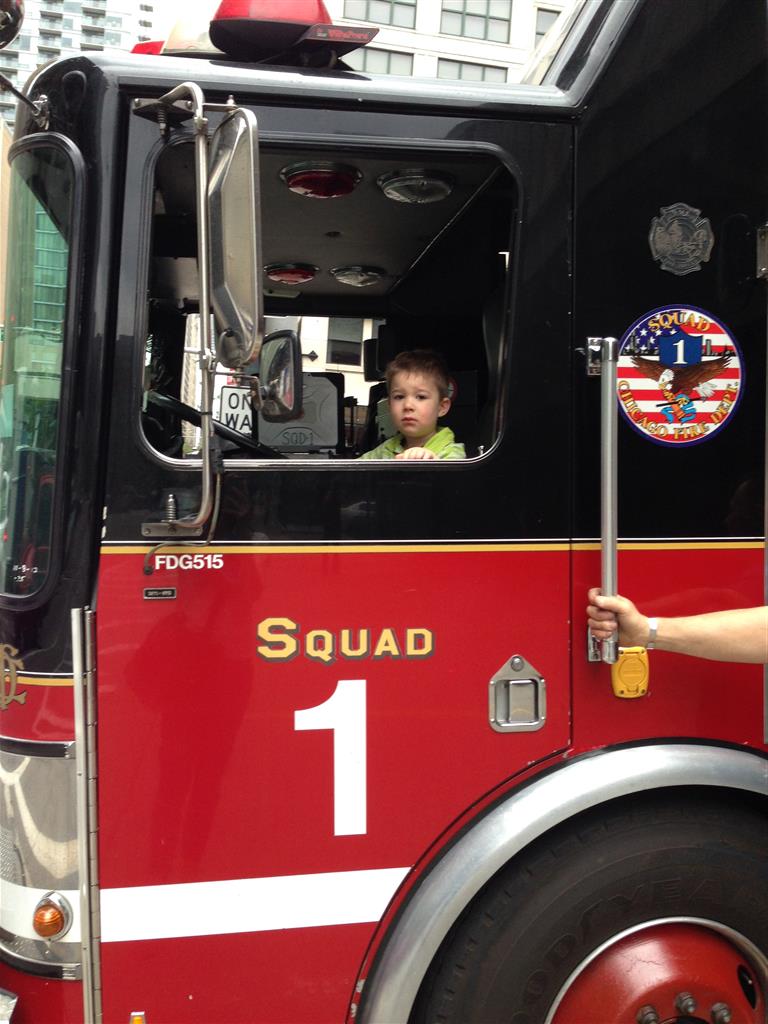 Henry and Eleanor are getting into a summer groove. All summer each will have an “Alone Morning” with just Mom, and it is shaping up that Henry spends his riding the El Train, and Eleanor spends hers at the planetarium. This week, Henry and Mom switched from the brown line to the red line after dropping Dad off, and on the way they passed a fire house and Henry was invited in to sit in the truck! He really liked riding the red line underground.