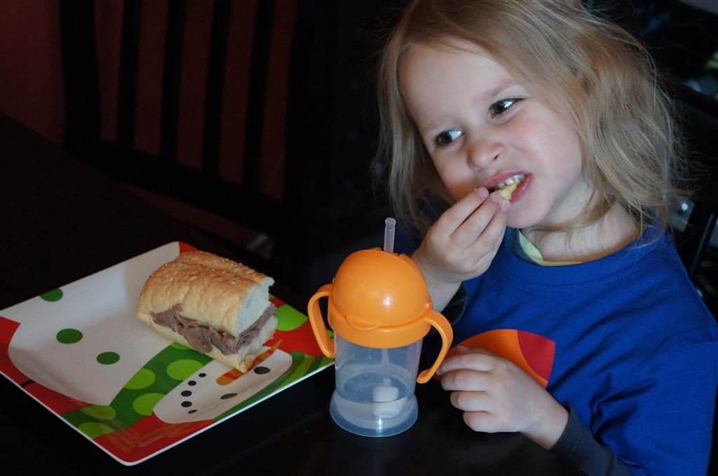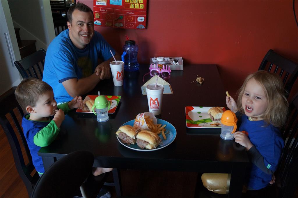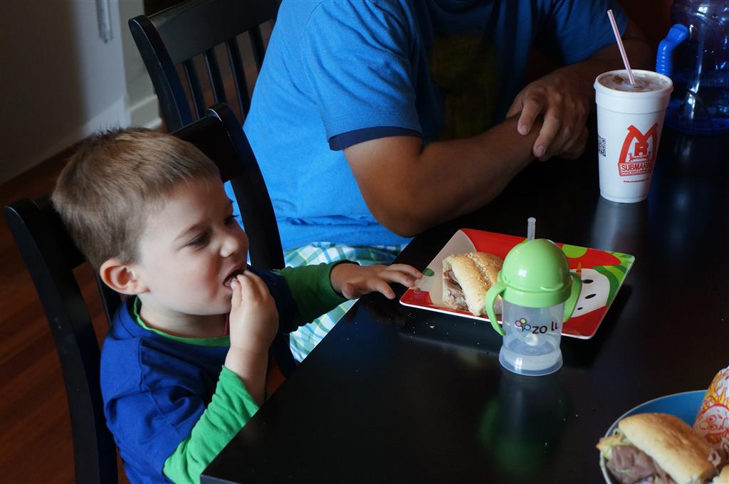 For lunch, Dad grabbed Mr. Sub for lunch for the whole family – Eleanor and Henry’s first full Mr. Sub sandwich! (They usually have a piece or two of Dad’s, but this was their first time having their own sub). Henry really got Uncle B laughing – He asked Dad for a French fry and Dad gave him “Only One”. Henry quickly ate the fry and then asked Dad for a French fry. Dad said, “Henry, you already have your one fry”, to which Henry replied, “No I don’t have one, I already ate it”. Ha! Clever boy.