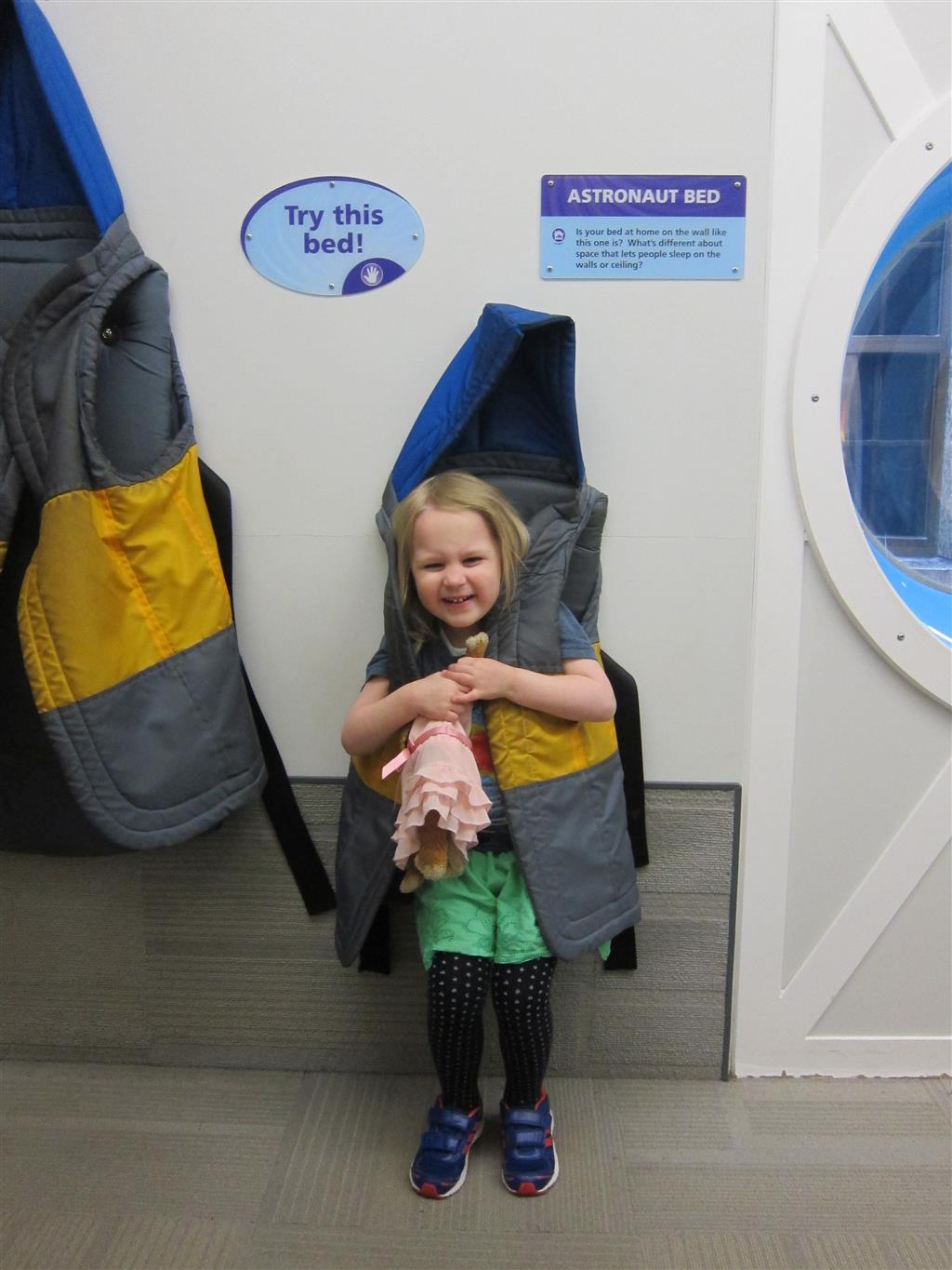 Eleanor had a blast at the planetarium, and watched the “Big Bird and Elmo in Space” movie again. She also picked out a super cool Saturn V model from the gift store. Mom and Dad are having a blast feeding her rocket excitement and teaching her all about the space program. She can now quote Neal Armstrong saying, “Houston, Tranquility Base here, the Eagle has landed!”