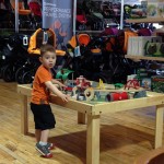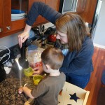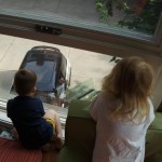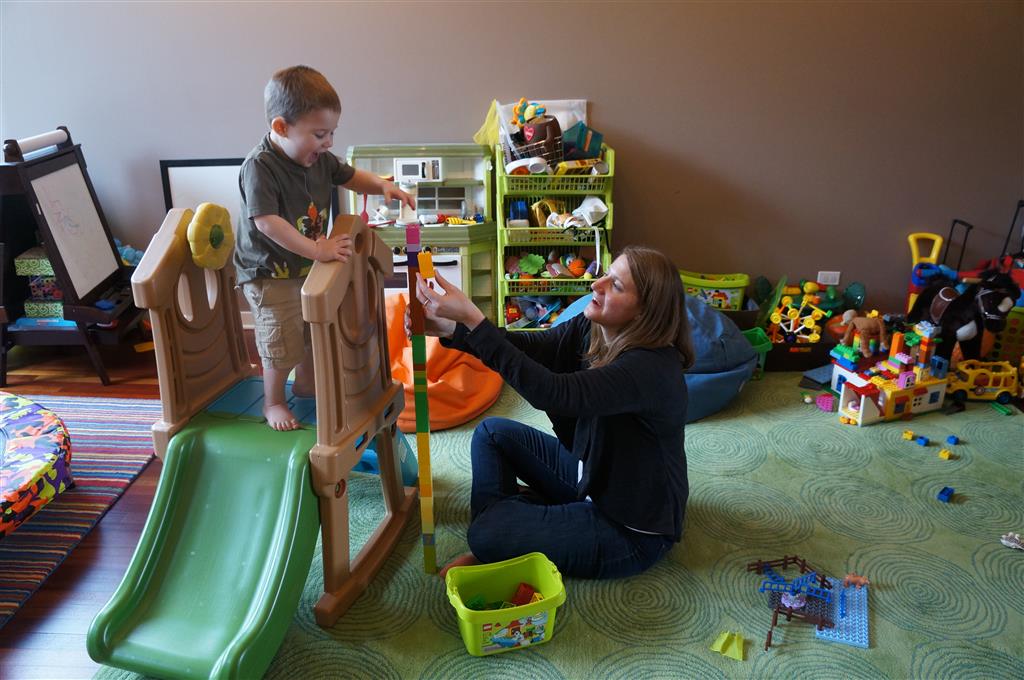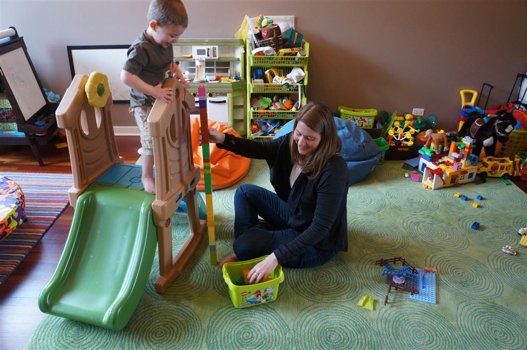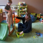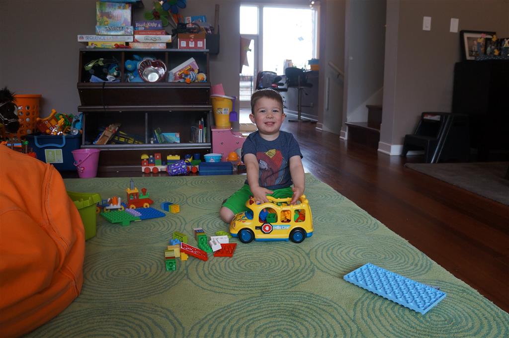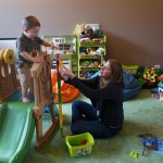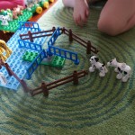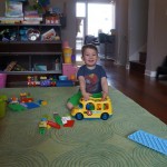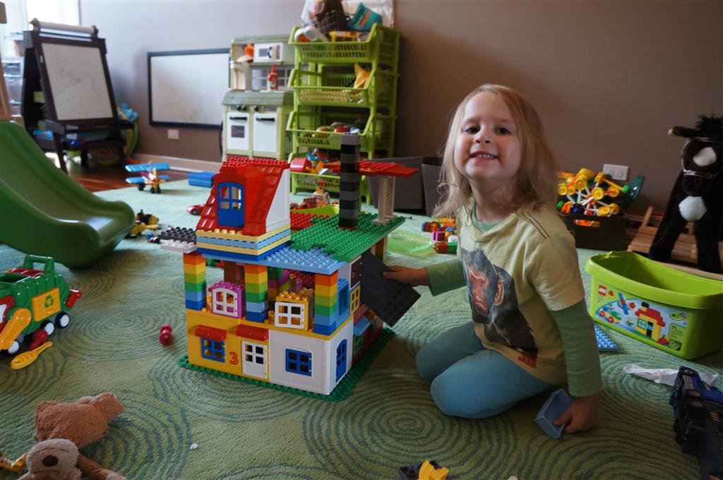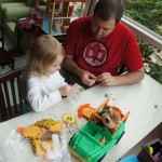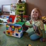 After a few weeks off, Legos got a lot of interest from the kids this week, and Mom made some pretty cool structures including a big house and a working turnstile for the train station. Lala and Henry made a tower so tall Henry had to climb on top of the slide to put the top on it!