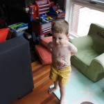 Henry and Eleanor each moved up a level in soccer class this week. The change was bigger for Henry, as he is now in a class where Dad sits on the sidelines after the first half. Henry was apprehensive at first, but quickly joined in and followed the coach’s instructions for the rest of the class. It was really exciting watching him participate and engage without the help of Mom or Dad. Another exciting milestone for Henry – he is now jumping off the step in swimming all by himself. We have been working up to this for weeks, but prior to this he needed to hold the coach’s hand before he would jump in.