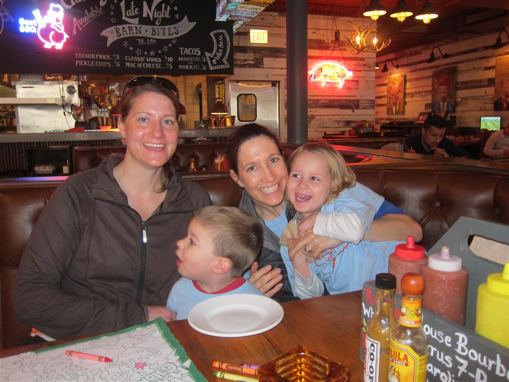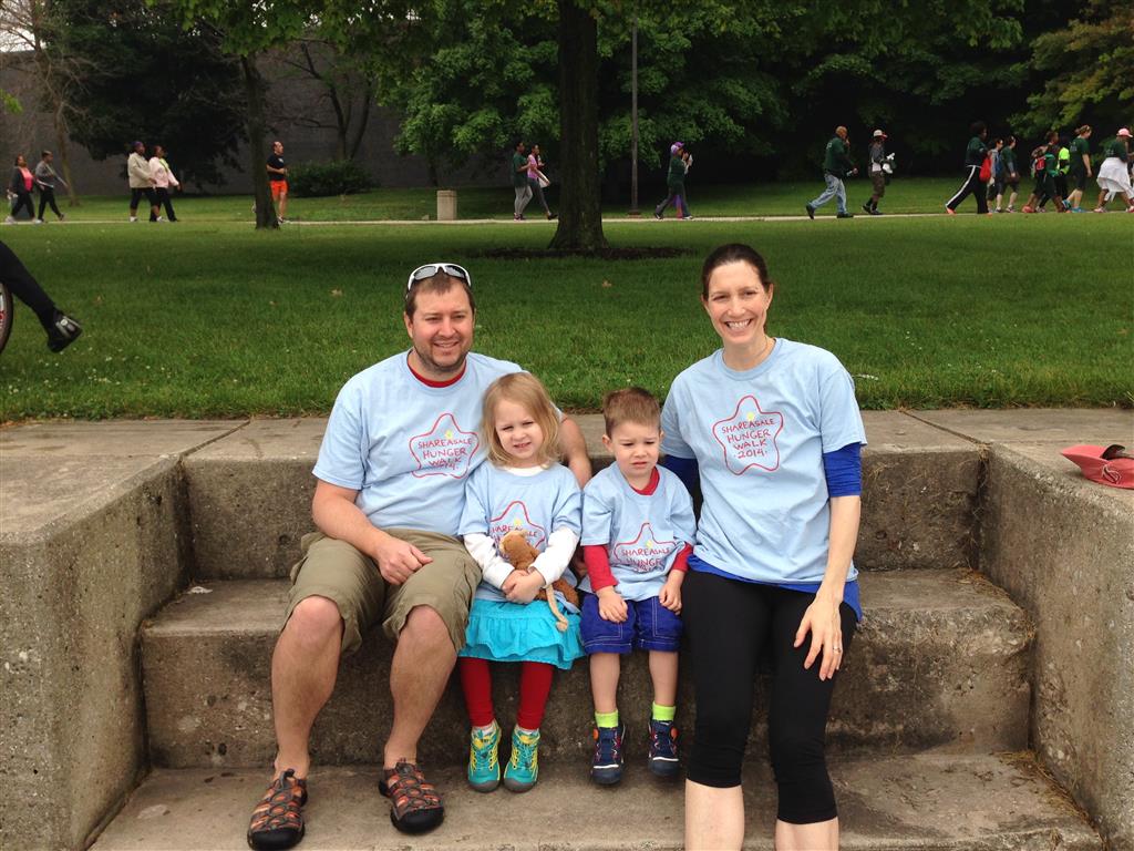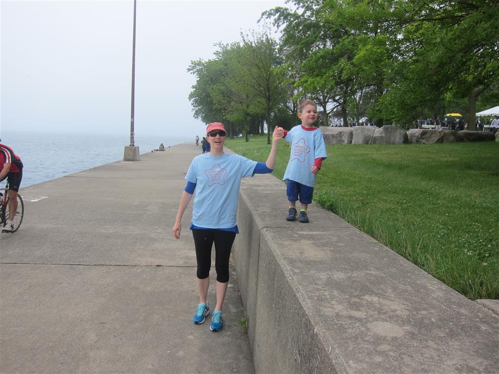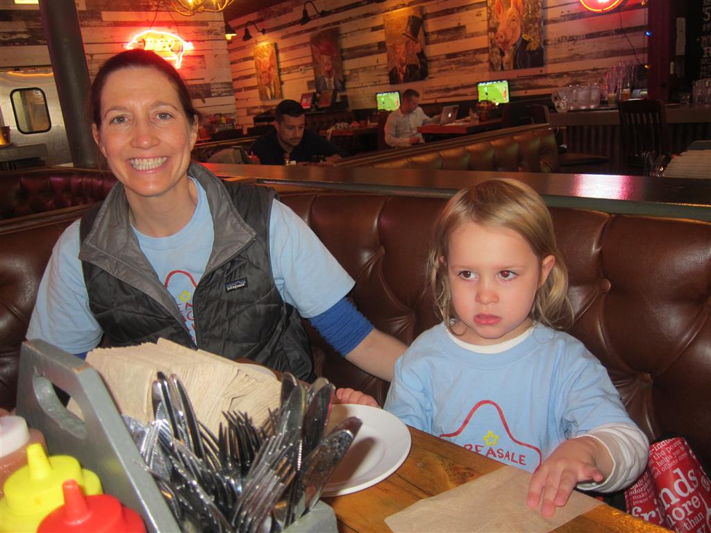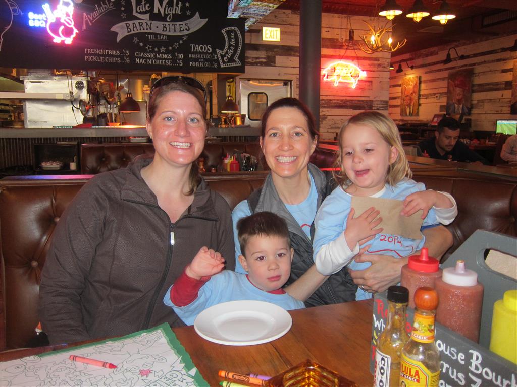 Eleanor and Henry joined Mom and Dad for their first charity walk this weekend. It was scheduled to be a 5K walk, but we hopped the lines a bit and make it more like a 2K walk :) The kids did great despite a really poorly planned course, where we had to walk through a confined parking garage for about 15 minutes. We rounded out the weekend with a fun dinner with Aunt Tia and Uncle Jay! Yummy!