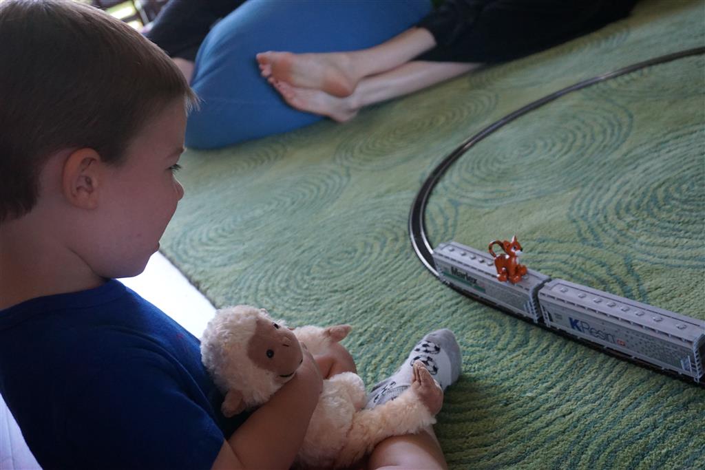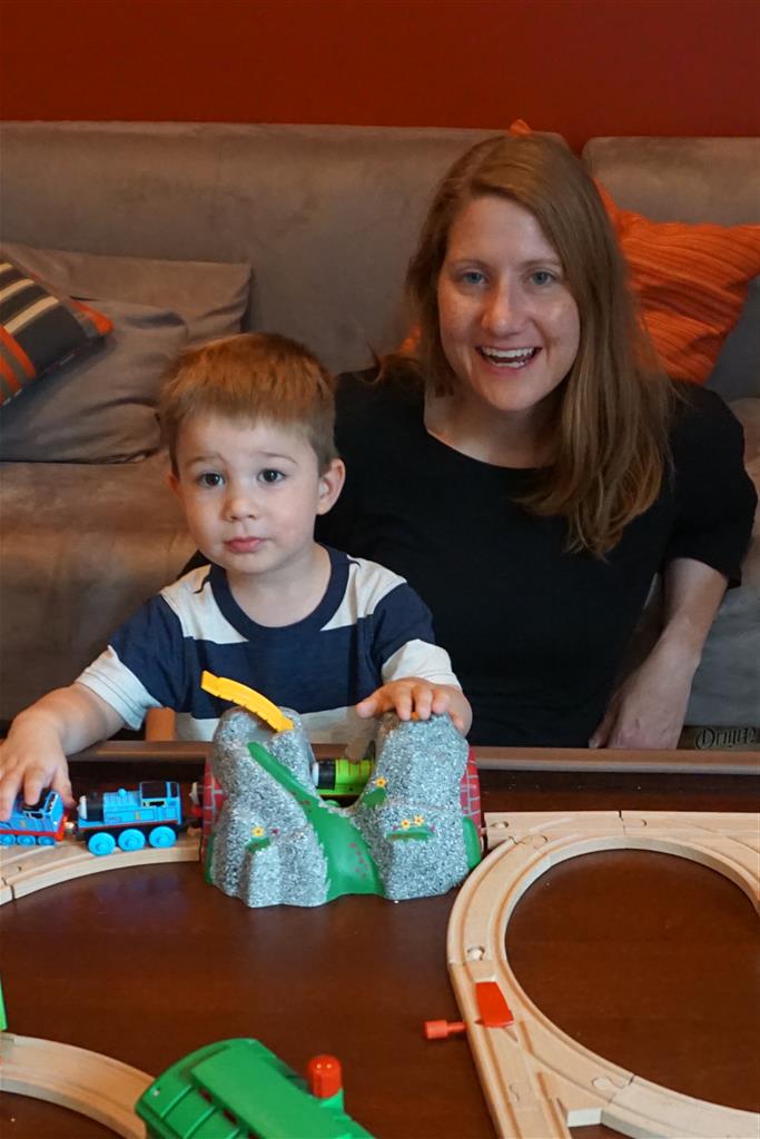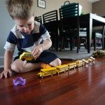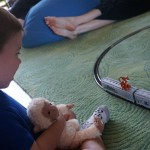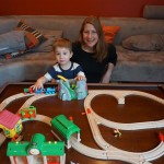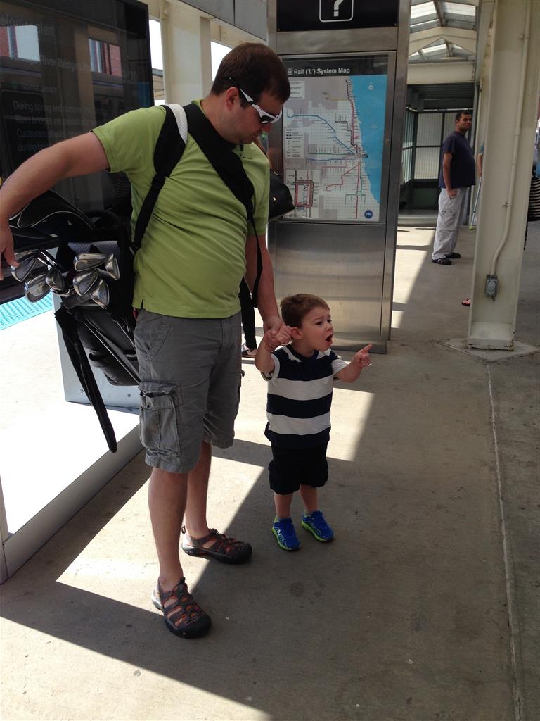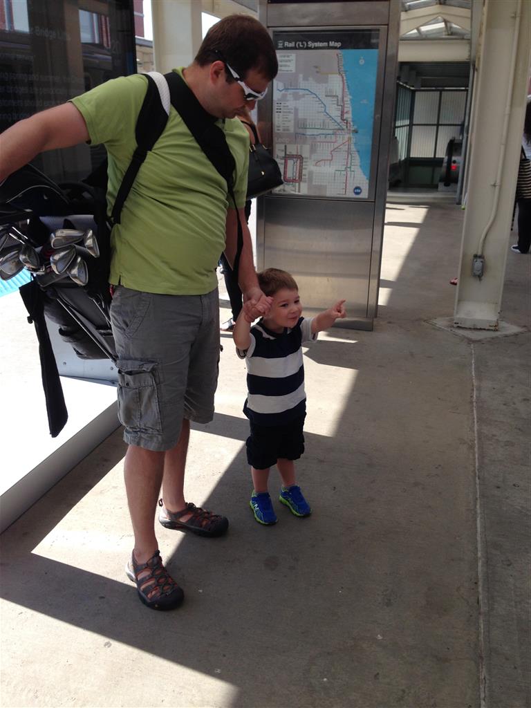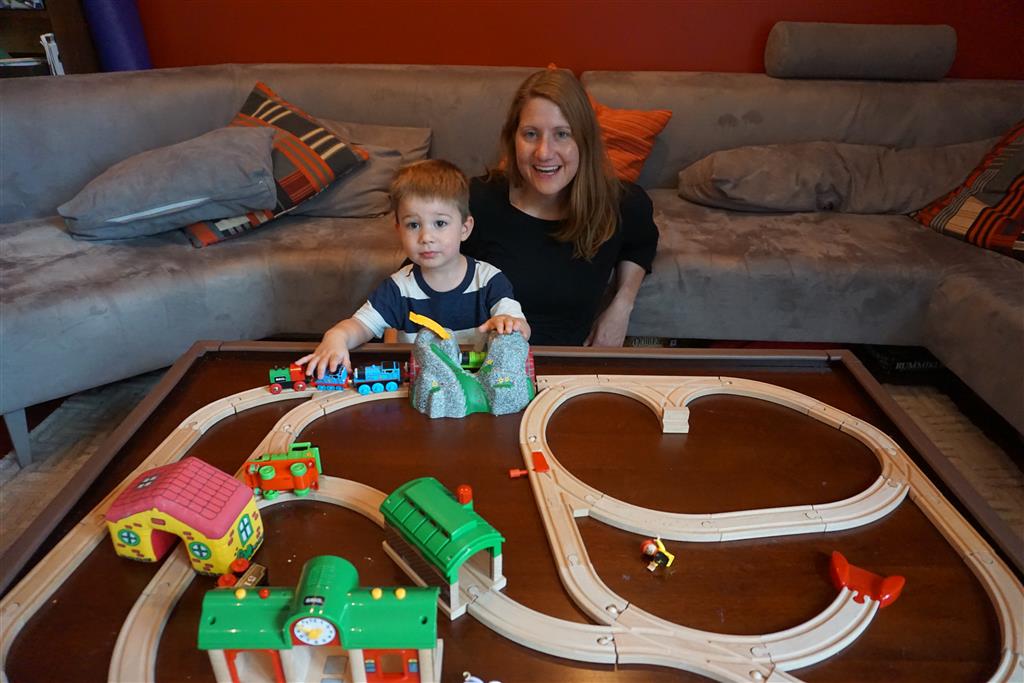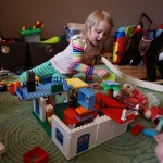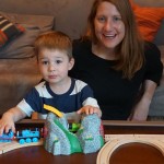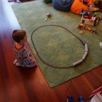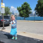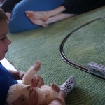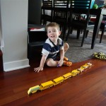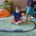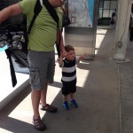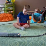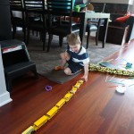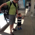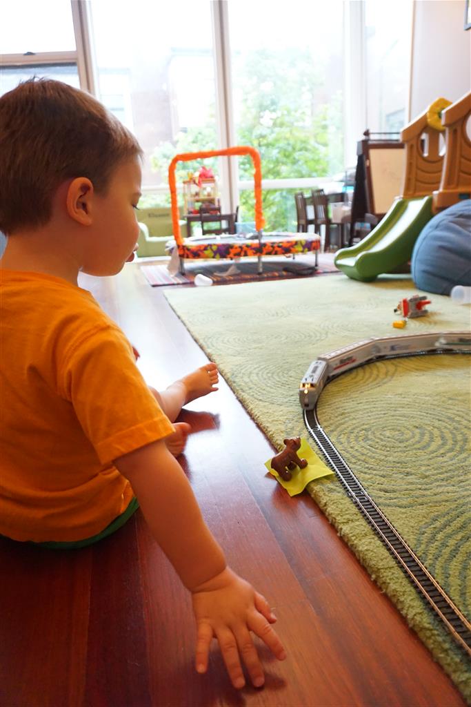 We had a fun week enjoying the summer weather. Henry had his alone day with Mom at the zoo, and they discovered a cool climbing area that Henry mastered. They also saw a tiger and got to “Roar”, with the 20 time repeat of Katy Perry’s ROAR song fresh in their minds from last Sunday’s drive. Eleanor spent her alone day at the planetarium, with another screening of the Sesame Street Space movie. They found an art project this time, and Eleanor made an awesome space helmet out of a paper bag and some fun space theme stickers. Henry got to ride the train into work with Dad on Friday, which he loved, and then this weekend we put together the train that Grandpa gave us during our visit. Henry loved it – although it is a bit fragile for him yet. We have already had a few incidents, including one run in with a beach ball that I thought might be the end. Alas, it was fixable, and it is still working!