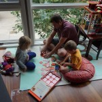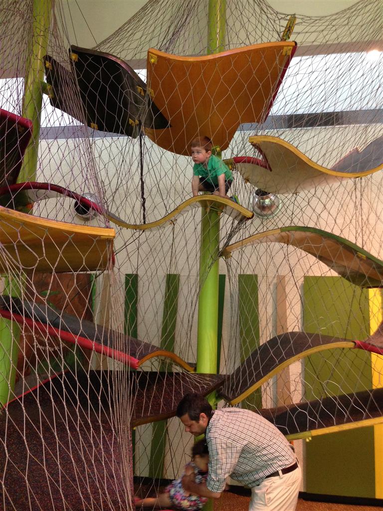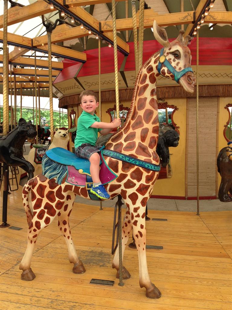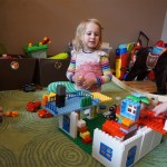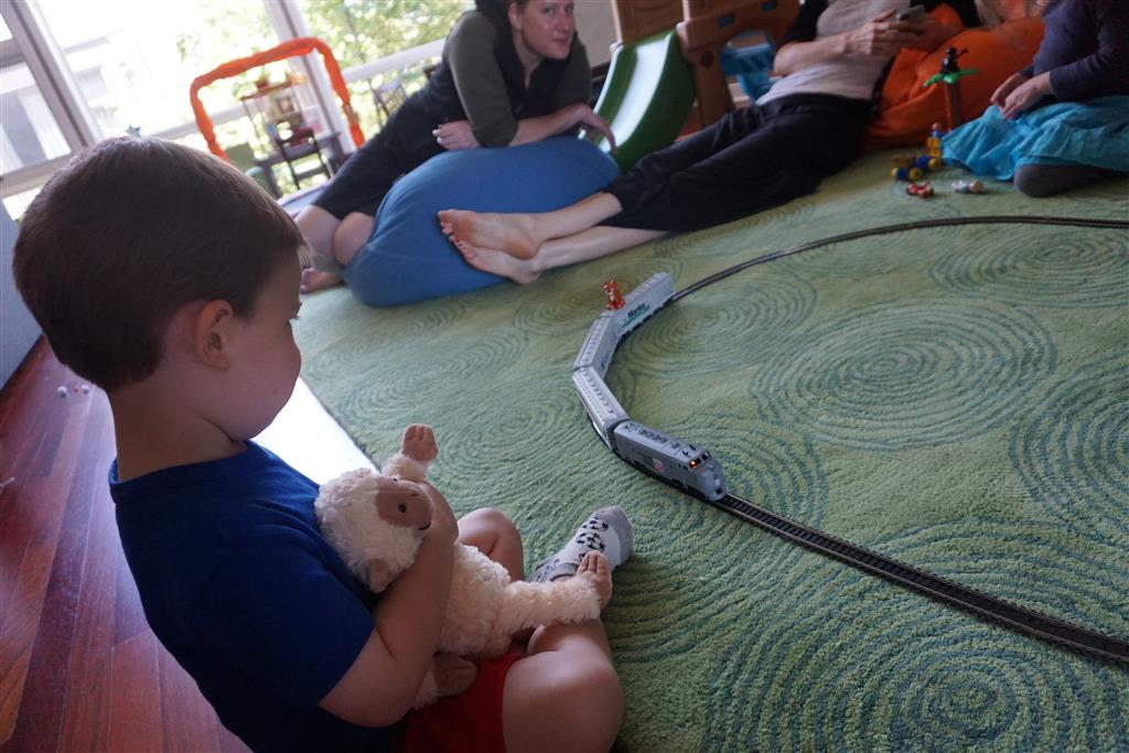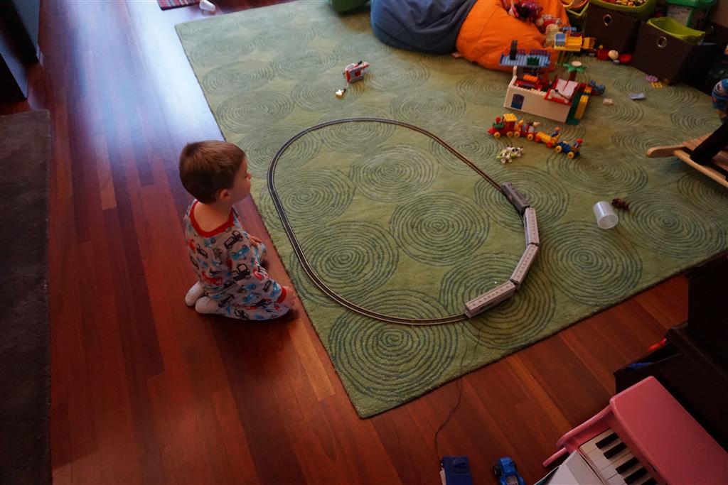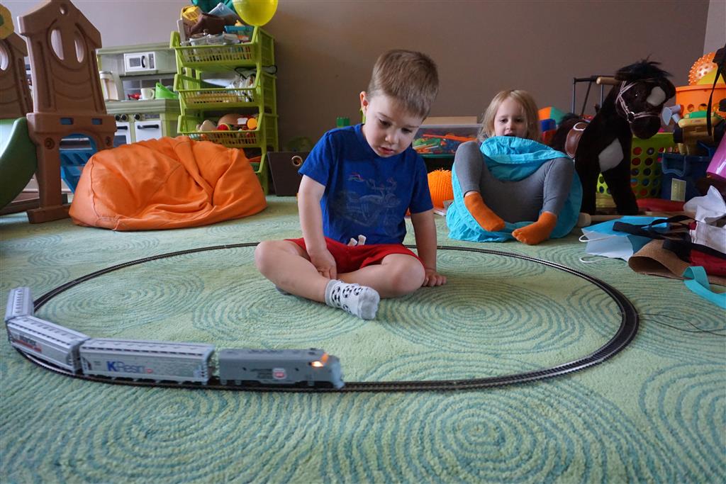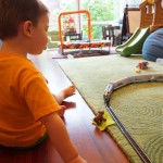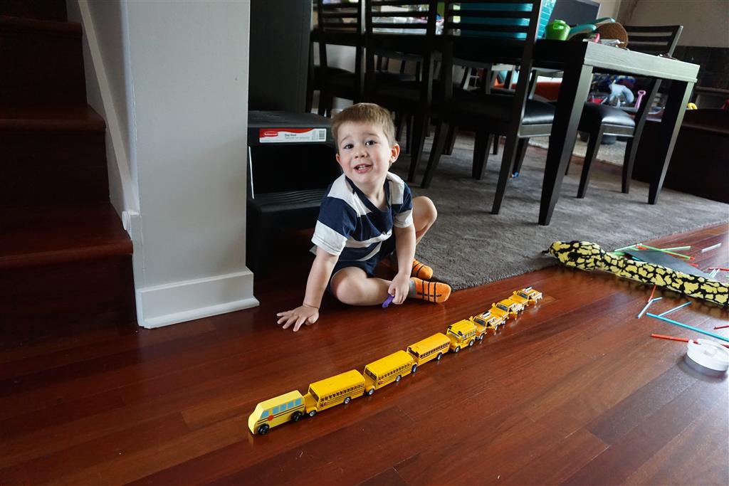 We had a fun week enjoying the summer weather. Henry had his alone day with Mom at the zoo, and they discovered a cool climbing area that Henry mastered. They also saw a tiger and got to “Roar”, with the 20 time repeat of Katy Perry’s ROAR song fresh in their minds from last Sunday’s drive. Eleanor spent her alone day at the planetarium, with another screening of the Sesame Street Space movie. They found an art project this time, and Eleanor made an awesome space helmet out of a paper bag and some fun space theme stickers. Henry got to ride the train into work with Dad on Friday, which he loved, and then this weekend we put together the train that Grandpa gave us during our visit. Henry loved it – although it is a bit fragile for him yet. We have already had a few incidents, including one run in with a beach ball that I thought might be the end. Alas, it was fixable, and it is still working!