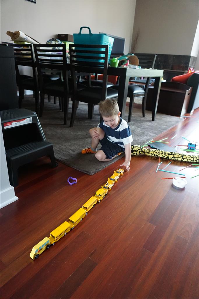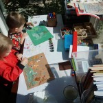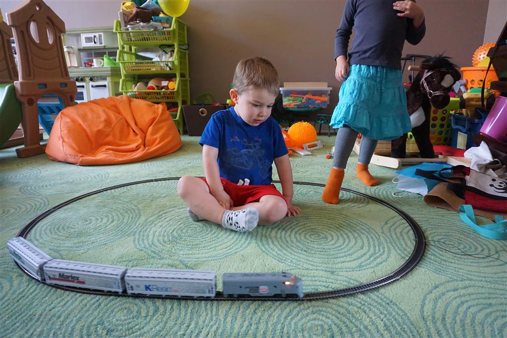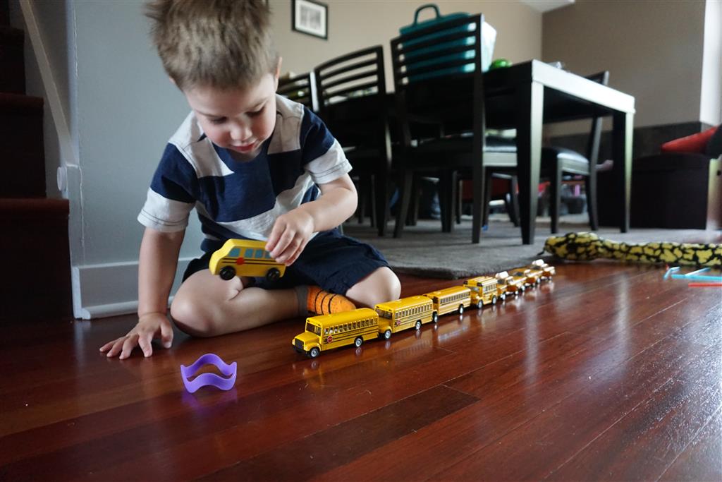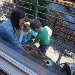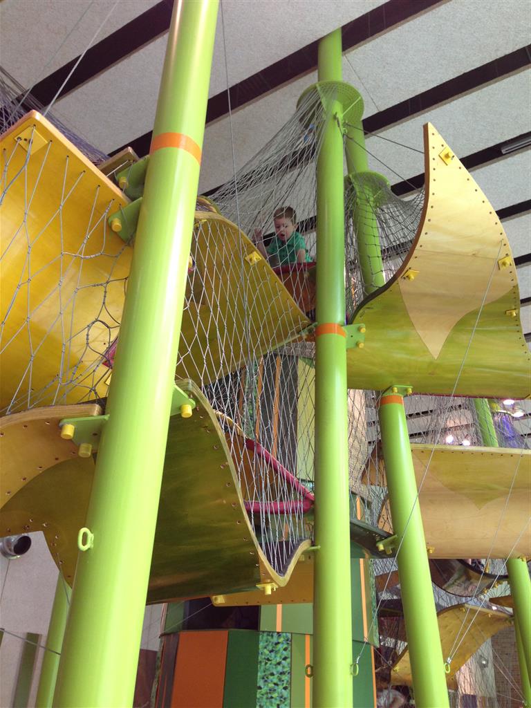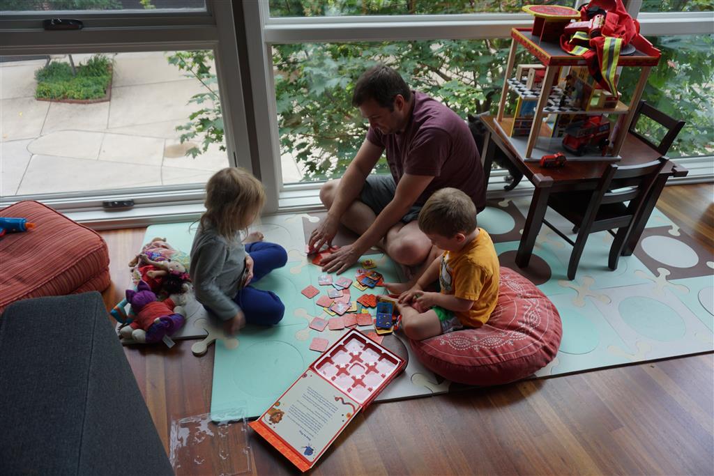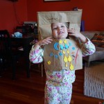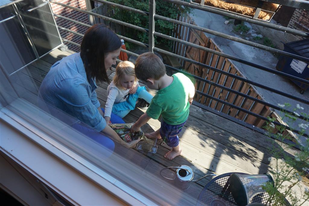We had a fun week enjoying the summer weather. Henry had his alone day with Mom at the zoo, and they discovered a cool climbing area that Henry mastered. They also saw a tiger and got to “Roar”, with the 20 time repeat of Katy Perry’s ROAR song fresh in their minds from last Sunday’s drive. Eleanor spent her alone day at the planetarium, with another screening of the Sesame Street Space movie. They found an art project this time, and Eleanor made an awesome space helmet out of a paper bag and some fun space theme stickers. Henry got to ride the train into work with Dad on Friday, which he loved, and then this weekend we put together the train that Grandpa gave us during our visit. Henry loved it – although it is a bit fragile for him yet. We have already had a few incidents, including one run in with a beach ball that I thought might be the end. Alas, it was fixable, and it is still working!