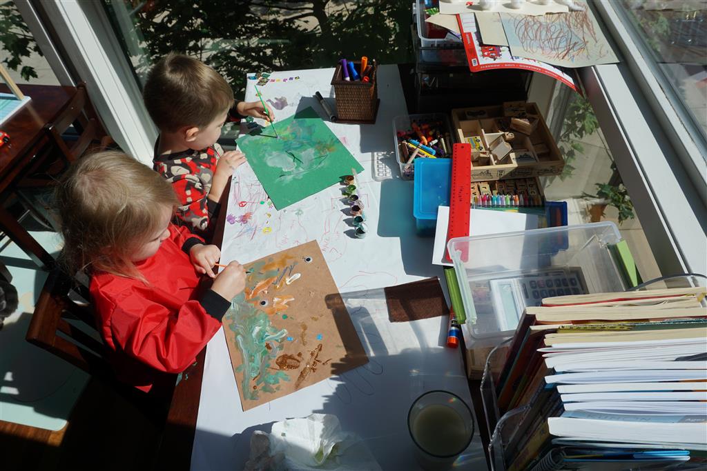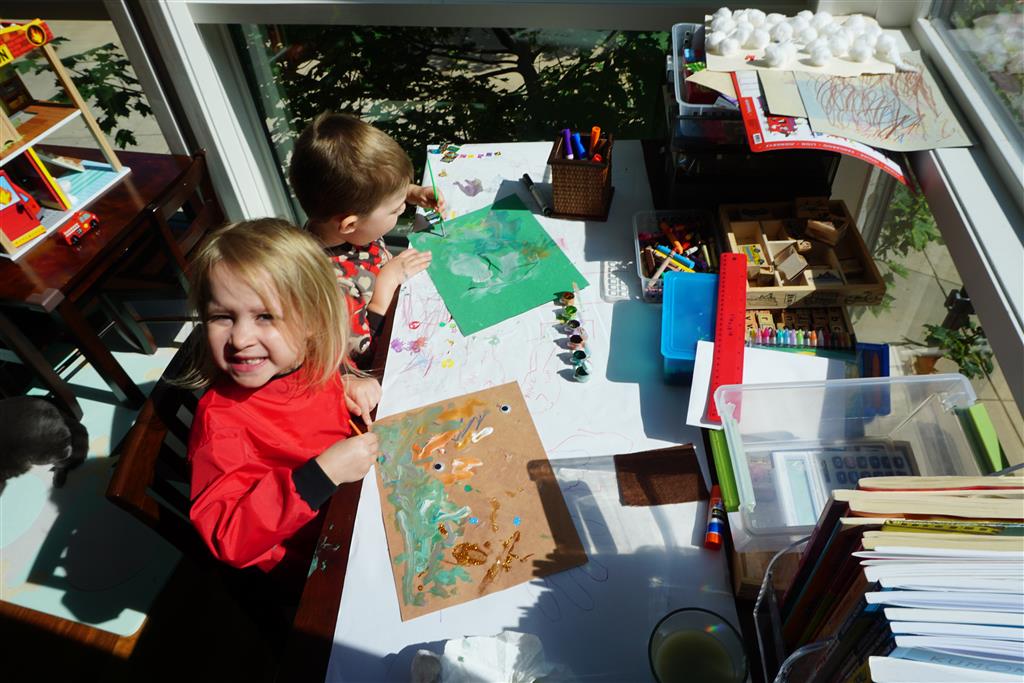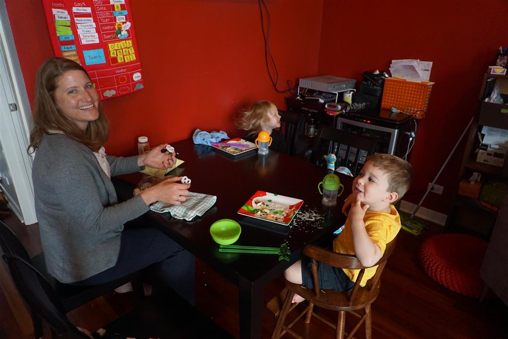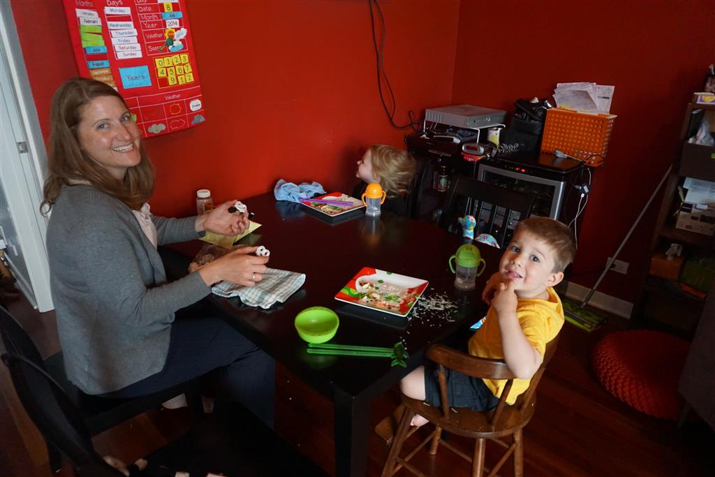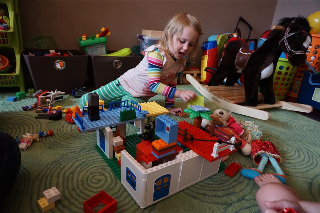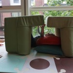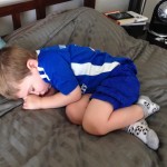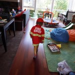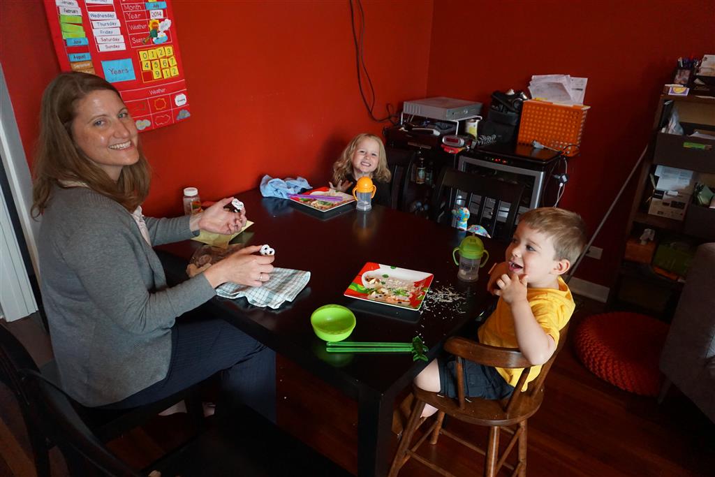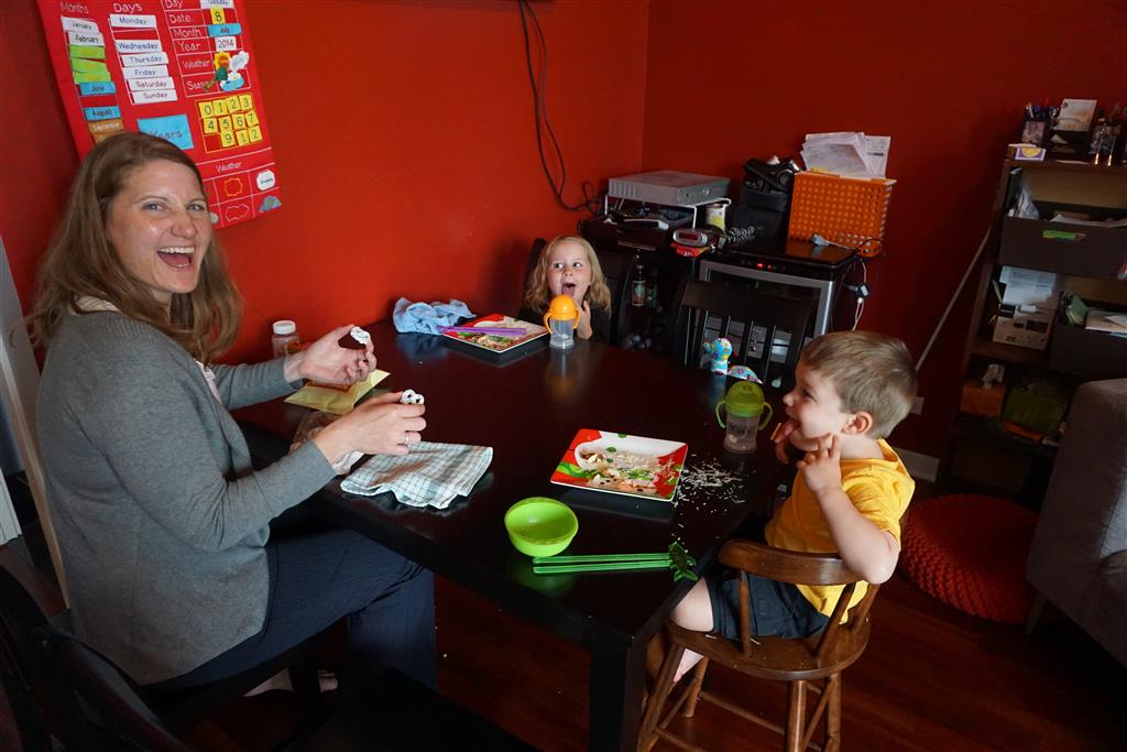 We had a fun week enjoying the summer weather. Henry had his alone day with Mom at the zoo, and they discovered a cool climbing area that Henry mastered. They also saw a tiger and got to “Roar”, with the 20 time repeat of Katy Perry’s ROAR song fresh in their minds from last Sunday’s drive. Eleanor spent her alone day at the planetarium, with another screening of the Sesame Street Space movie. They found an art project this time, and Eleanor made an awesome space helmet out of a paper bag and some fun space theme stickers. Henry got to ride the train into work with Dad on Friday, which he loved, and then this weekend we put together the train that Grandpa gave us during our visit. Henry loved it – although it is a bit fragile for him yet. We have already had a few incidents, including one run in with a beach ball that I thought might be the end. Alas, it was fixable, and it is still working!