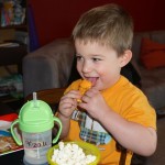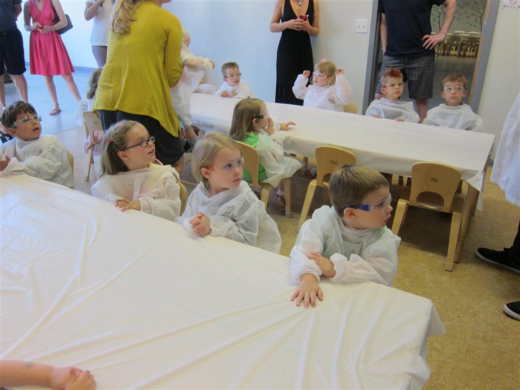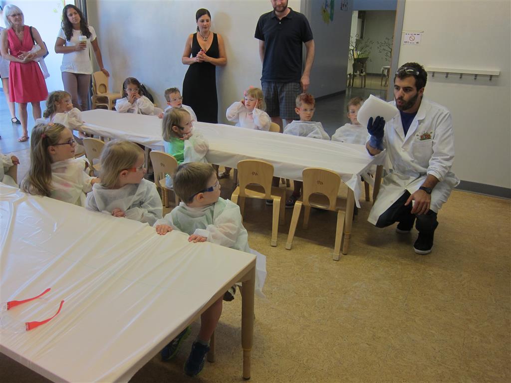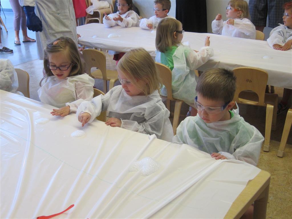 Henry tried a pretzel with Dad’s favorite Win Schuler’s Cheese Dip on it – he took a few licks, and then asked for a pretzel with no cheese. I guess it is an acquired taste! Rounding out the week was a birthday party at Kids Science Lab where we had several “explosion” experiments which the kids liked. Their favorite was vinegar and baking soda mixture that inflated a balloon placed over the bottle.