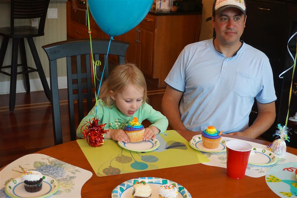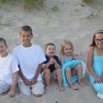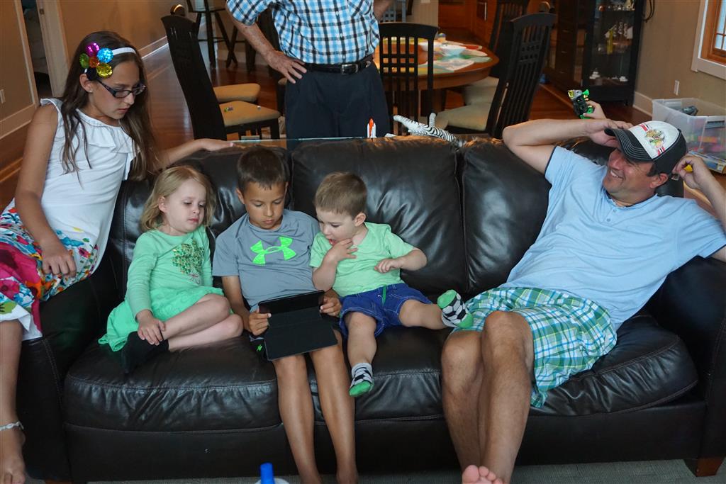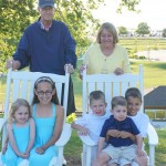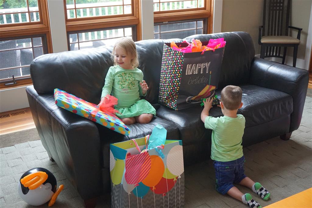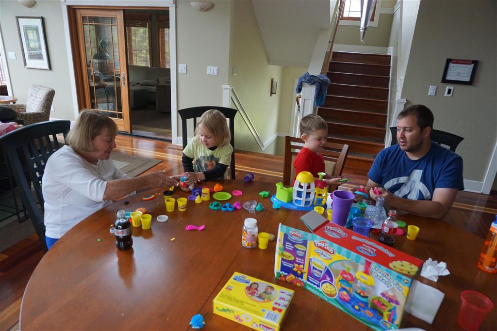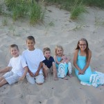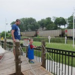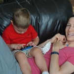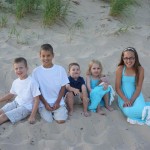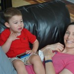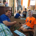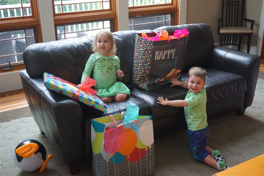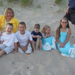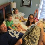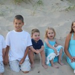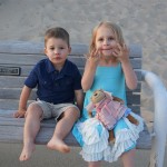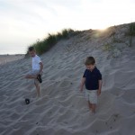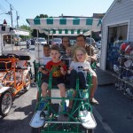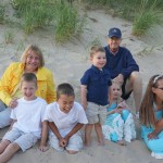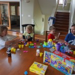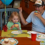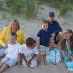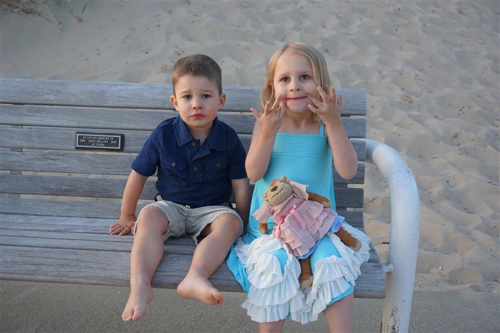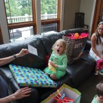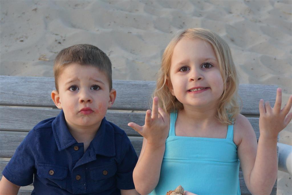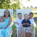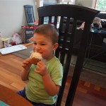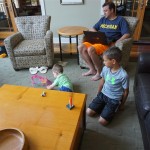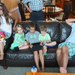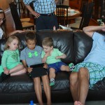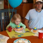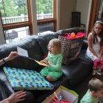 Eleanor and Henry had a fun week at the beach. We had an early celebration for Eleanor’s birthday, and she received a super fun rocket ship play tent, and some great puppets and a puppet theater. I’m sure both will be big hits! Uncle B brought along a bunch of Legos for rainy day entertainment – Eleanor really liked doing the small size and worked with Mom to follow the instructions and pick out all the right pieces. Henry loved the train, although he couldn’t participate much in the building process. We seem to have neglected to take any pictures while enjoying the beach – but we definitely enjoyed swimming and building sand castles. Eleanor spent a long time in the water, but preferred to be on a float toy or held – we couldn’t convince her that swimming would be the same as in the pool. We also enjoyed lots of trips to the ice cream shop in town, and a bicycle built for seven! Henry slept in a big bed every night except the first, and did great! He never fell off, although he did seem to end up snuggled up with Dad by morning time We had a cold front move through one day, so we spent the afternoon at a blueberry patch. We also seemed to have missed documenting that with photos, but I’m pretty sure it was a first for both Eleanor and Henry. Unfortunately, they both fell asleep in the car ride on the way there, so they were a bit groggy when we got there.