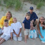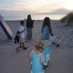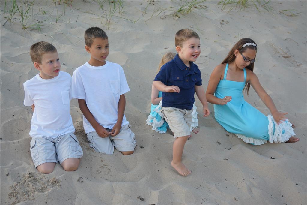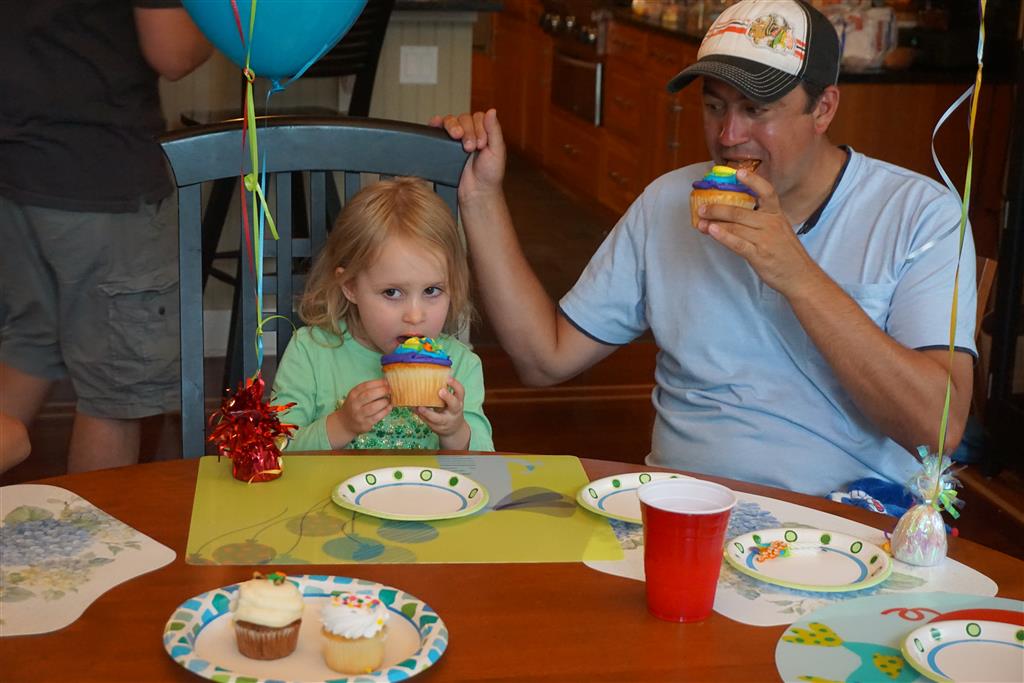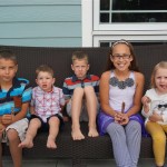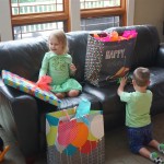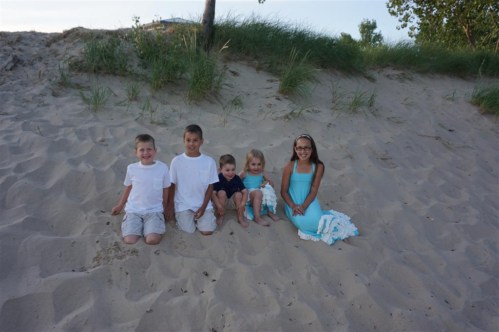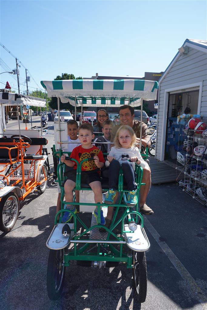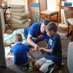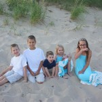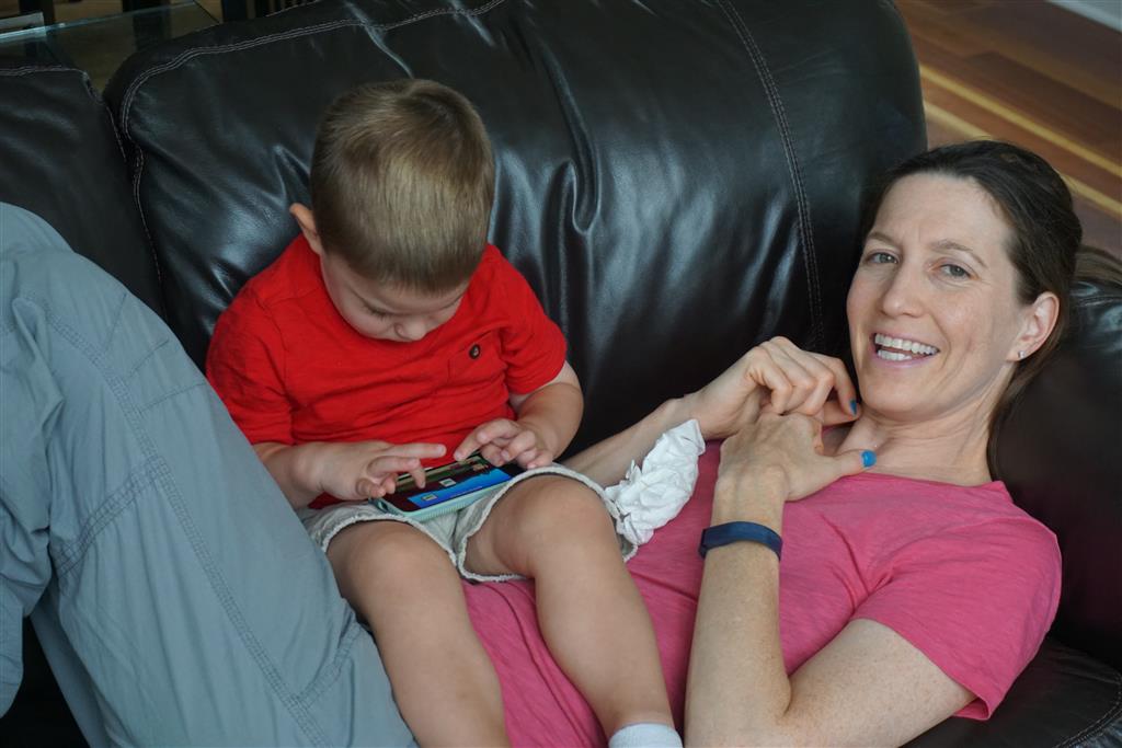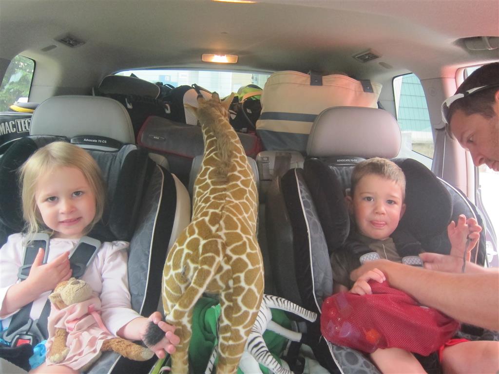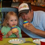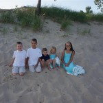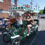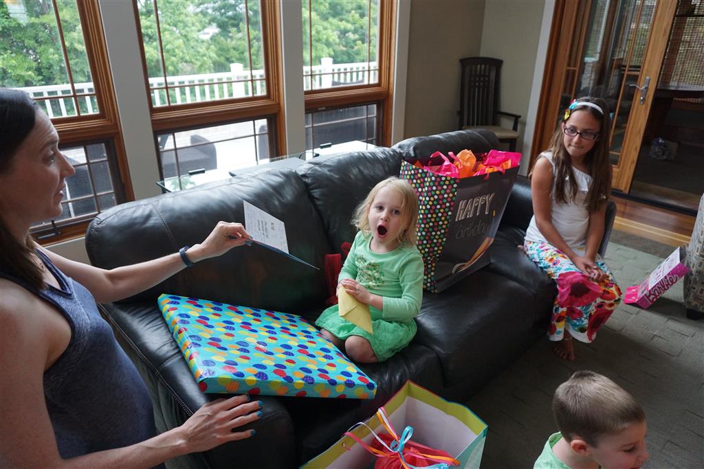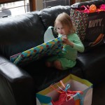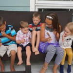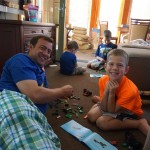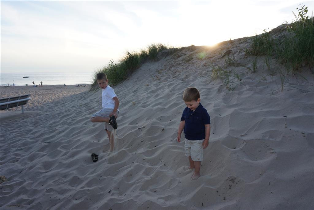 Eleanor and Henry had a fun week at the beach. We had an early celebration for Eleanor’s birthday, and she received a super fun rocket ship play tent, and some great puppets and a puppet theater. I’m sure both will be big hits! Uncle B brought along a bunch of Legos for rainy day entertainment – Eleanor really liked doing the small size and worked with Mom to follow the instructions and pick out all the right pieces. Henry loved the train, although he couldn’t participate much in the building process. We seem to have neglected to take any pictures while enjoying the beach – but we definitely enjoyed swimming and building sand castles. Eleanor spent a long time in the water, but preferred to be on a float toy or held – we couldn’t convince her that swimming would be the same as in the pool. We also enjoyed lots of trips to the ice cream shop in town, and a bicycle built for seven! Henry slept in a big bed every night except the first, and did great! He never fell off, although he did seem to end up snuggled up with Dad by morning time We had a cold front move through one day, so we spent the afternoon at a blueberry patch. We also seemed to have missed documenting that with photos, but I’m pretty sure it was a first for both Eleanor and Henry. Unfortunately, they both fell asleep in the car ride on the way there, so they were a bit groggy when we got there.
